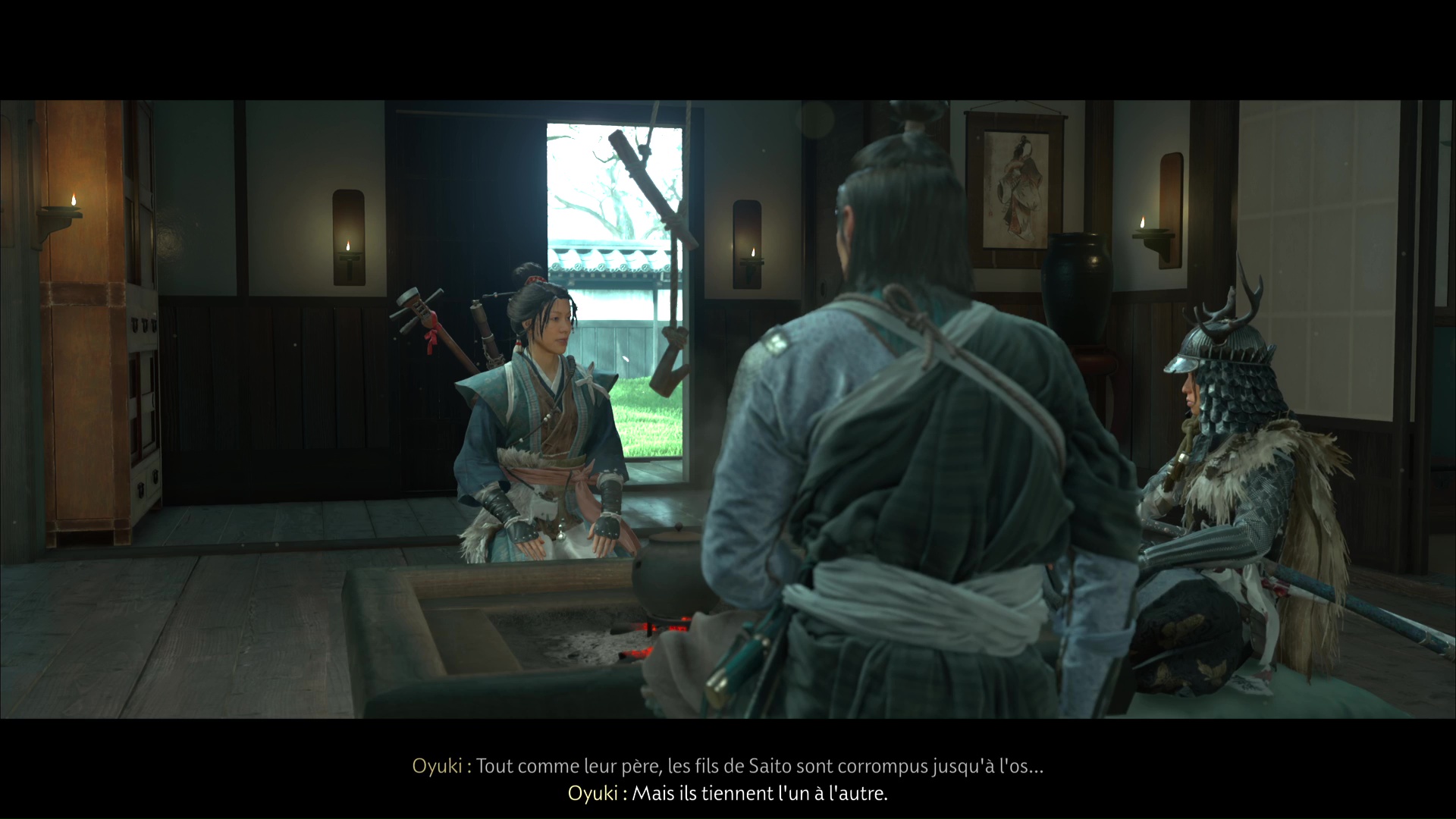 De retour dehors, allez parler à Jubei. Il ne digère toujours pas la présence d’Oyuki. Atsu va alors tenter, une énième fois, de le convaincre, mais c’est toujours aussi compliqué.