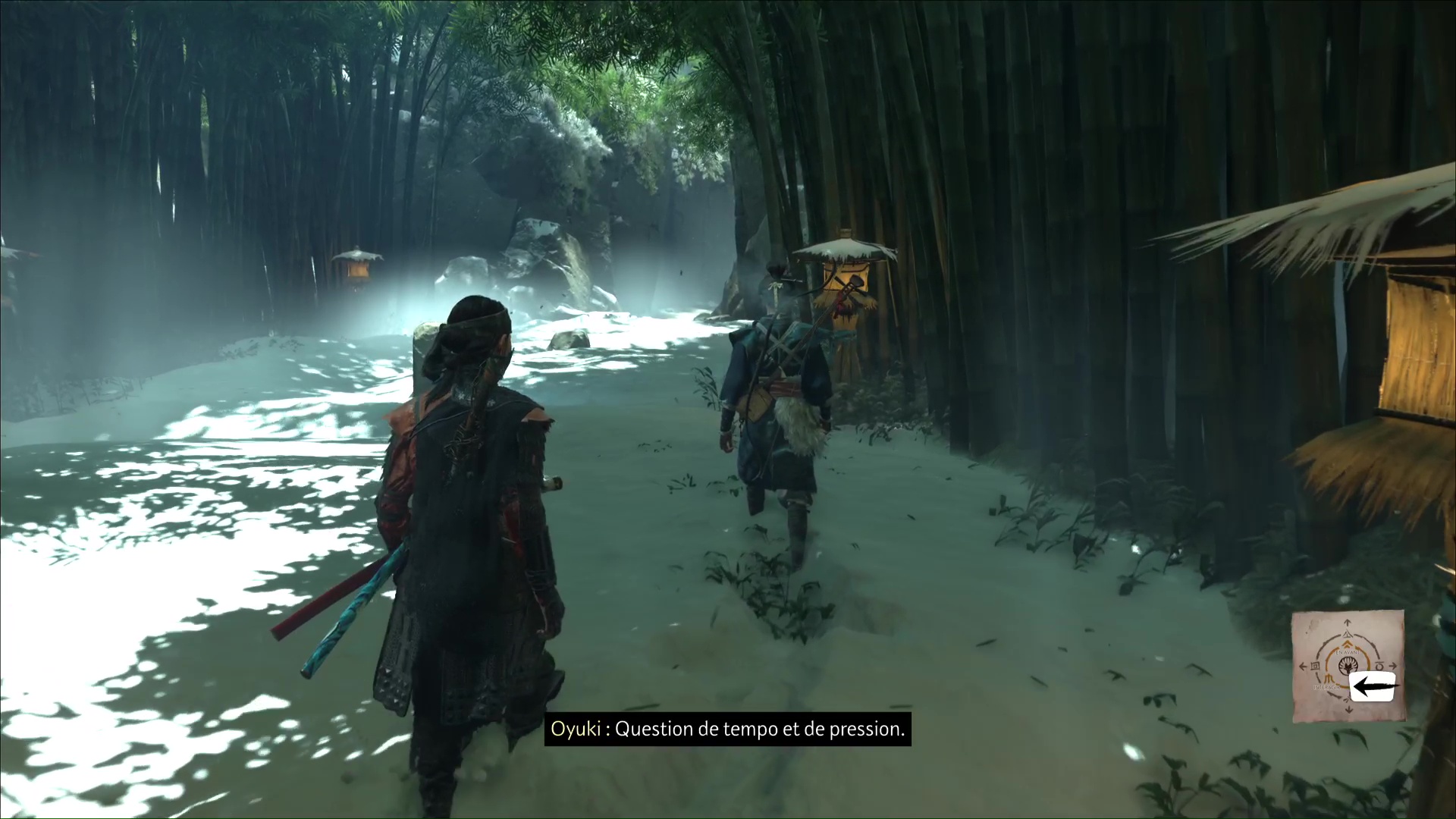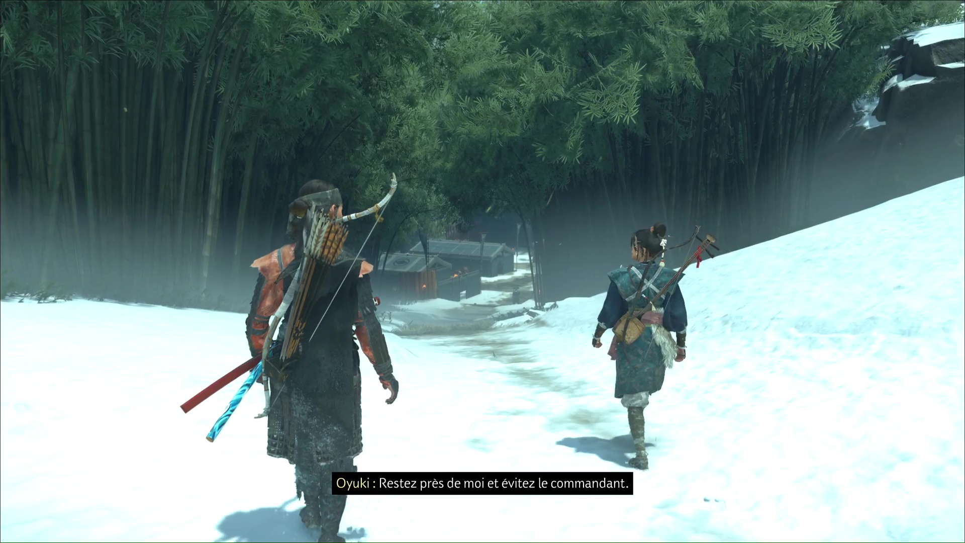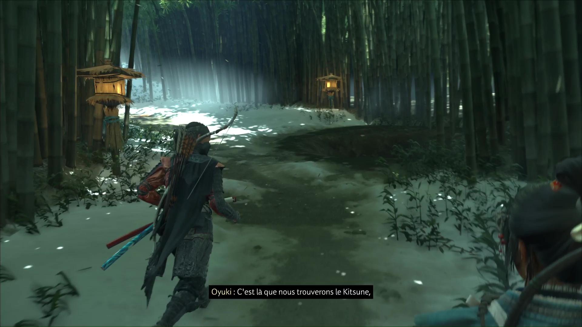 Les recherches progressent pour Atsu et Oyuki. L’exploration d’un repaire caché sous une teinturerie a permis à notre héroïne de libérer quelques prisonniers mais aussi de mettre la main sur un document important. Une liste cachée dans un casse-tête donne des informations au sujet du poison que le Kitsune utilise. Les ingrédients, d’une part, et le lieu de leur récolte, d’autre part, sont désormais connus. C’est là-bas que commence ce nouveau chapitre de l’histoire de Ghost of Yōtei.