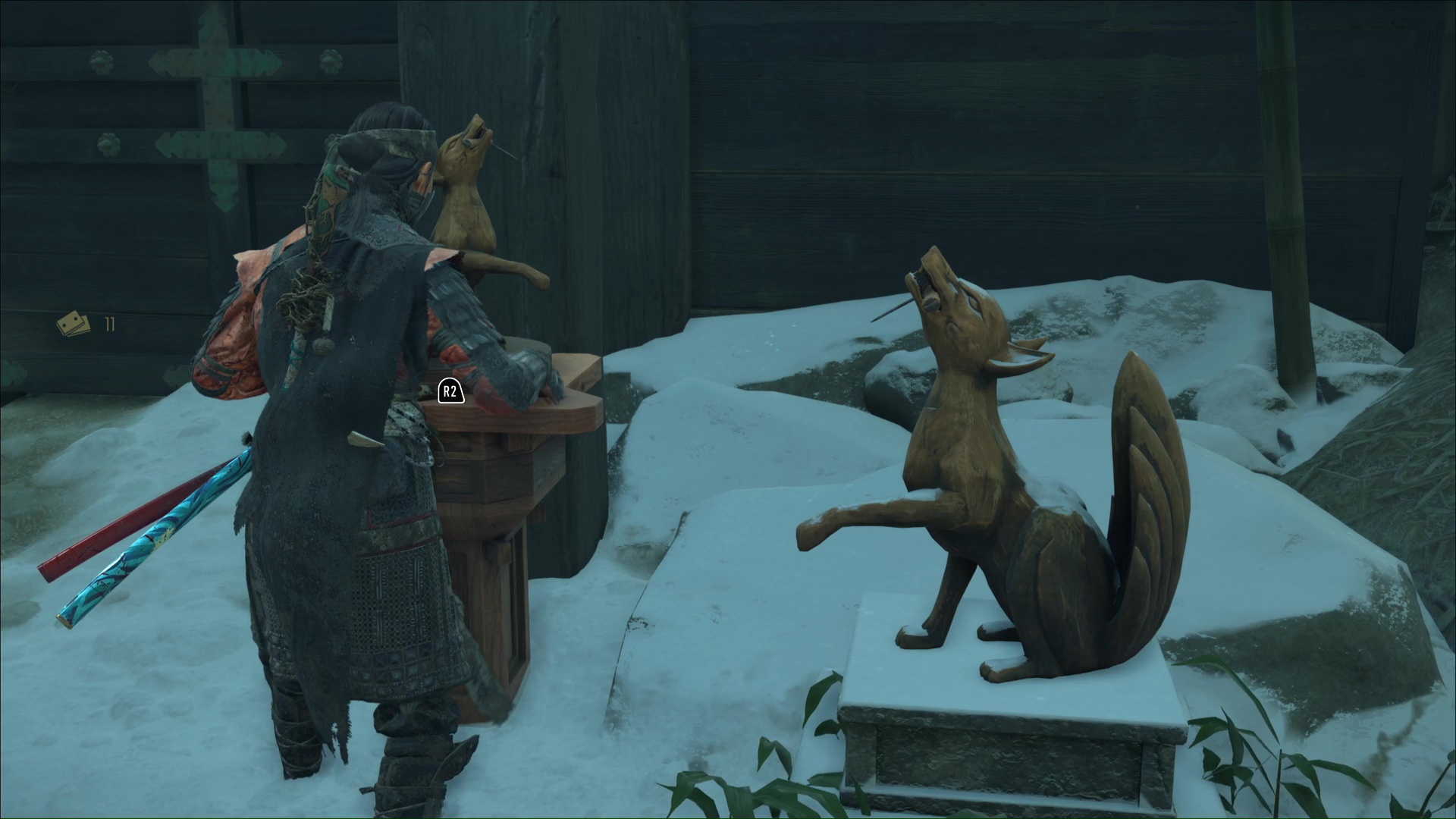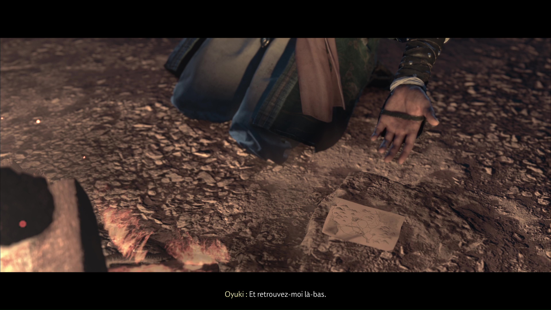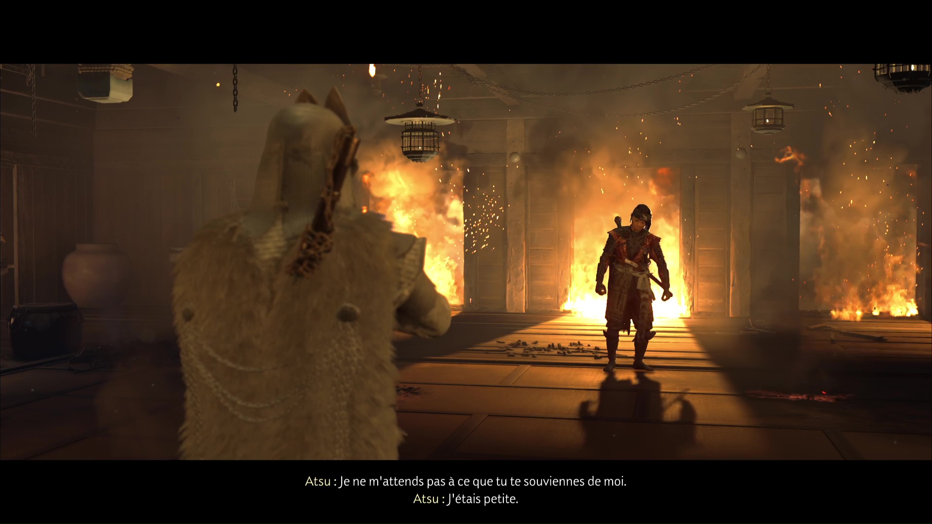 Au bout du chemin, Atsu croit voir sa mère, ce qui déclenche une vision du moment où elle est exécutée par les Six de Yōtei. Alors que vous assistez à une scène des plus cruelles, la mémoire d’Atsu se rafraichit, dévoilant que le Kitsune a tenté de lui sauver la vie en la détachant.