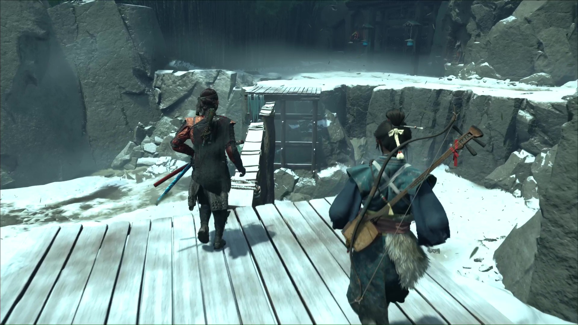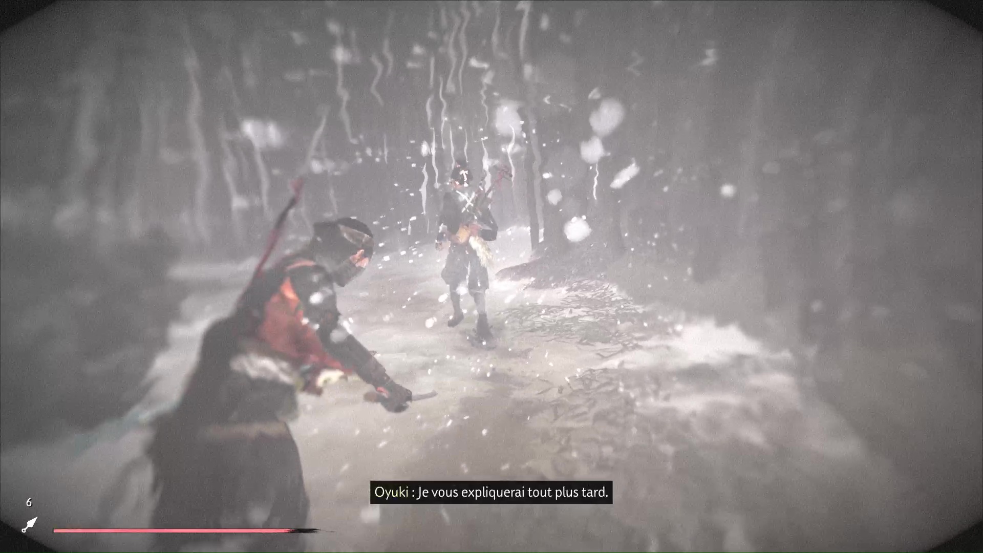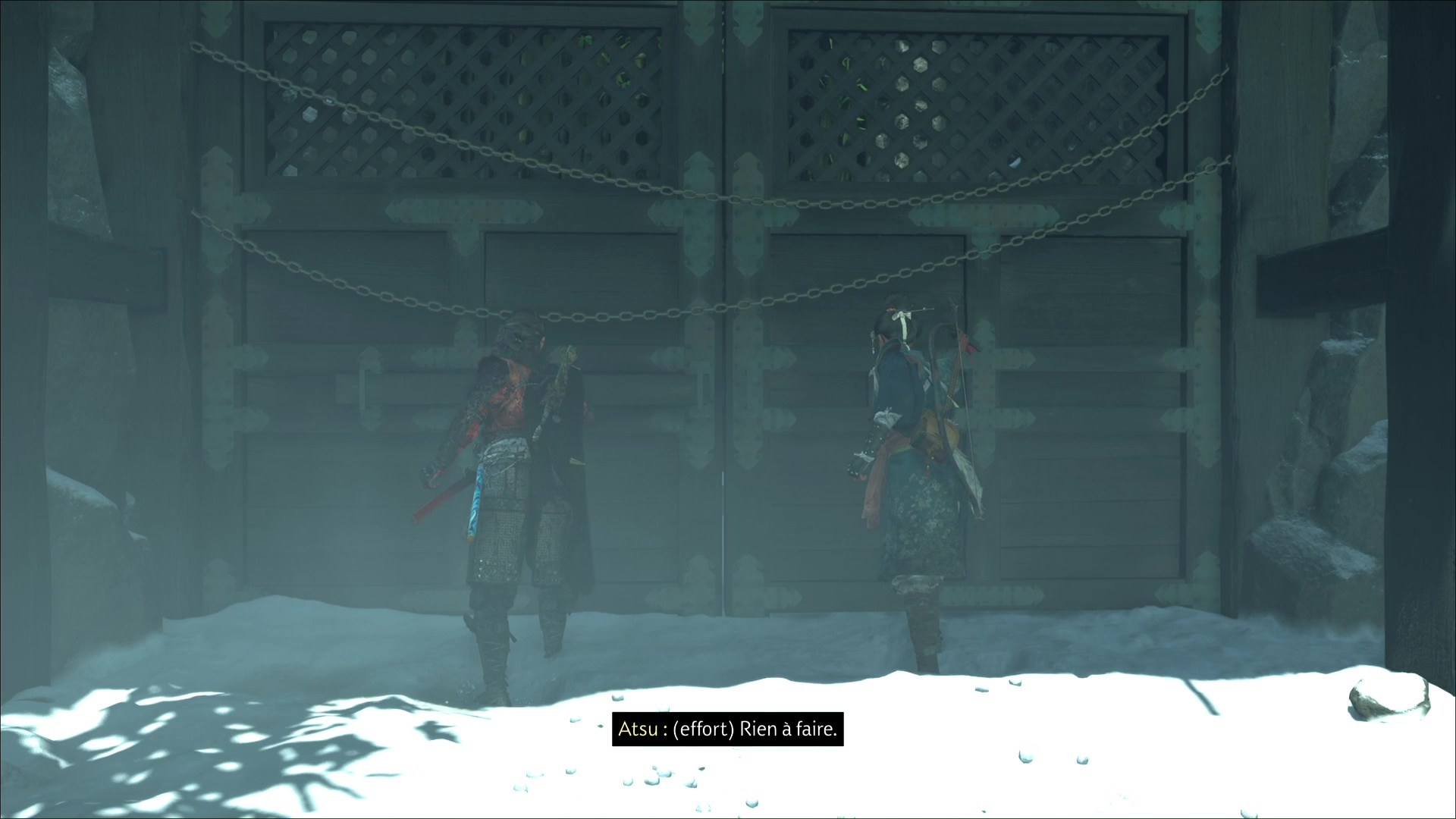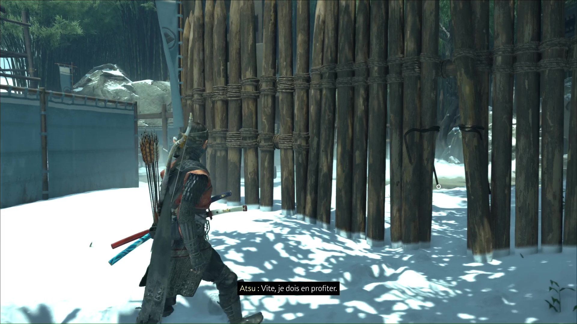 Atsu décide de prendre les devants et de laisser Oyuki la couvrir. Soudain, les Matsumae lancent une attaque, ce qui ne vous arrange pas puisque le Kitsune souhaite prendre la fuite. Sans plus attendre, glissez sur la pente et dirigez-vous vers le bâtiment.