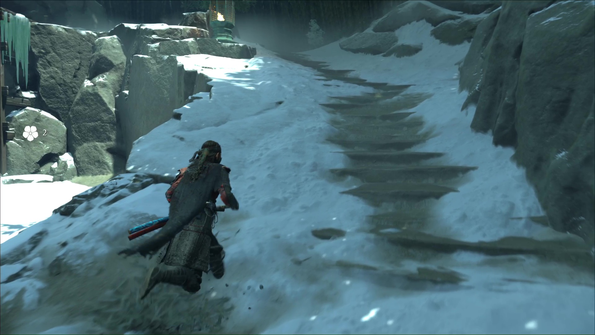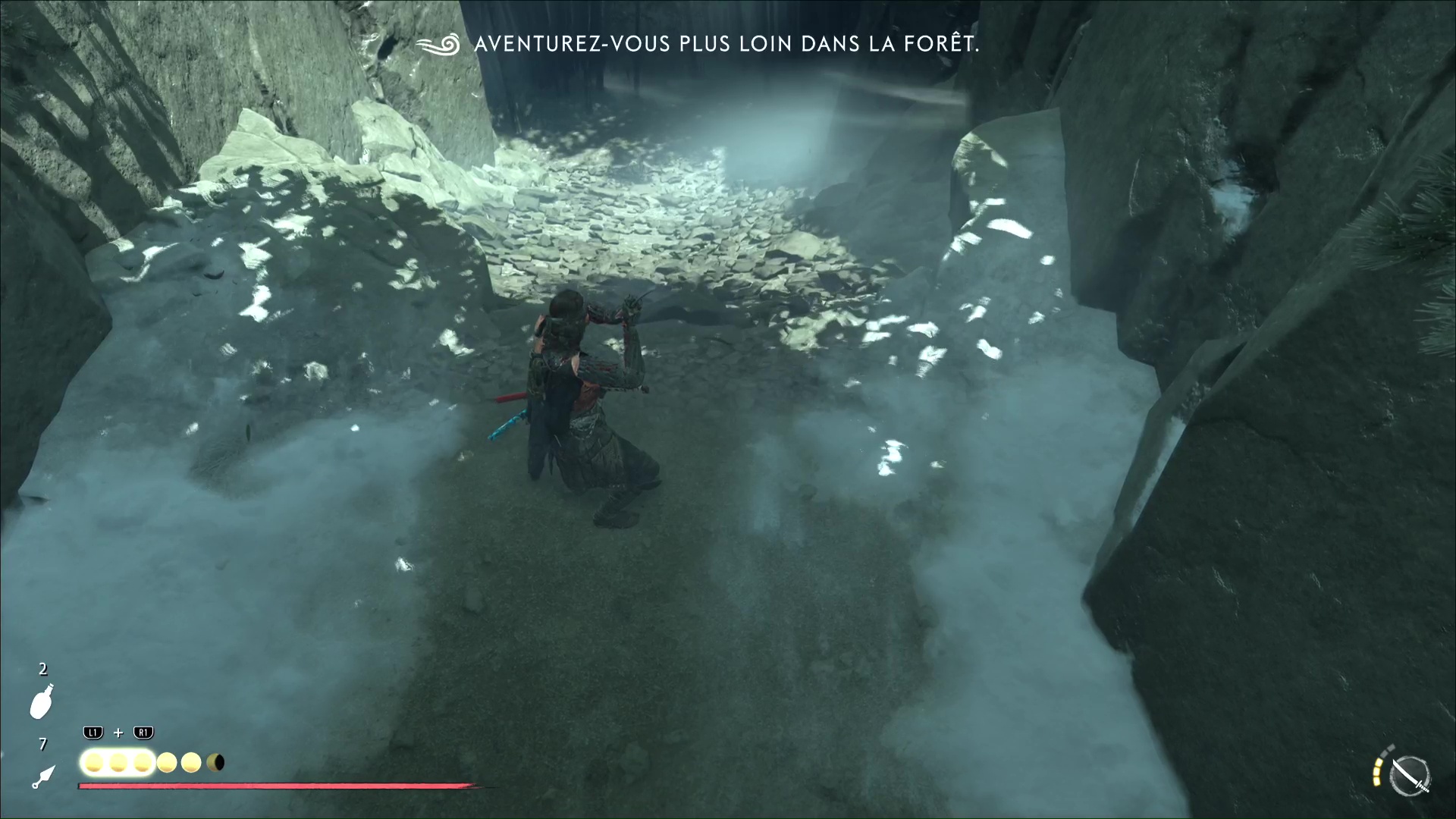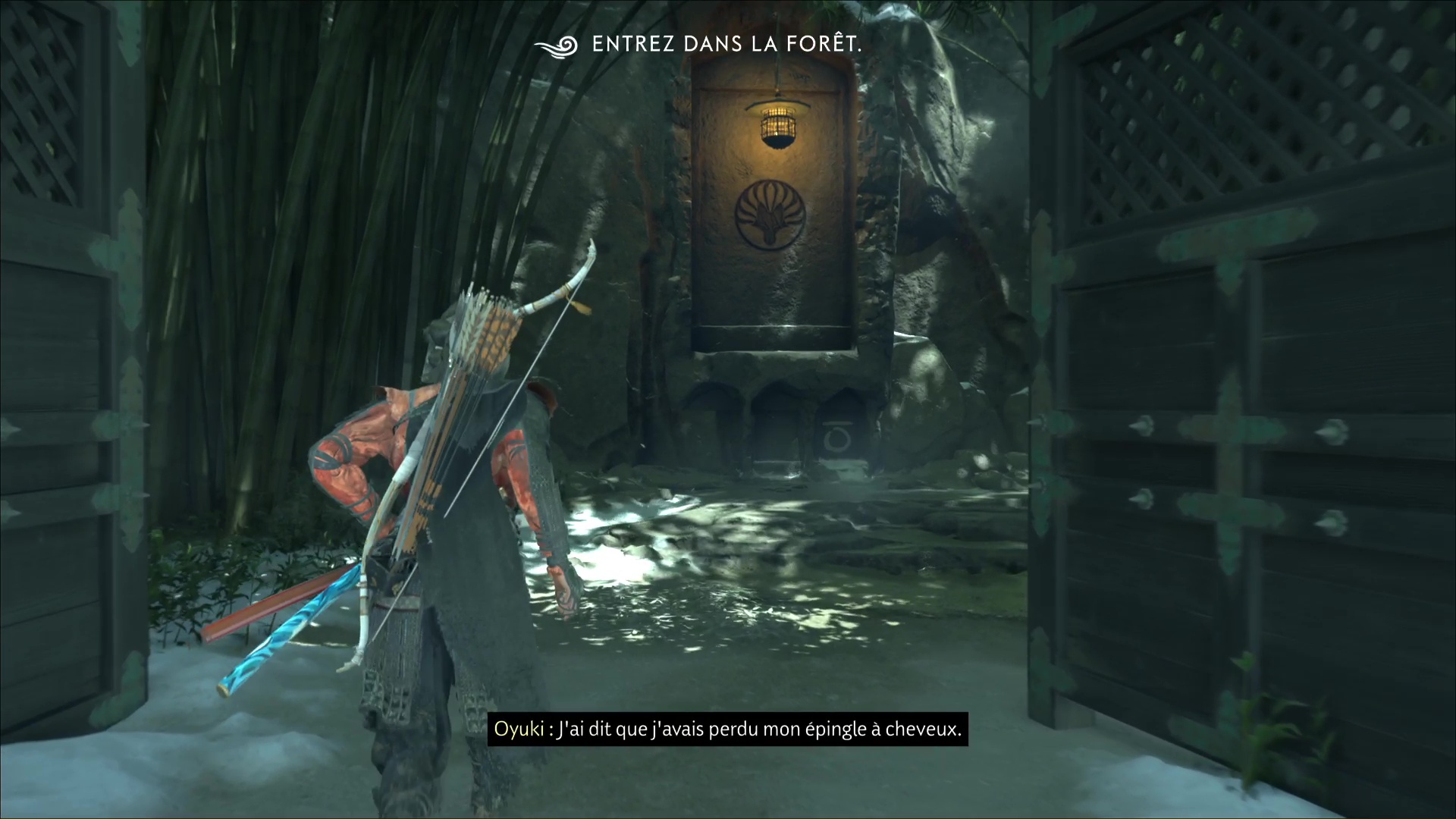 Une fois cette deuxième énigme terminée, reprenez votre route. Très rapidement, Oyuki vous demandera de vous arrêter. La zone devant est truffée de pièges, et il faut donc arpenter le bon chemin, sous peine de se planter sur des pics.