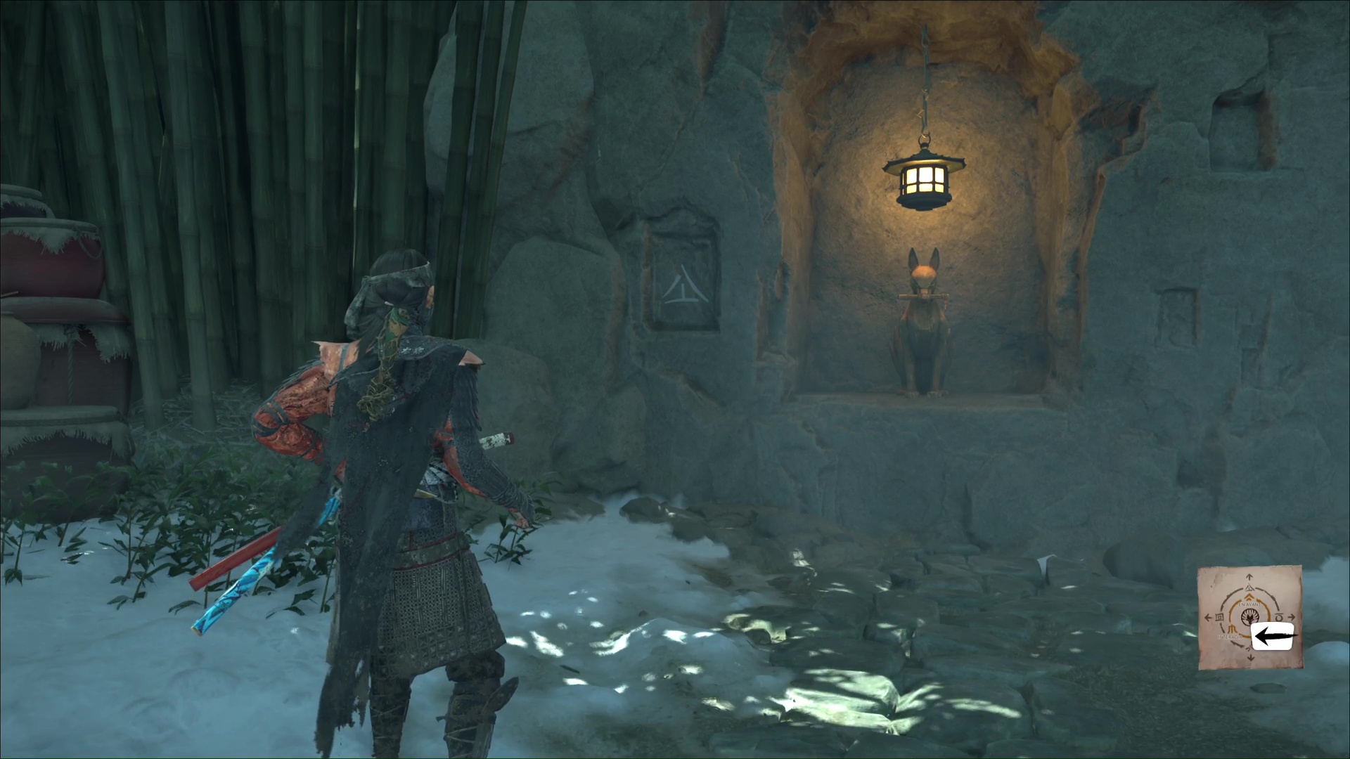 Une fois ces trois lanternes allumées, quelque chose a changé du côté du piédestal. Examinez-le et Atsu poser le casse-tête du Kitsune dessus. Un accès va alors s’ouvrir.