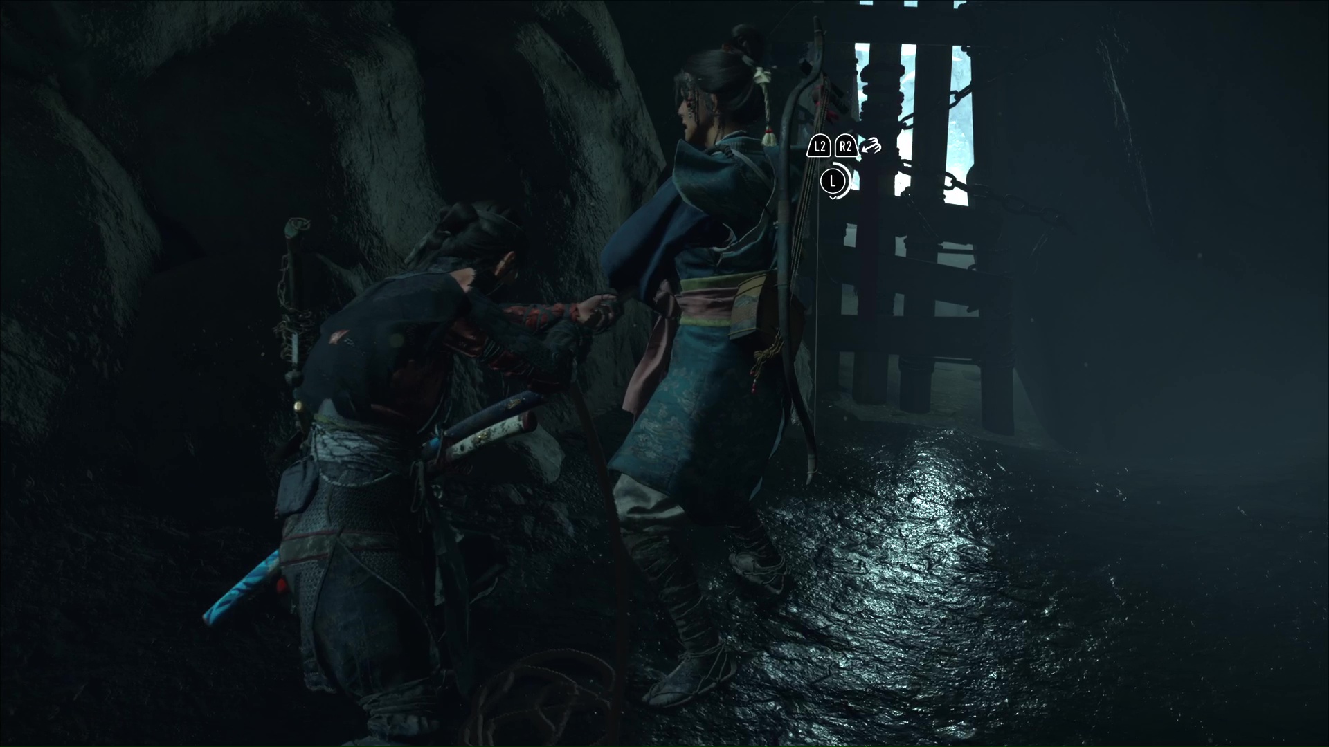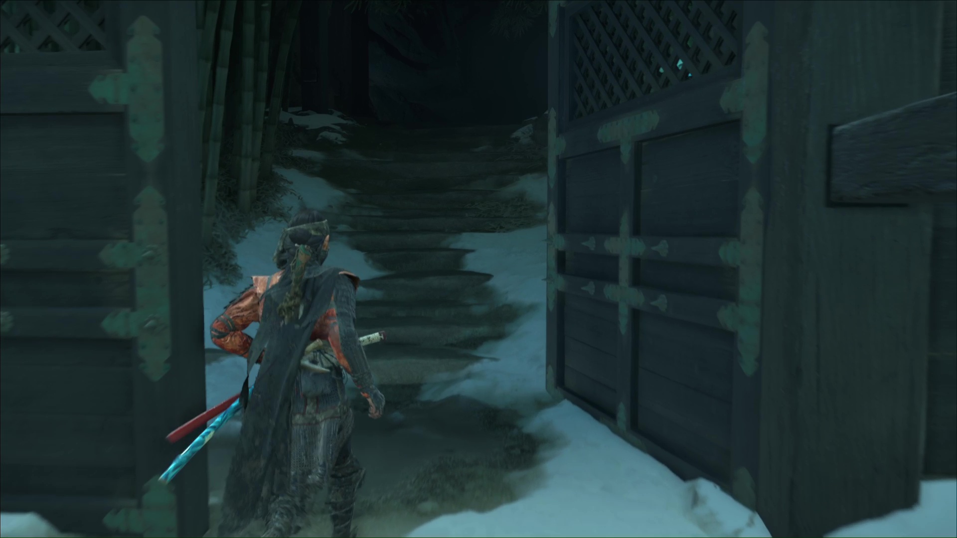 Passez la porte et atteignez le fond du passage. Une barrière vous empêche de continuer, alors détruisez-la en tirant via le grappin avec l’aide d’Oyuki. Faufilez-vous pour retourner à l’air libre.