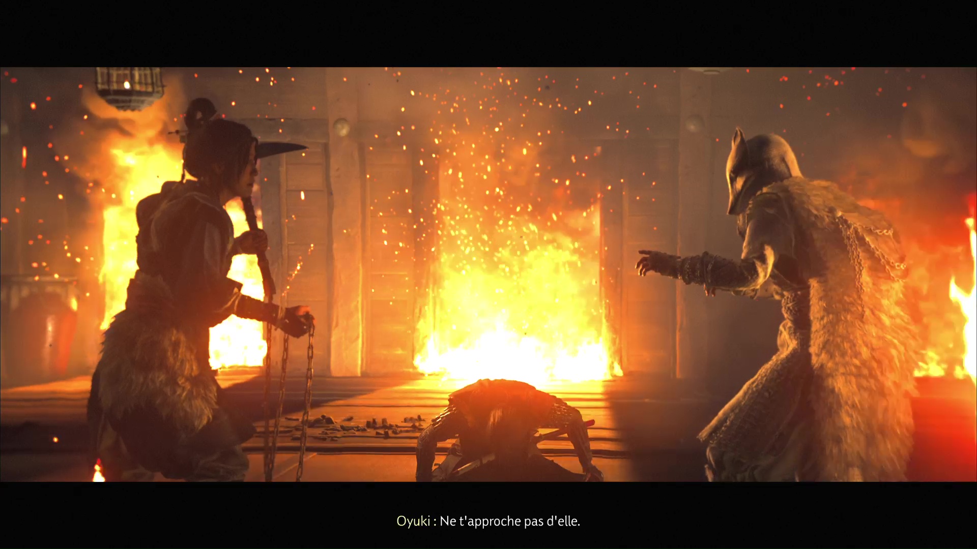 Dehors, suivez Oyuki, et au milieu des hallucinations d’Atsu, vous constatez que la musicienne se bat plutôt bien puisqu’elle chasse les Neuf-Queues tentant de vous arrêter. Oyuki compte bien expliquer la vérité une fois que vous serez sorti d’affaire.