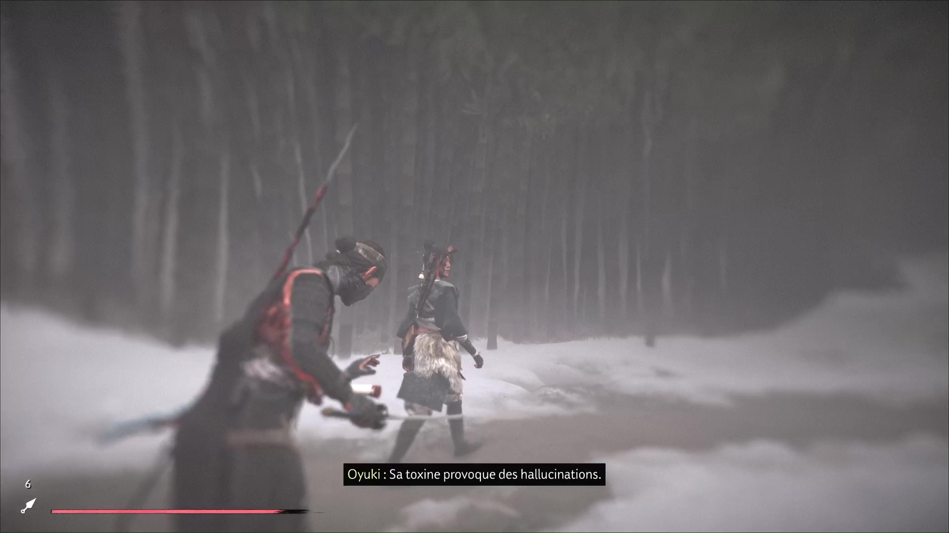 À un moment, le Kitsune vous jettera un kunaï empoisonné, ce qui troublera votre vision. Continuez de vous battre, mais Atsu va finir par perdre ses forces.