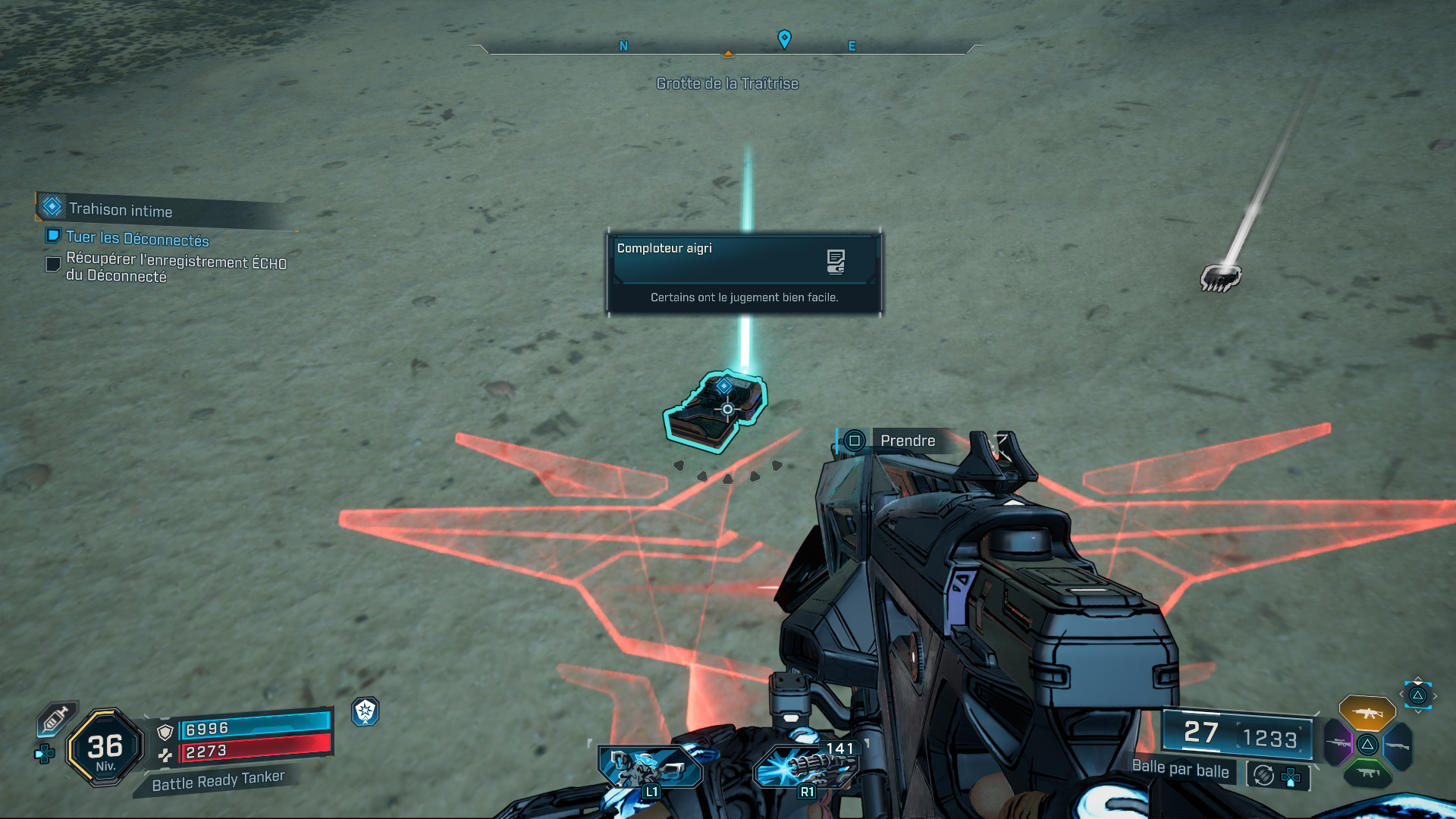 Sur place, tuez tous les Déconnectés et ramassez l’enregistrement ECHO « Comploteur aigri » pour ensuite pénétrer dans la Grotte de la Traîtrise dont l’entrée se trouve à proximité.