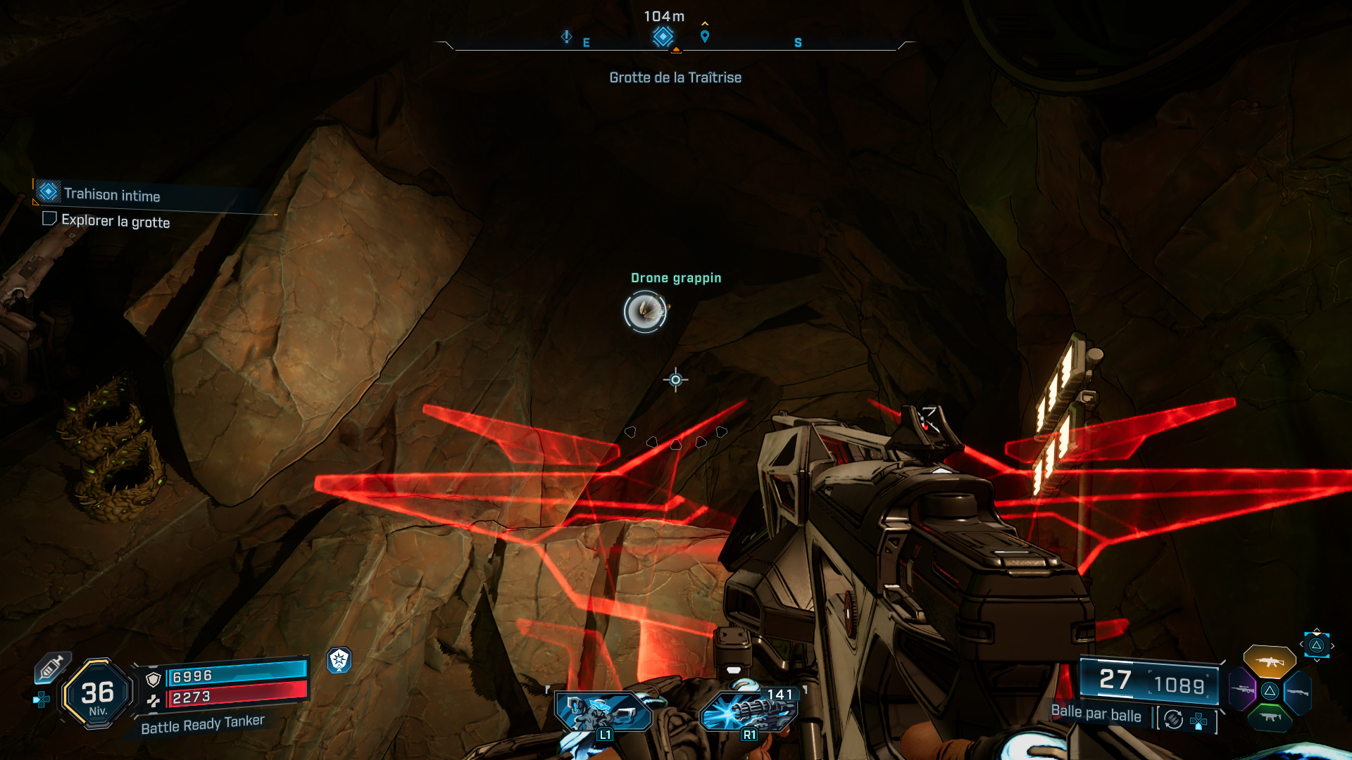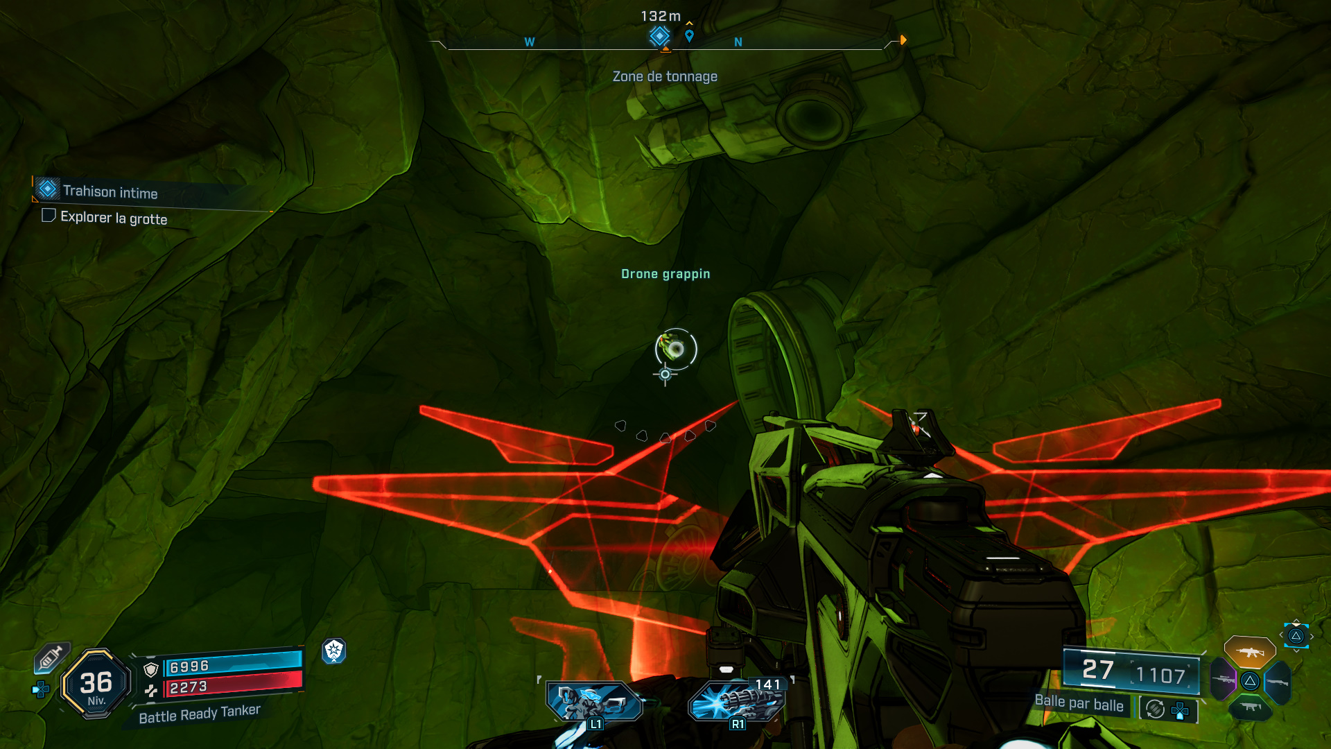 Commencez par vous débarrasser de quelques Kratchs, puis servez-vous du drone grappin en hauteur pour atteindre la plateforme juste derrière lui. D’ailleurs, n’ayant pas de carte à votre disposition, n’hésitez pas à utiliser l’ECHO-localisation pour vous repérer.