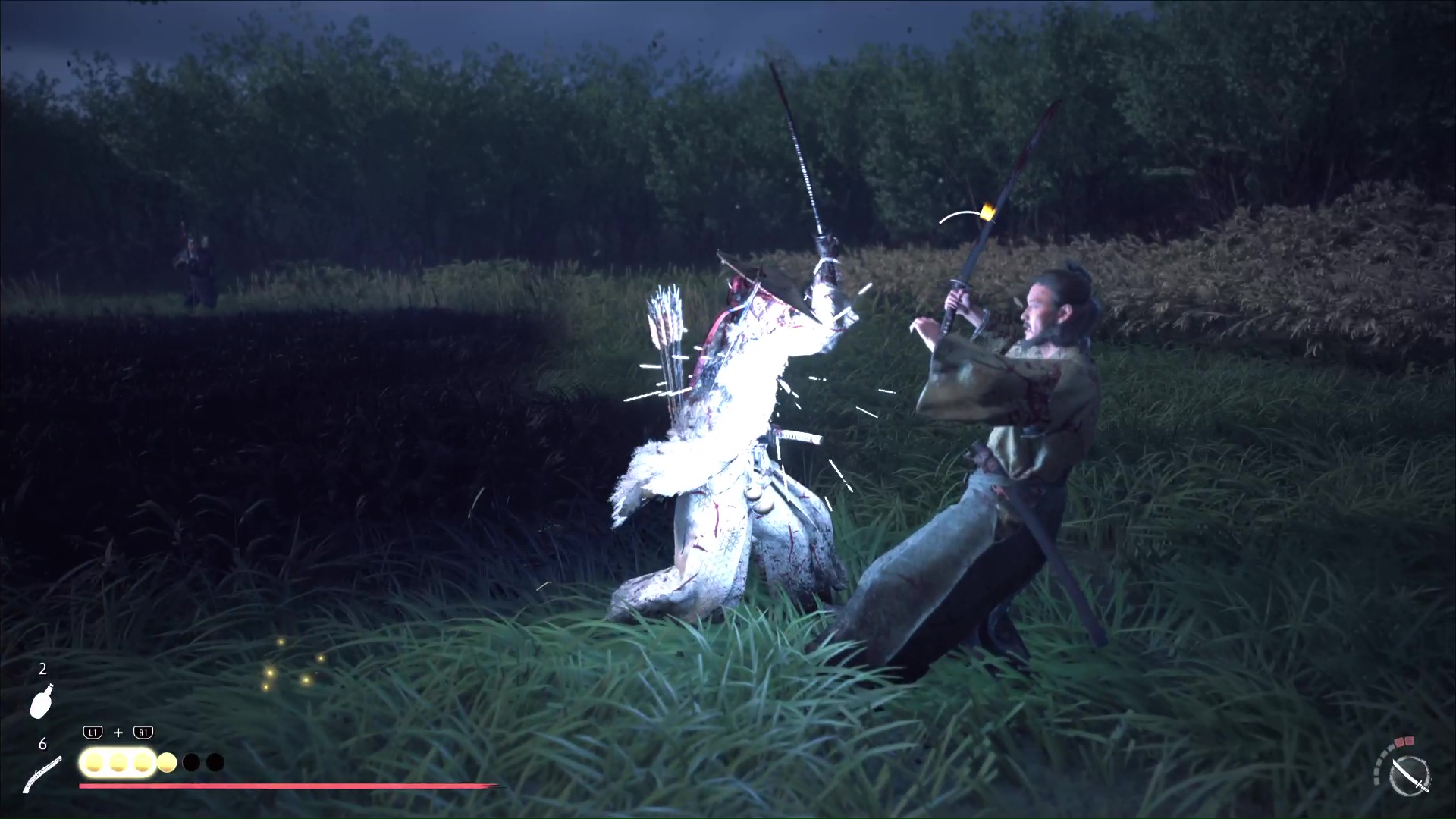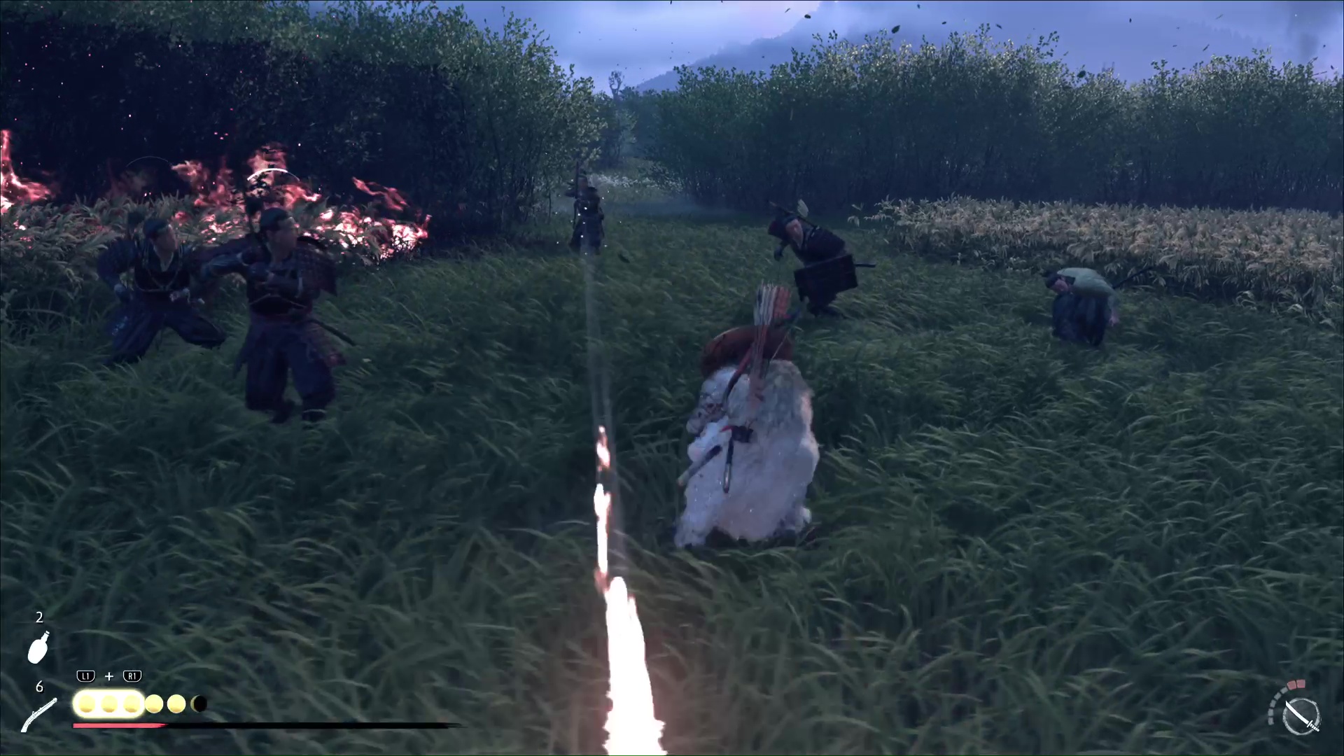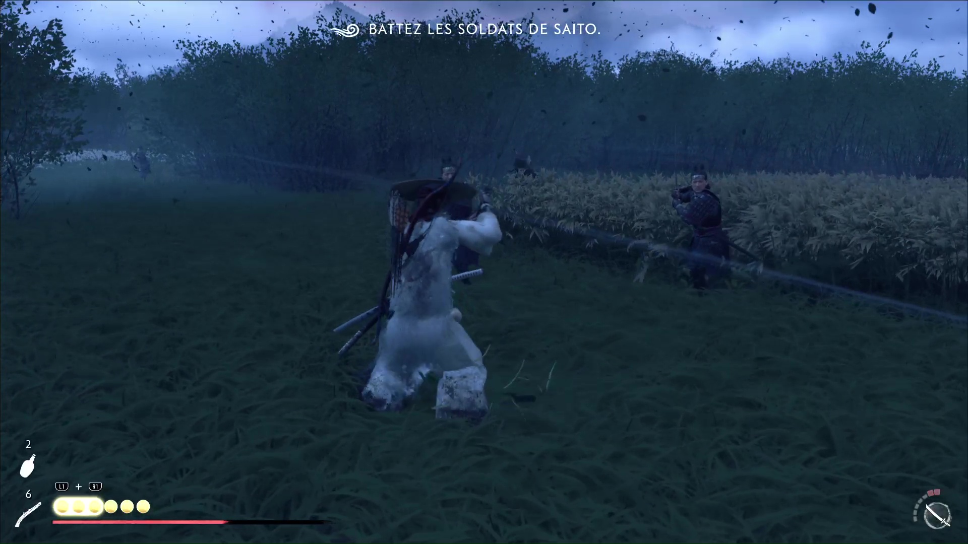 Dans les Prairies de Yōtei, à l’est du Bosquet de Jade et au nord-ouest du Reliquaire de bravoure, un samouraï est aux prises avec des hommes de Saito en pleine nature et au milieu de fourrés de bambous. En vous mêlant à la fête, les hommes de Saito vont vous prendre pour cible.