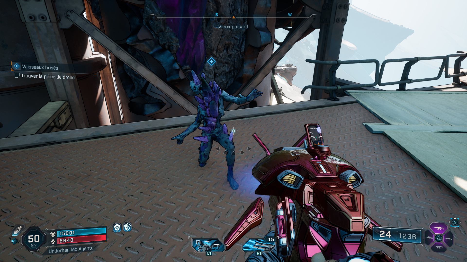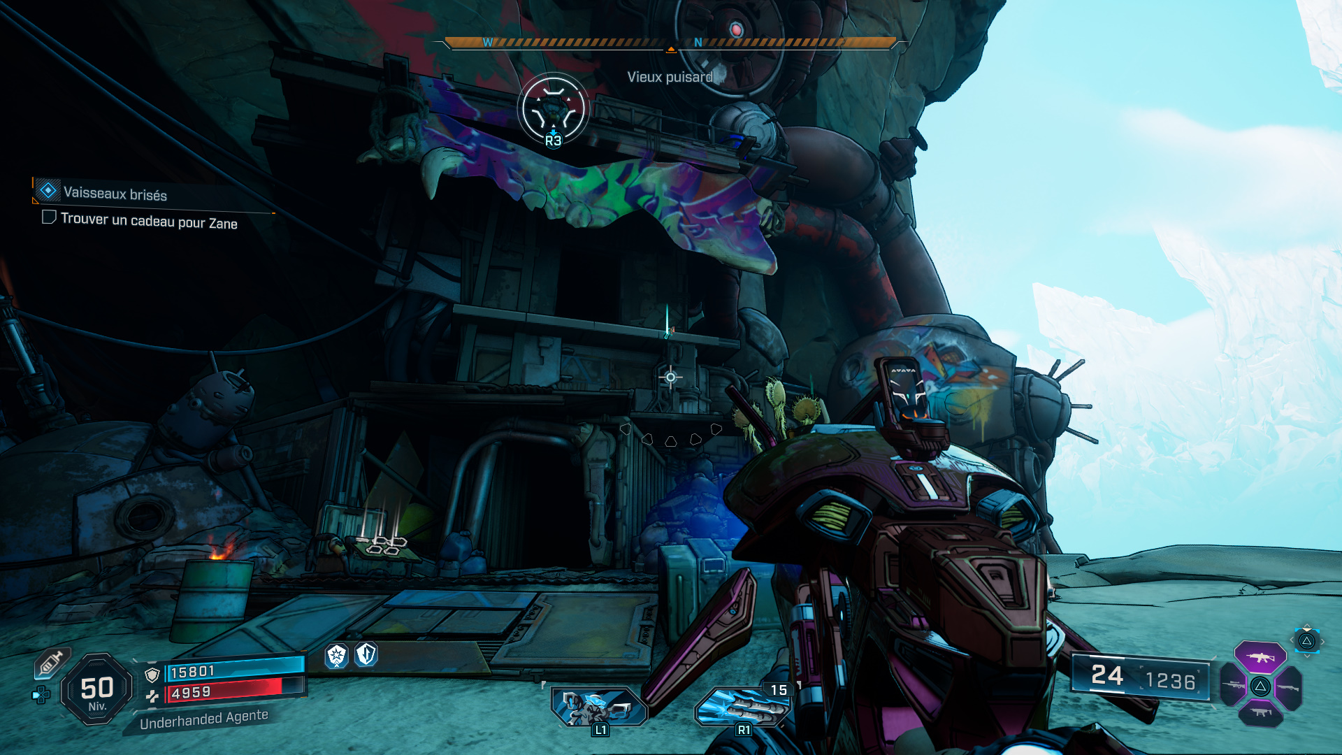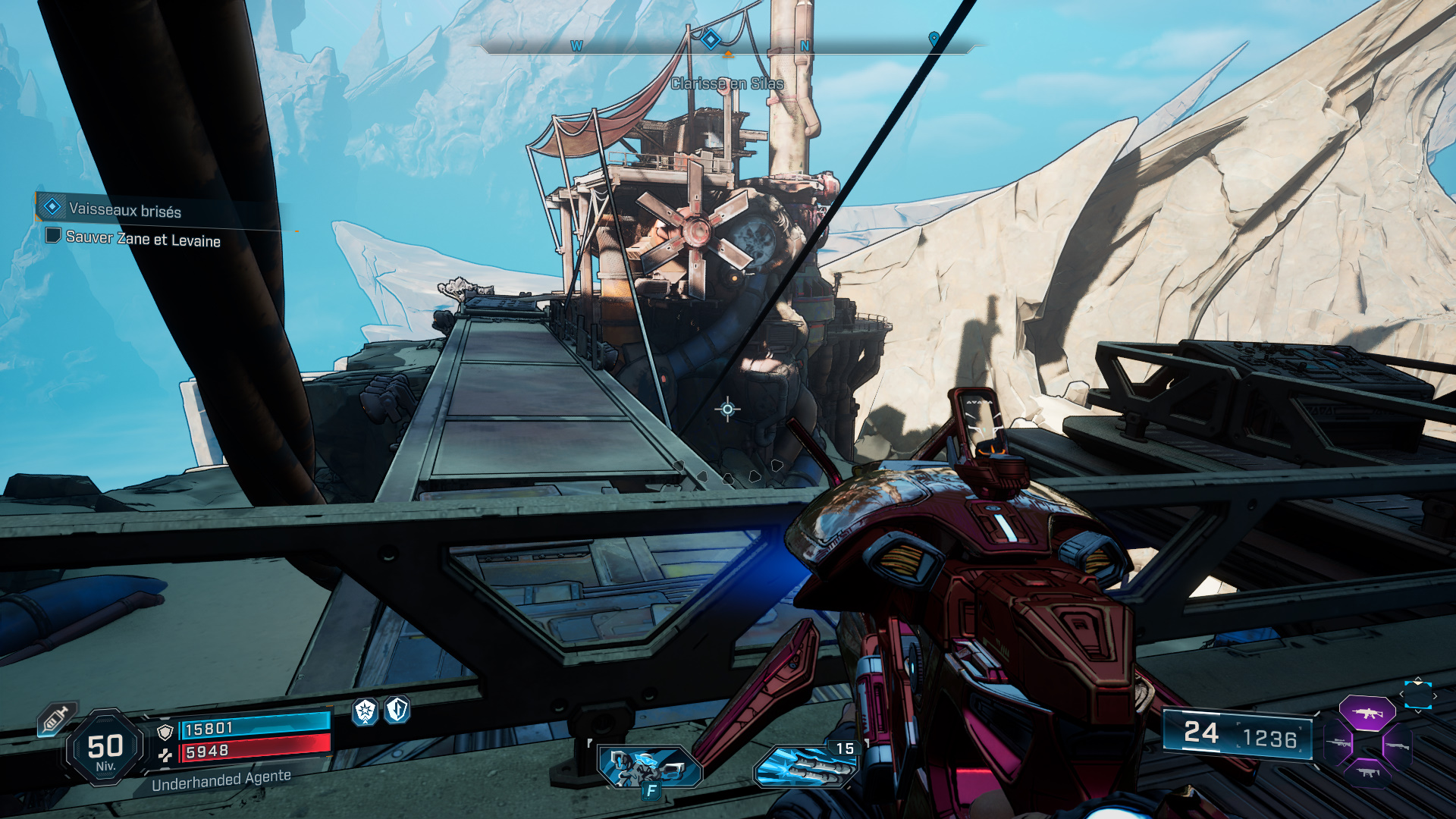 Retournez voir Zane en vous téléportant au bar de Moxxi, et donnez-lui la pièce pour recevoir un appel de Levaine dans la foulée. Elle vous donne alors rendez-vous au nord du Vieux Puisard, à Clarisse en Silas, un endroit envahi par les Déconnectés.