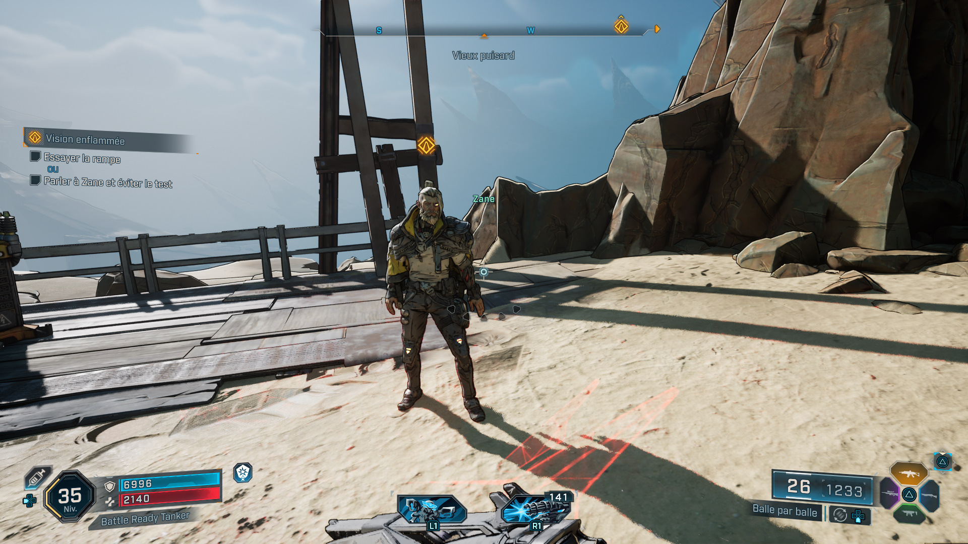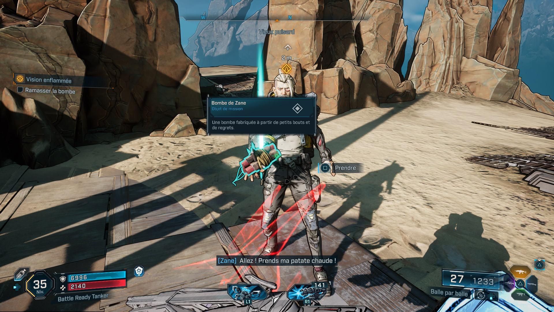 Reculez et tirez sur la bombe, mais la charge n’est pas suffisante pour détruire le mur. Enfourchez alors votre Digirunner et foncez à travers pour y parvenir. Dans la foulée, vous avez alors le choix d’essayer la rampe ou de parler à Zane, là où nous vous suggérons de parler directement à Zane pour vous éviter une mort certaine et inutile.