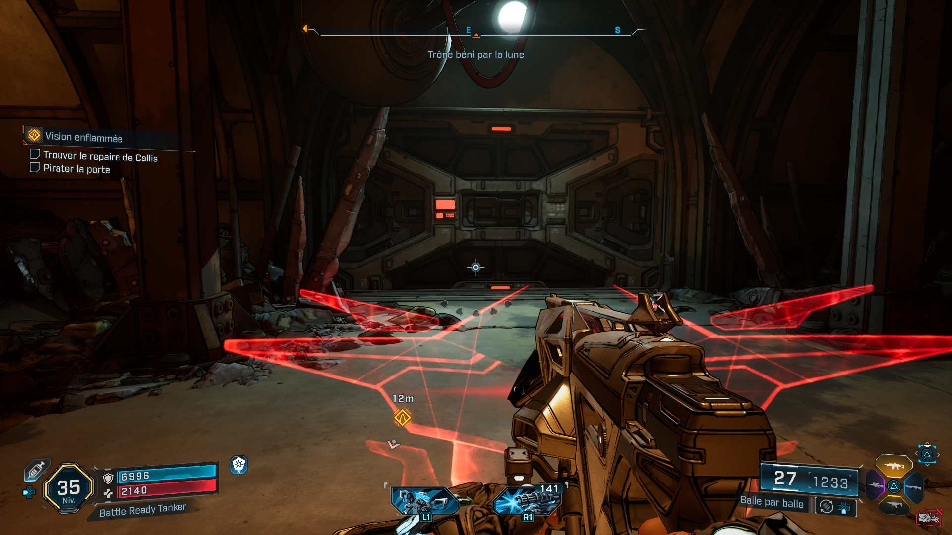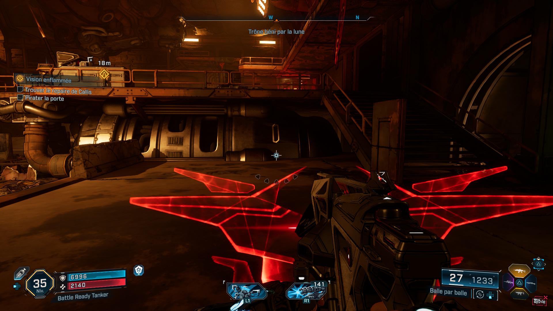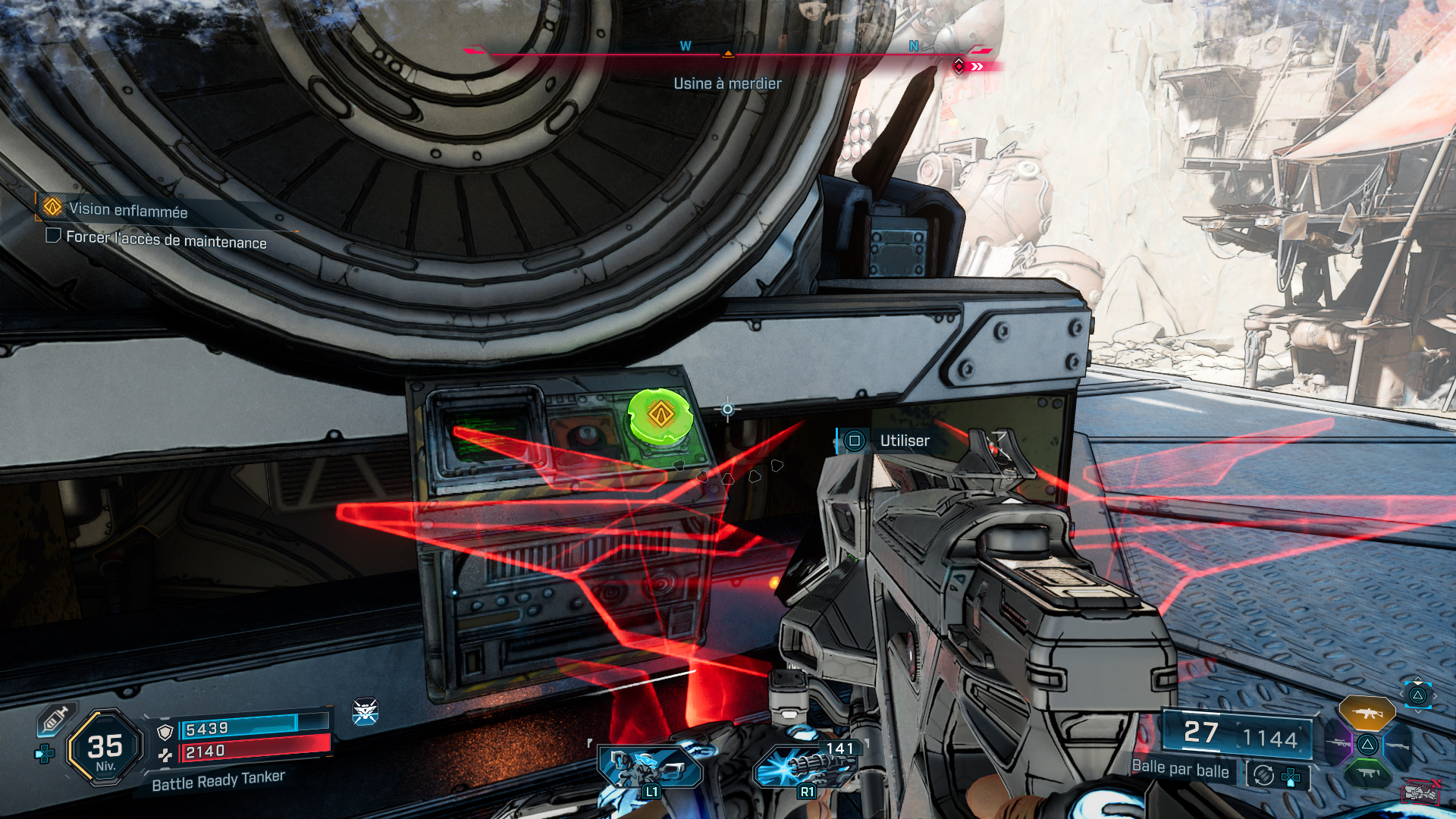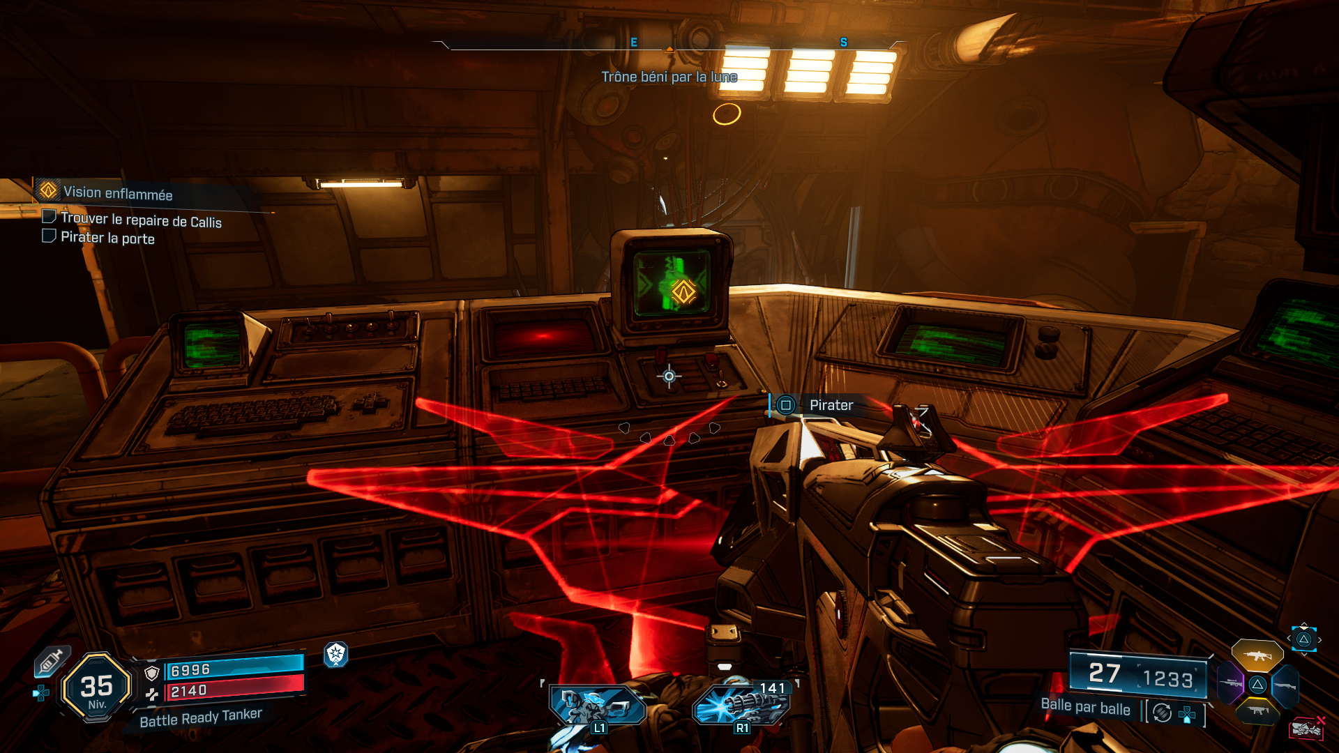 Pour cela, montez sur la passerelle juste derrière vous, et interagissez avec l’ordinateur pour pirater la porte et faire apparaître une nouvelle vague d’ennemis.