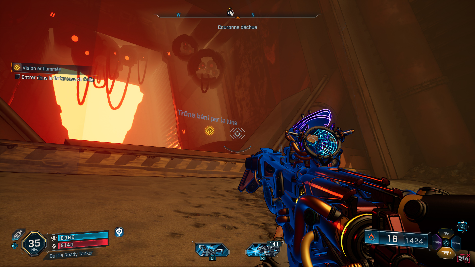 Ensuite, peu de répit puisque d’autres Déconnectés vous attendent dans la zone suivante, juste avant d’atteindre l’entrée de la forteresse de Callis, et dont la porte est fermée. Tuez alors Gueule-de-Tourbe et ses amis pour pouvoir entrer dans le « Trône béni par la Lune ».