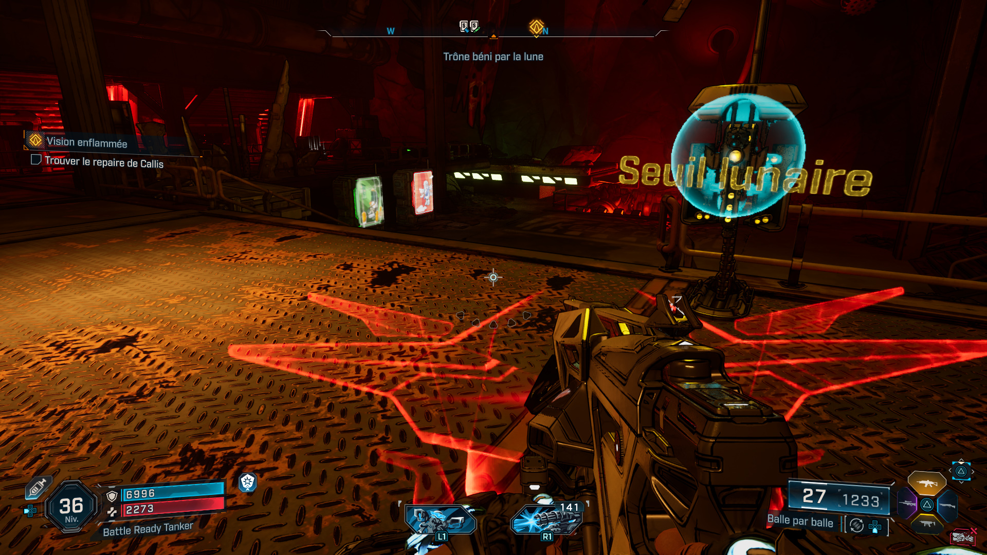 Après le combat, continuez votre progression jusqu’à arriver au Seuil Lunaire, avec des distributeurs à disposition si vous souhaitez faire quelques emplettes avant de descendre dans l’arène du boss. Et profitez-en également pour récupérer les deux Symboles de l’Arche dans la zone grâce à notre page dédiée aux Collectors du Trône béni par la Lune.