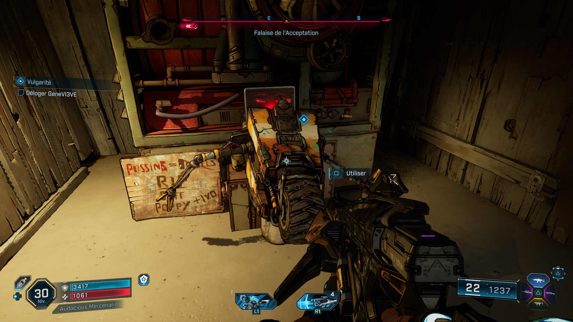 - Récompense : XP + Argent + Eridium + Mitraillette peu commune à très rare + Coque d’ECHO-4