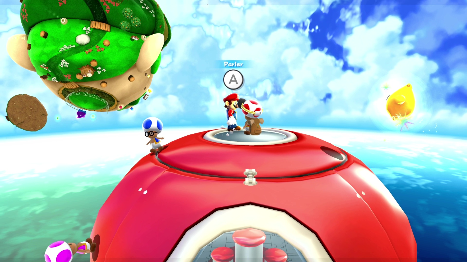Parce que finalement, cette compilation n’est autre qu’un portage, et qui dit portage dit améliorations en marge. Ce n’est pas un gros remaster ni même un remake (et pourtant, on aurait apprécié), avec un lissage des textures et un passage à une résolution supérieure qui était plus que nécessaire. Super Mario Galaxy 2 en bénéficie directement et en est même assez bluffant de justesse graphique, avec le retour de l’adorable Yoshi, tout en incorporant des nouveautés. Ici, il faudra carrément compter sur l’apparition d’un nouveau livre d’histoire totalement inédit pour Harmonie, afin de ramener un peu de lore dans un jeu qui en manquait un peu à l’époque, soyons honnêtes. Mais aussi de quoi préparer la sortie du film l’an prochain ?