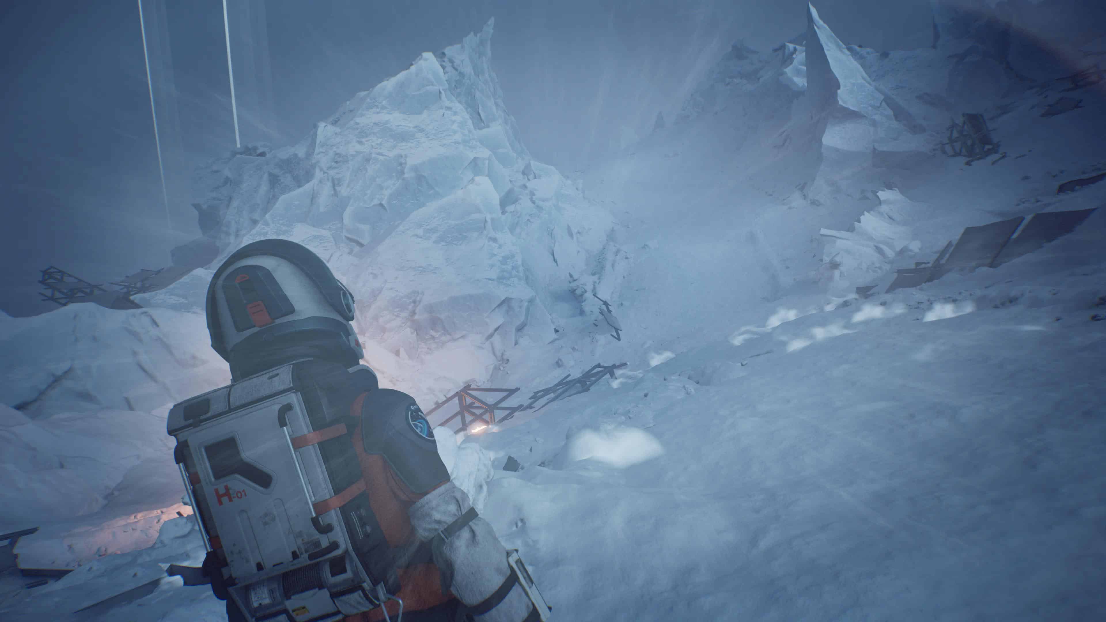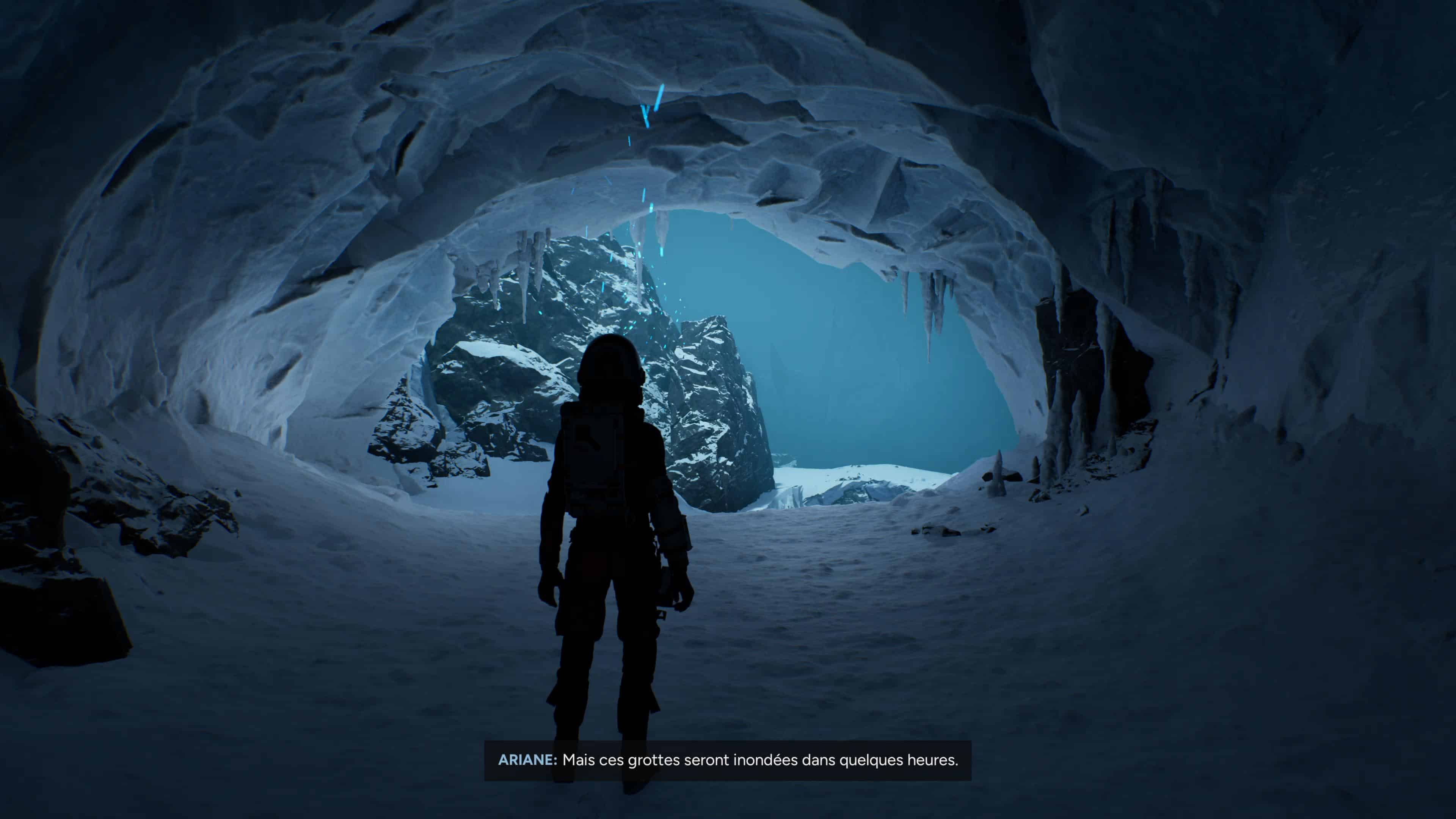 Alors bien entendu, Aphelion disposera de plusieurs séquences beaucoup plus originales, à commencer par cette tempête de neige qui vous glacera les os jusqu’à la mort si vous ne vous mettez pas à couvert suffisamment vite, ou encore celles vous demandant de marcher prudemment sur la glace pour ne pas tomber dans une crevasse. Mais là aussi, les opportunités de casser le rythme, de provoquer des réactions, voire une inquiétude chez les joueurs et joueuses étaient présentes, mais ne semblent pas avoir été imaginées ainsi par les équipes de Don’t Nod qui nous proposent un ensemble bien trop sage.