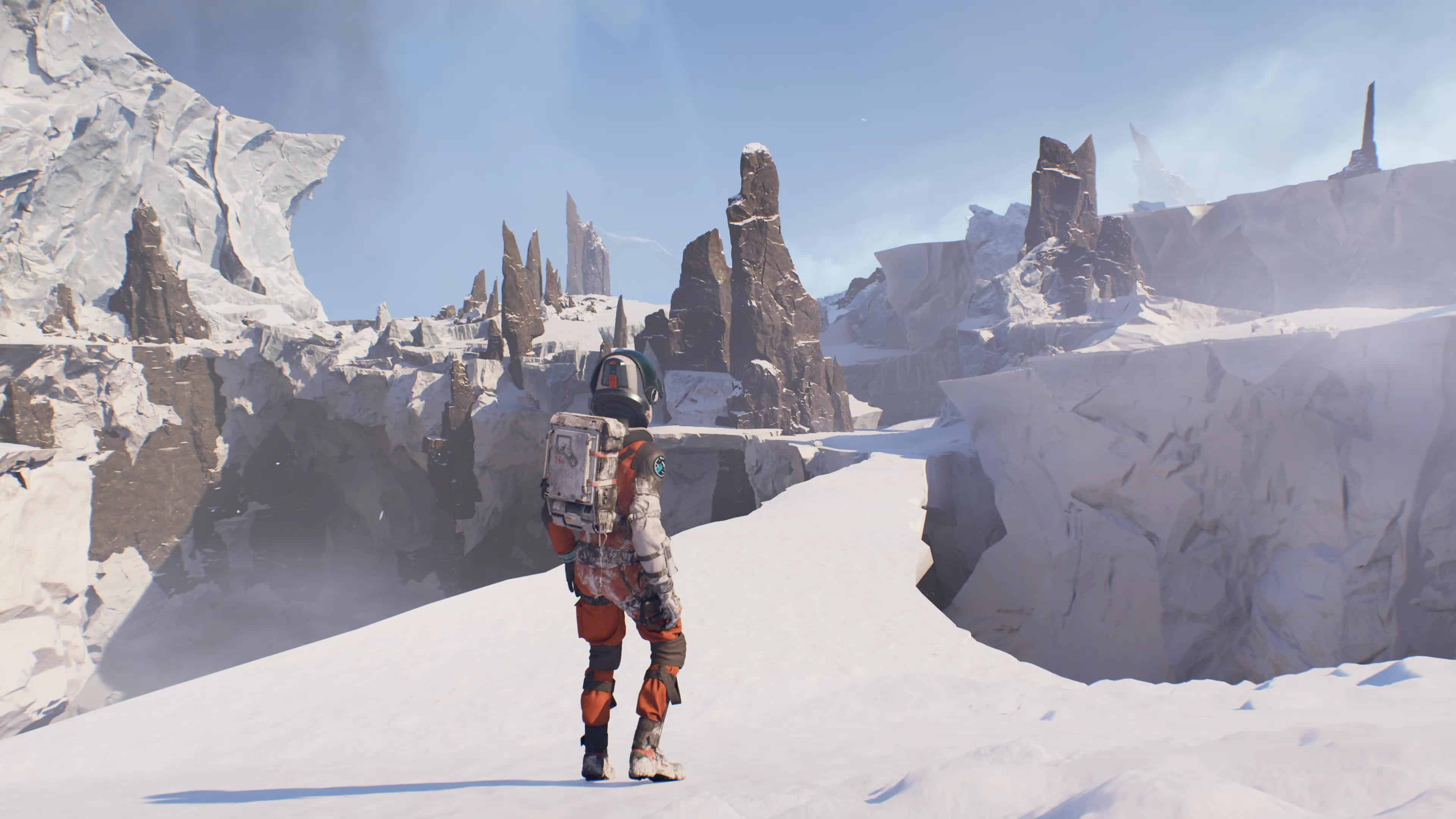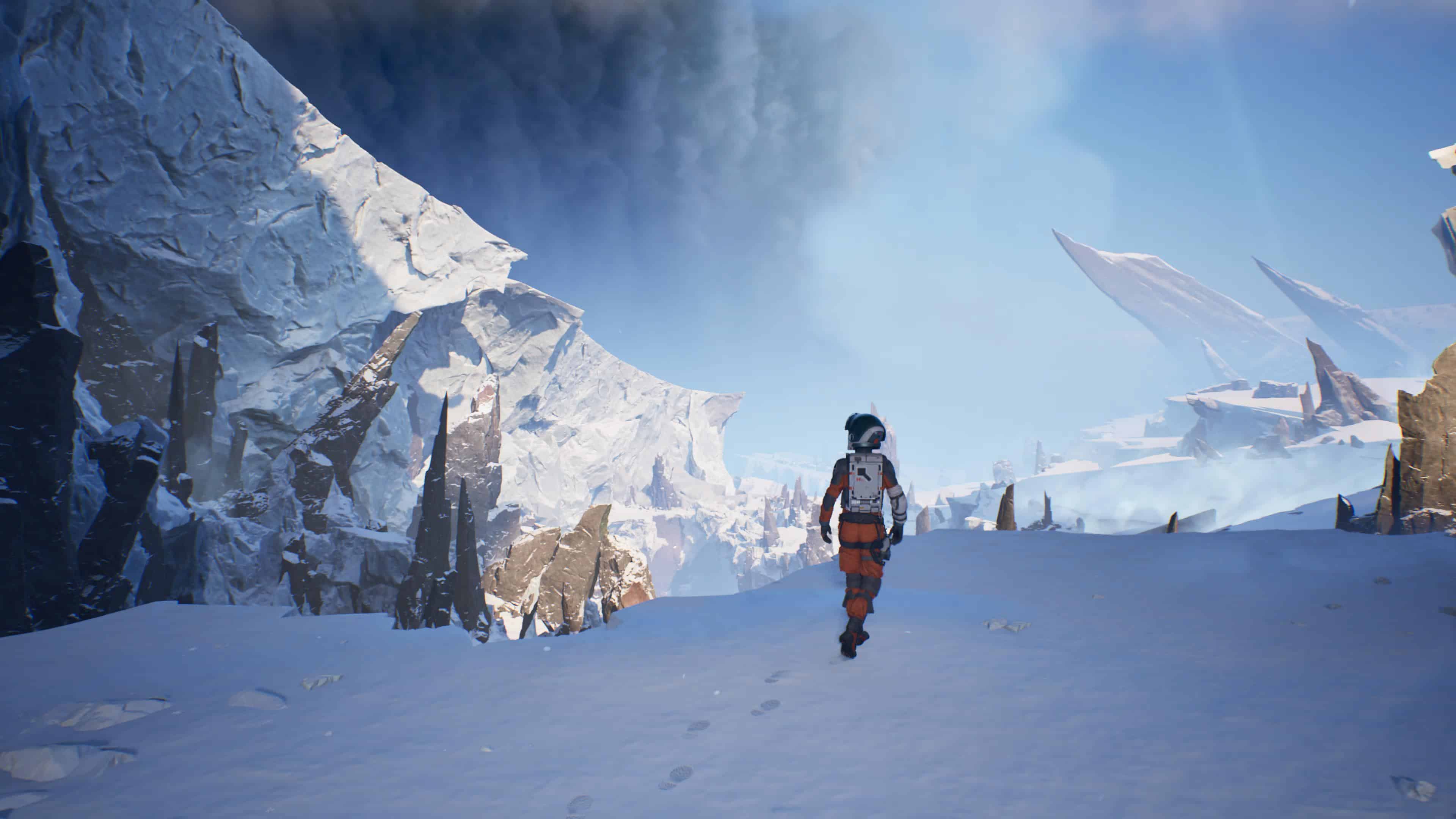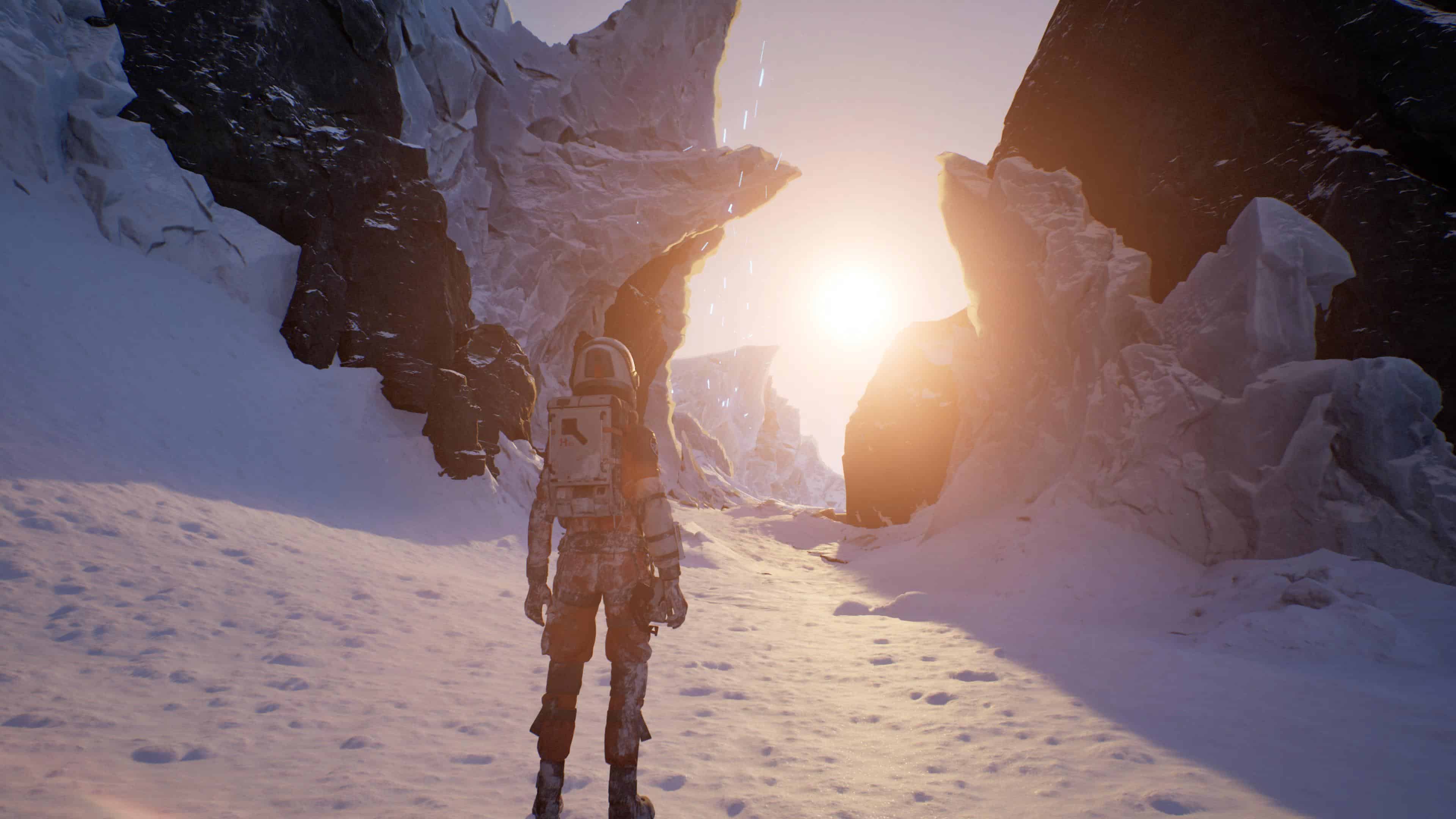 L’objectif étant de retrouver le chemin de la Source, un puits de chaleur caché quelque part sur la planète, vous allez donc arpenter de nombreuses terres glacées. À ce propos, il vous faudra compter sur une moitié d’aventure les pieds dans la poudreuse et donc aux paysages monochromes. Rien de rédhibitoire, mais heureusement que les séquences jouées par Thomas, et bien plus tard également celles d’Ariane, nous proposent de parcourir plutôt des terres désertiques ou, du moins, ensoleillées et sujettes à la fonte des glaces à cause d’une mystérieuse réaction épidermique de Perséphone.
