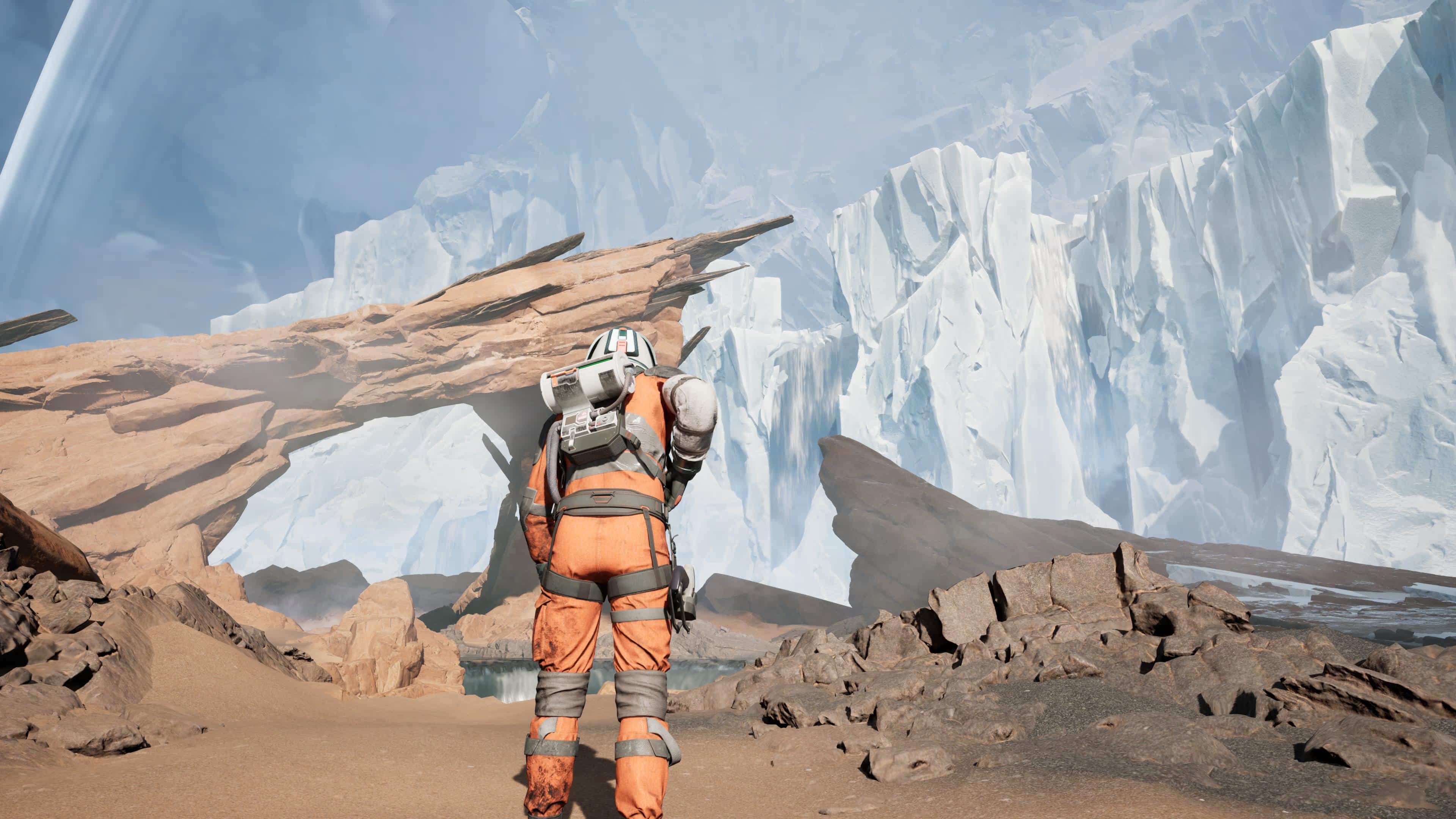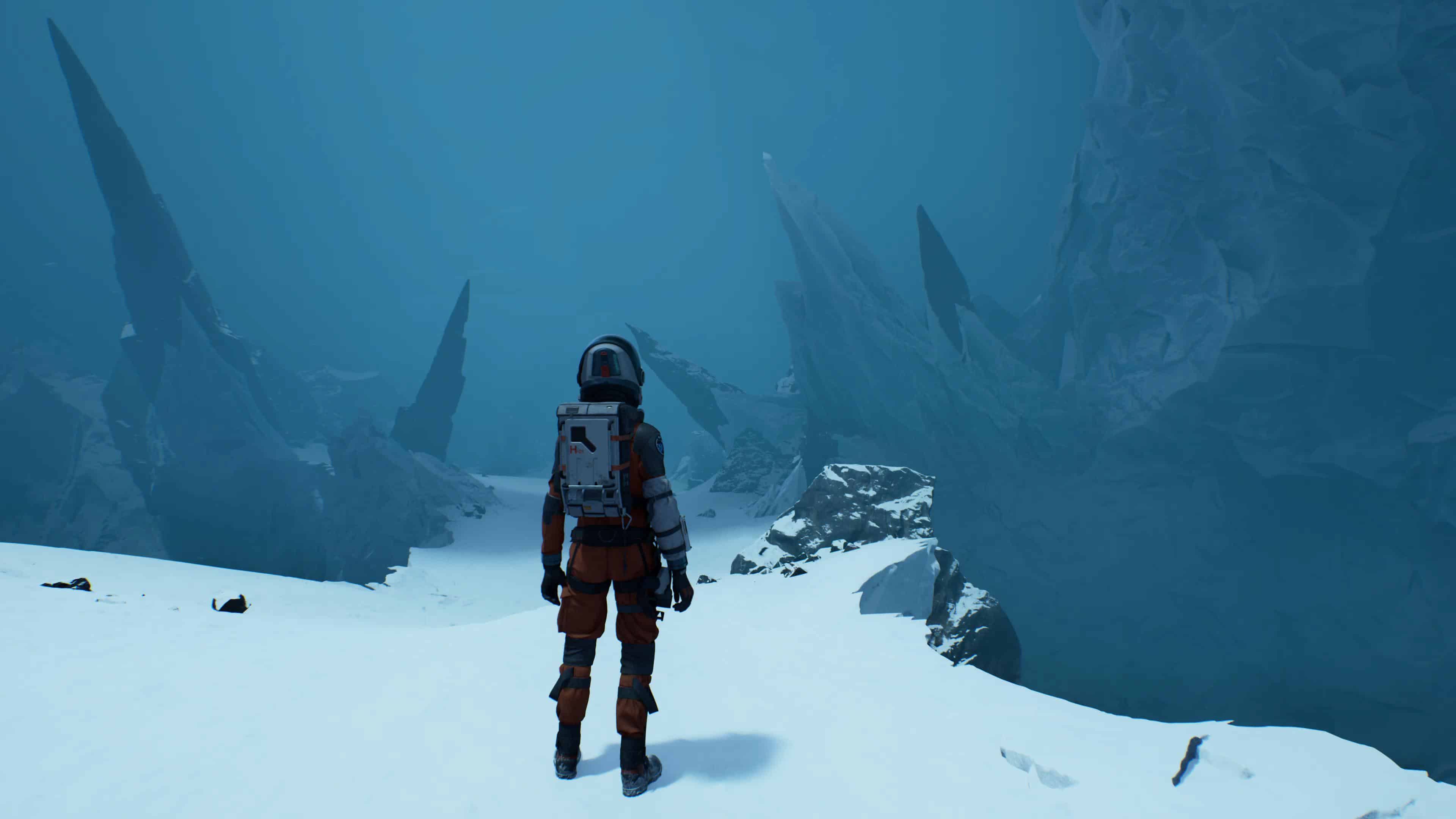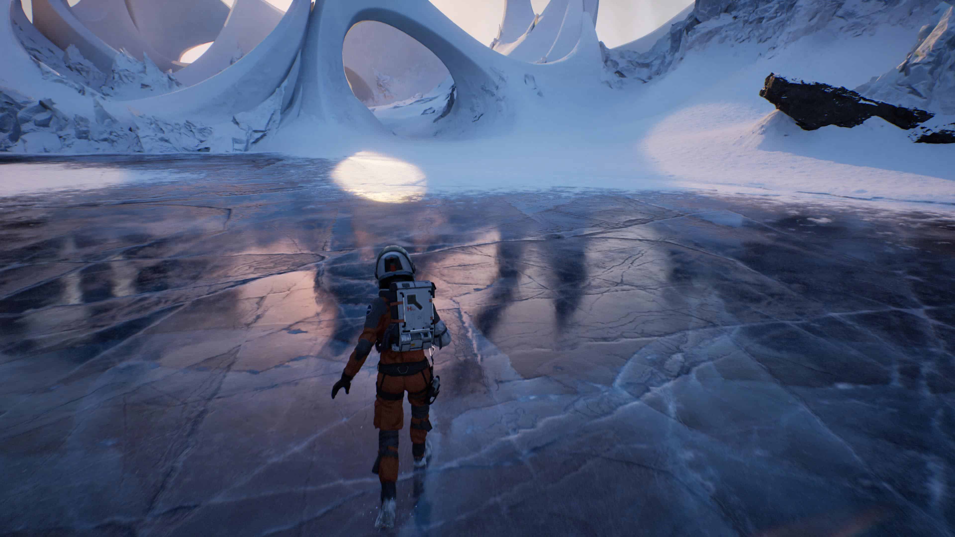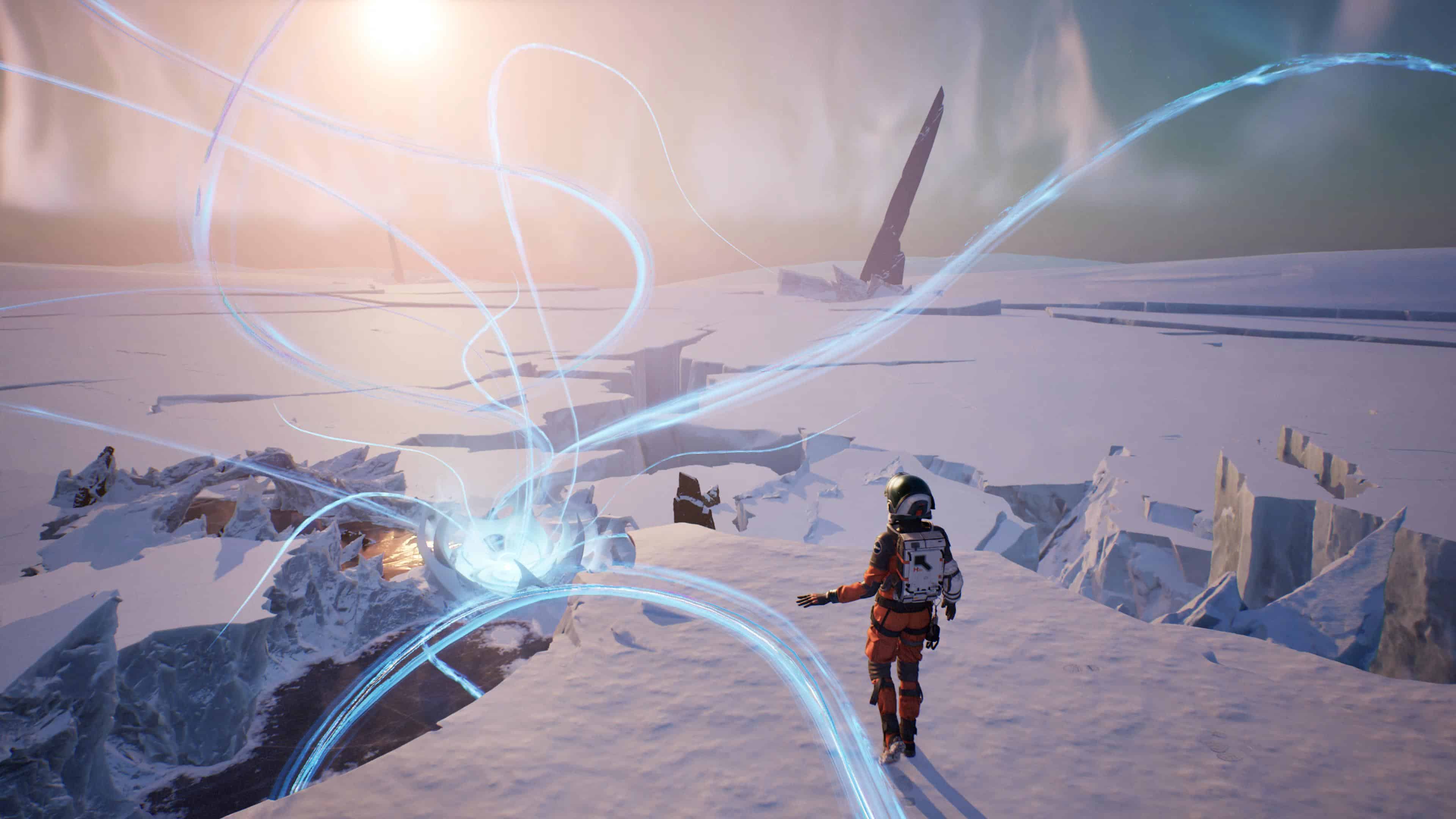 L’objectif étant de retrouver le chemin de la Source, un puits de chaleur caché quelque part sur la planète, vous allez donc arpenter de nombreuses terres glacées. À ce propos, il vous faudra compter sur une moitié d’aventure les pieds dans la poudreuse et donc aux paysages monochromes. Rien de rédhibitoire, mais heureusement que les séquences jouées par Thomas, et bien plus tard également celles d’Ariane, nous proposent de parcourir plutôt des terres désertiques ou, du moins, ensoleillées et sujettes à la fonte des glaces à cause d’une mystérieuse réaction épidermique de Perséphone.