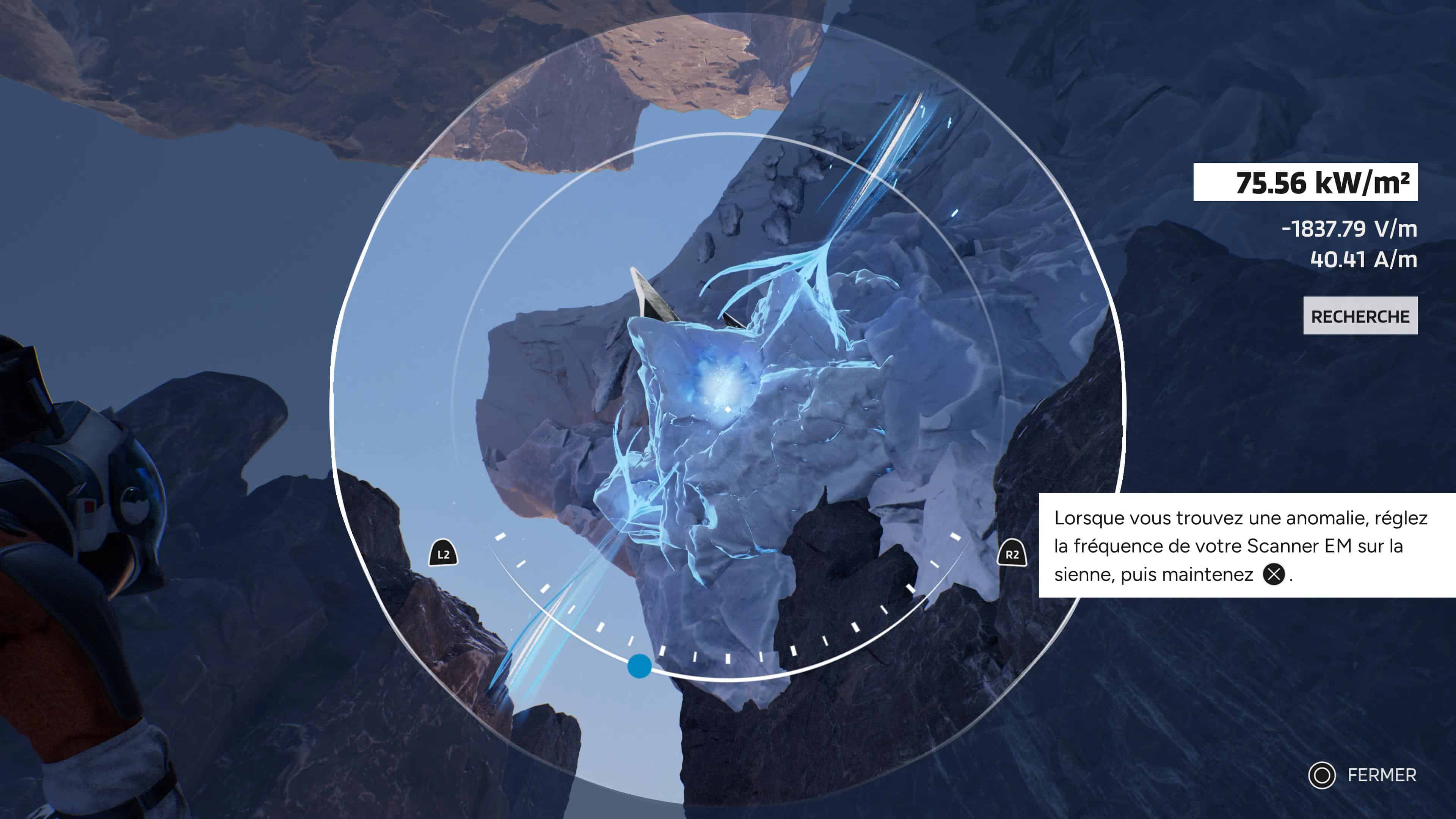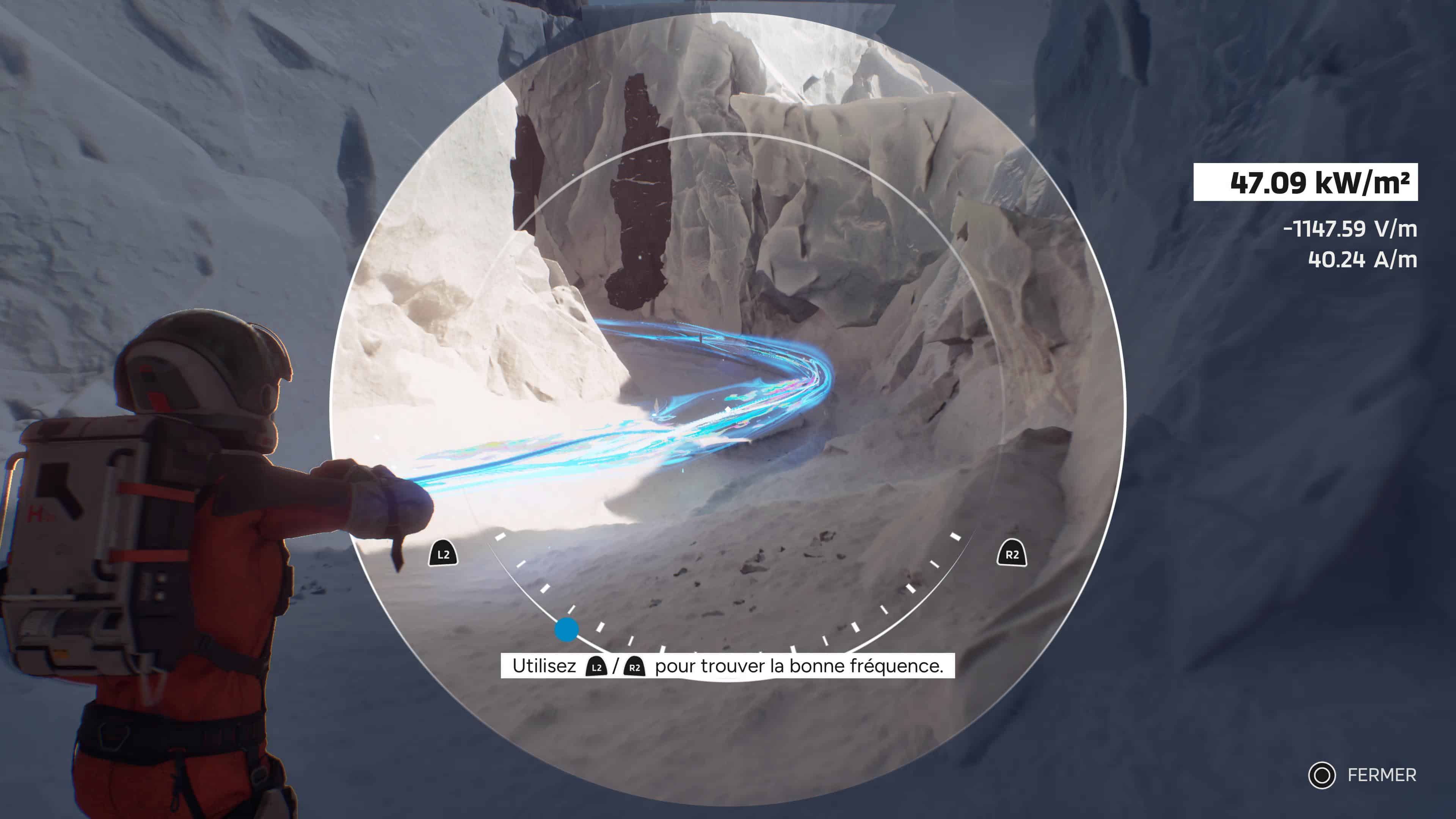 L’autre outil, le détecteur d’ondes électromagnétiques, va s’avérer bien plus utile puisqu’il vous permettra de suivre la trace de la Source recherchée par Ariane et Thomas (et au cœur des secrets de la planète et des expérimentations menées ici), mais aussi de dégager des chemins en agissant sur les anomalies électromagnétiques. Parfois simplement en trouvant la bonne séquence, parfois en devant observer l’environnement pour trouver une zone corrompue à éliminer pour ensuite procéder à la recherche de la fréquence adaptée. Sympathique, mais pas forcément hyper original.