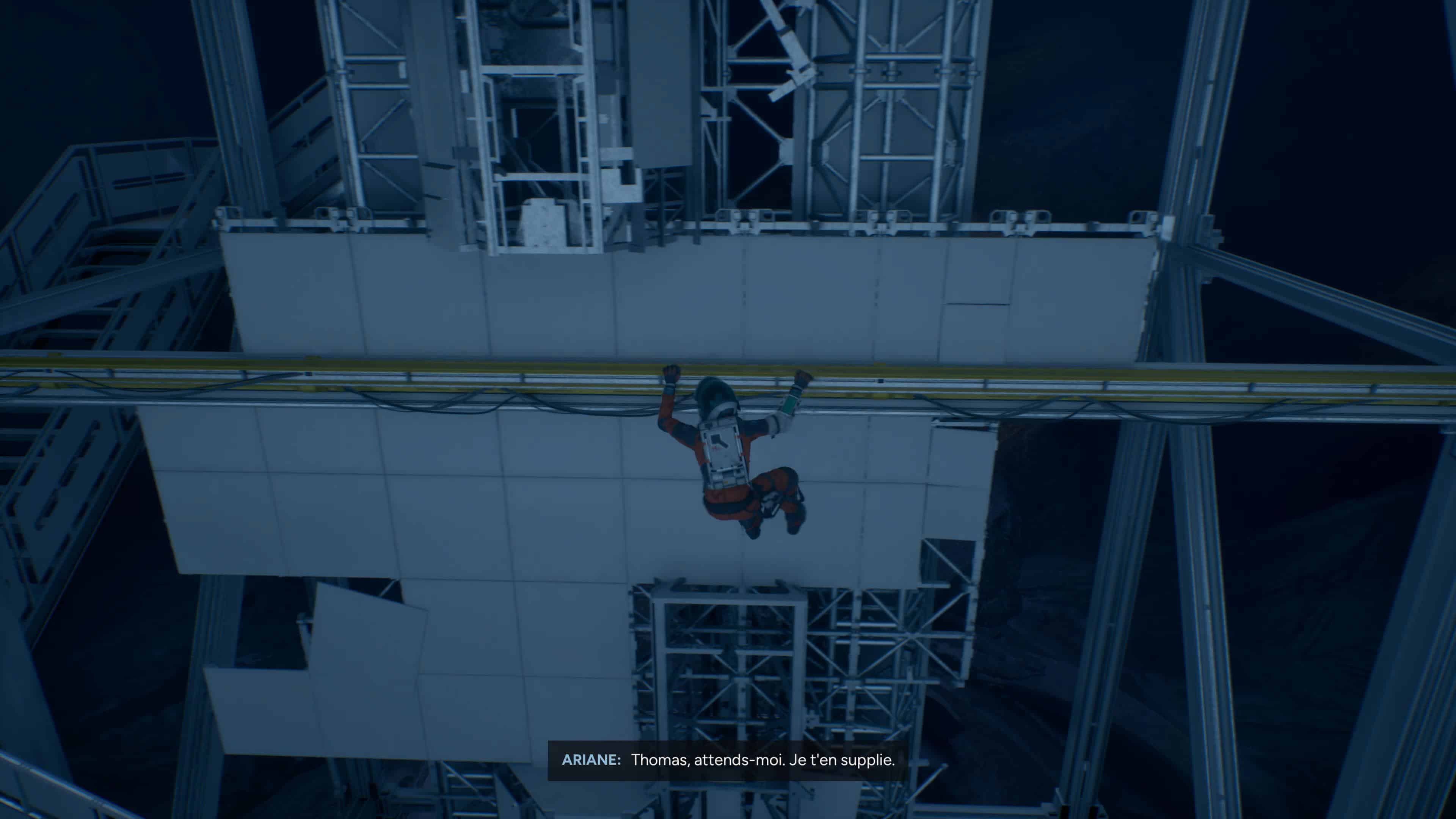 Outre les phases de recherche et d’examen de l’environnement principalement dans la peau d’Ariane, vous allez devoir gravir des parois escarpées à mains nues, utiliser votre grappin pour vous balancer, descendre en rappel ou grimper des parois sans prises ni jouer les équilibristes sur de fines corniches. Les phases de plateforme sont donc plutôt réussies, vous demandant d’appuyer au bon moment sur une touche associée à votre réception (Carré sur PlayStation) pour « valider » votre accroche et ne pas risquer de lâcher la prise suite à un court QTE se déclenchant en cas d’oubli ou de mauvaise prise.