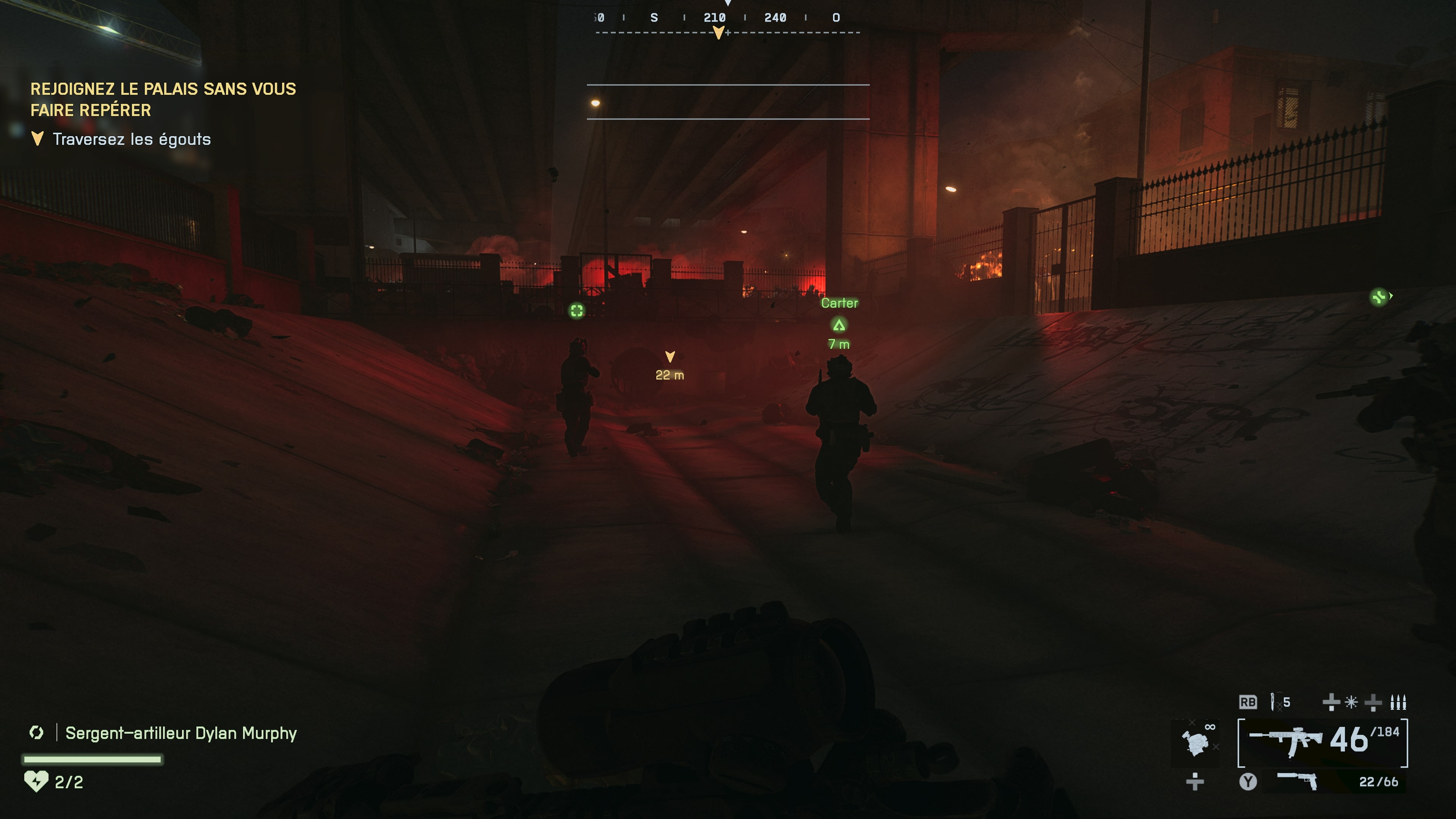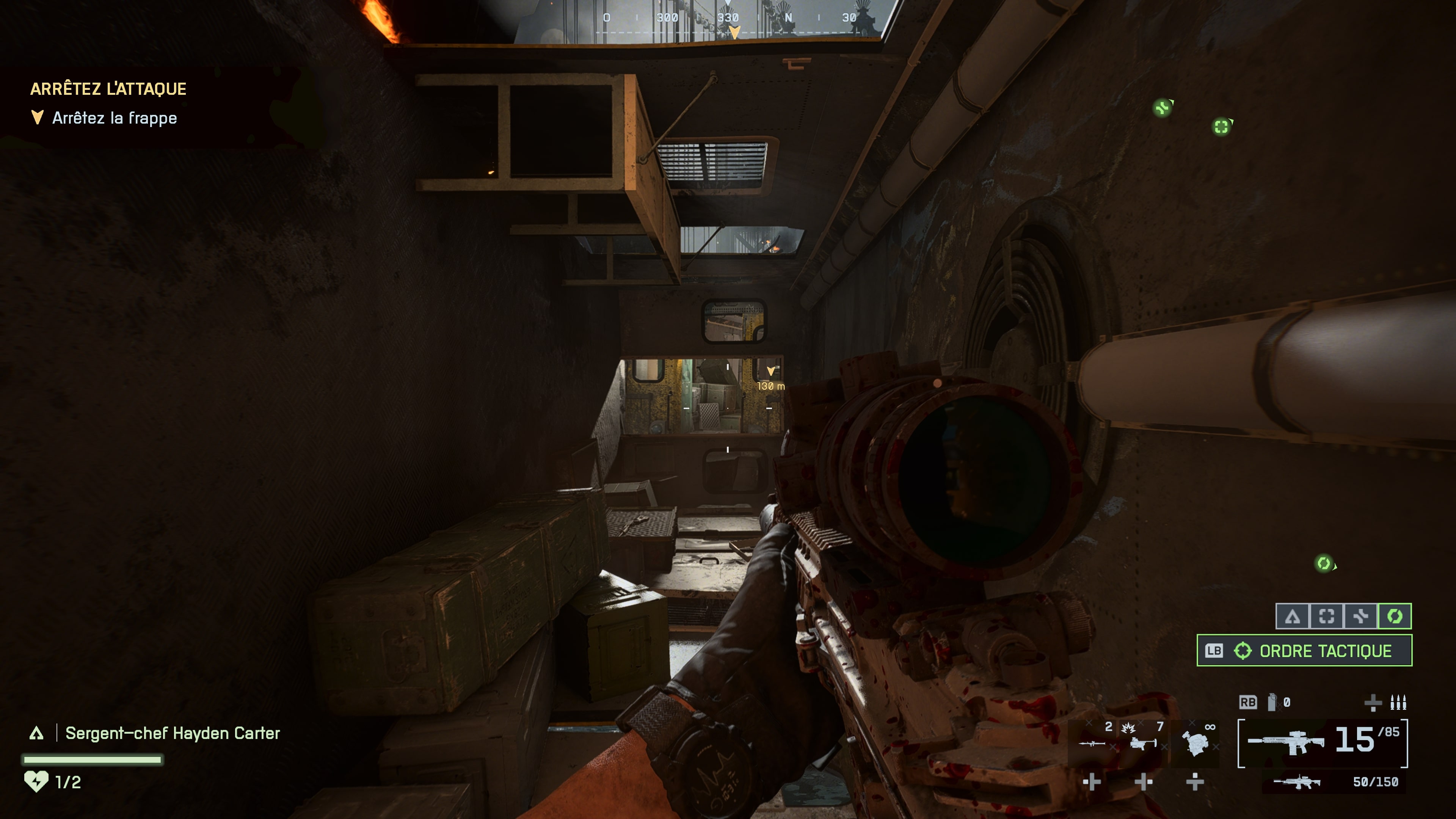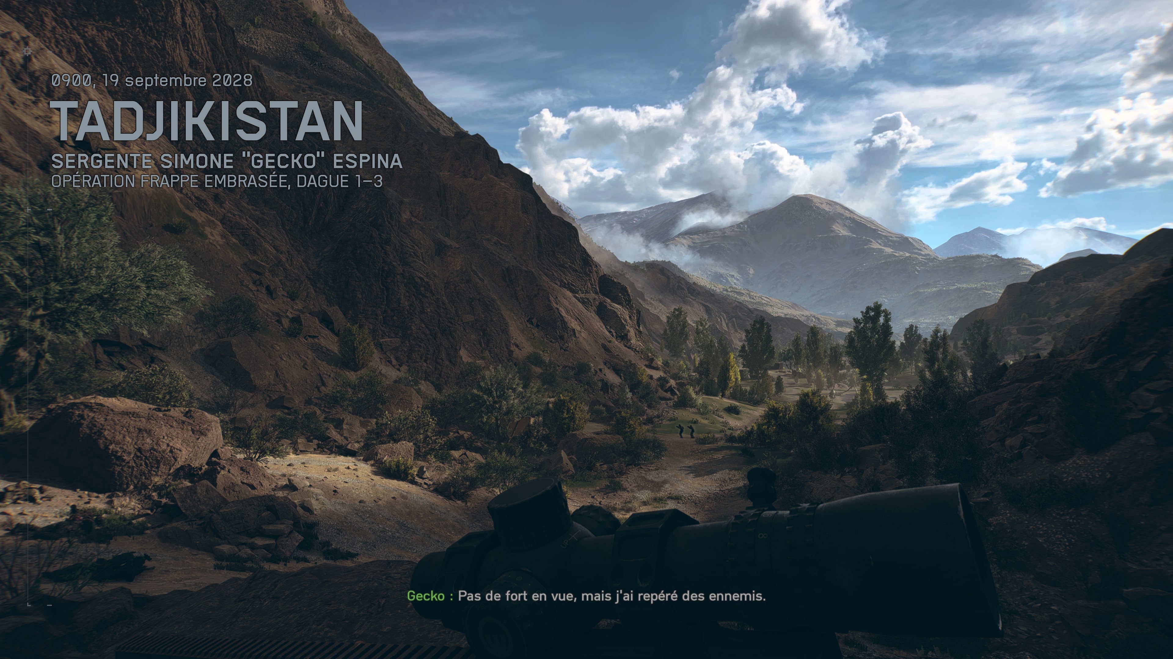 Du côté des combats, la campagne nous permet d’utiliser un arsenal assez vaste avec la possibilité de ramasser les armes ennemies ou d’en récupérer dans différentes caches. Une bonne occasion de découvrir et d’appréhender une partie du matériel à utiliser ensuite en multijoueurs, de même que les rôles emblématiques de la licence : Assaut, Ingénieur, Support et Éclaireur. Chaque membre de l’escouade Dague 1-3 possède l’un de ces rôles et les particularités qui vont avec.