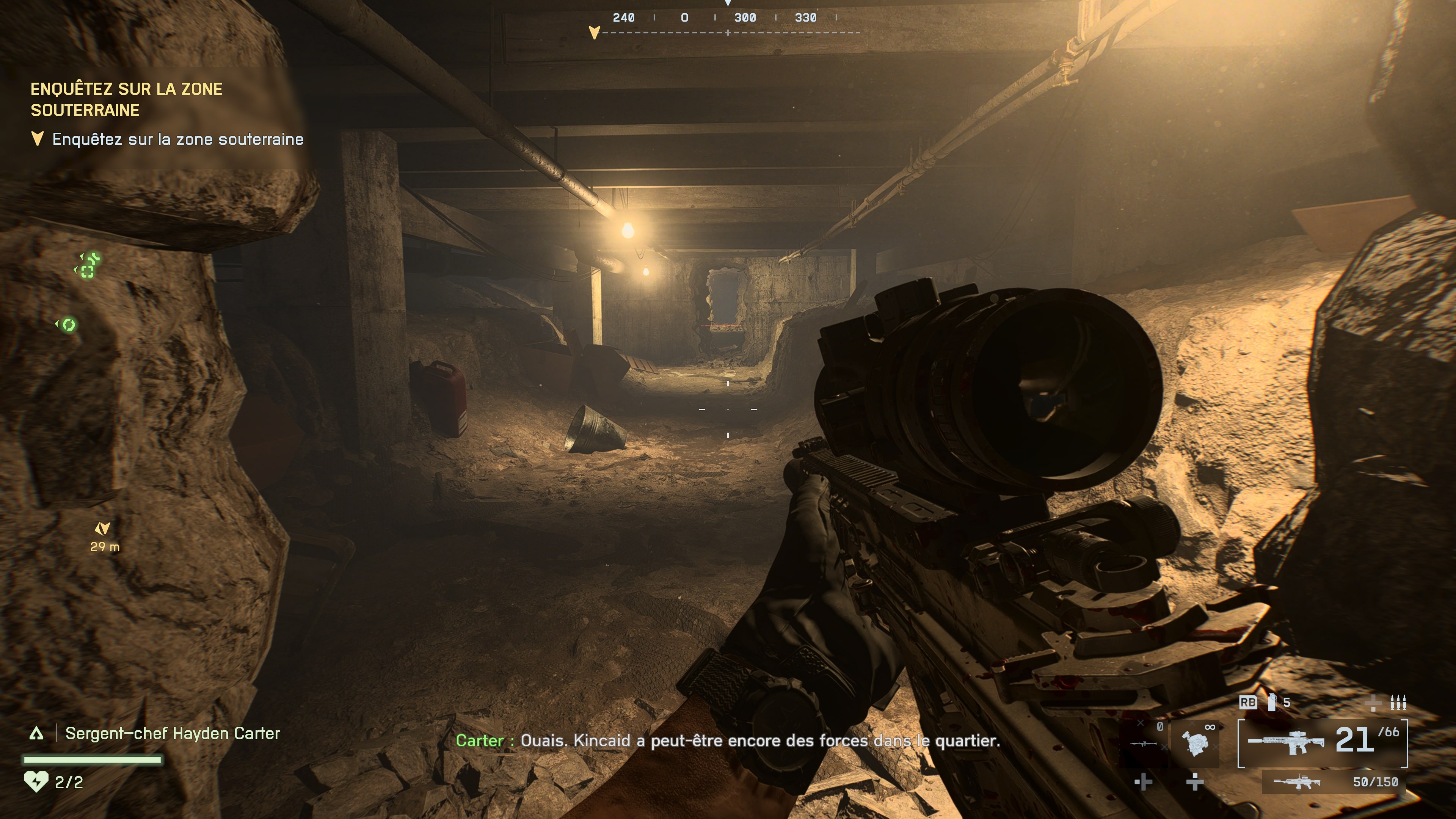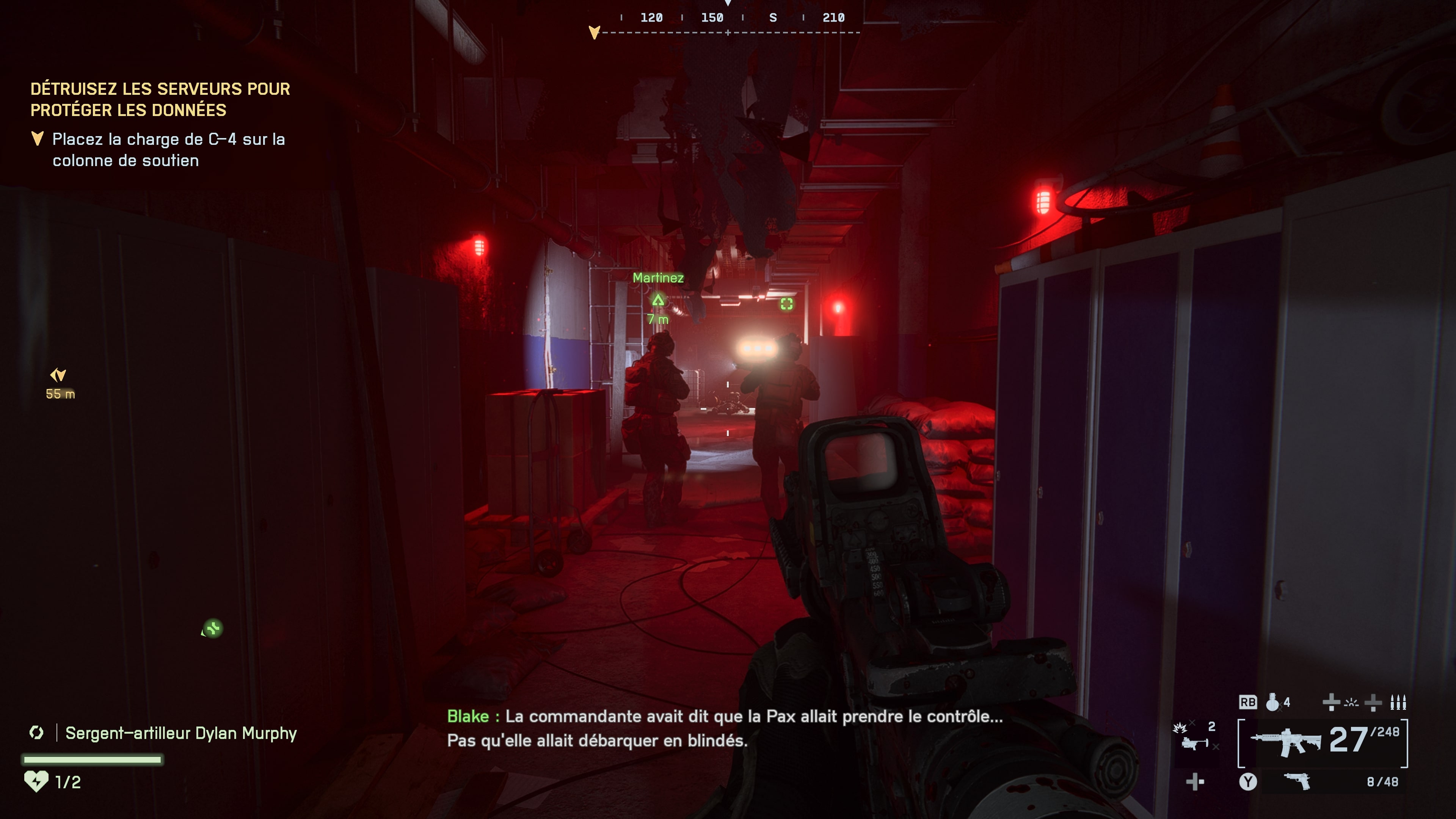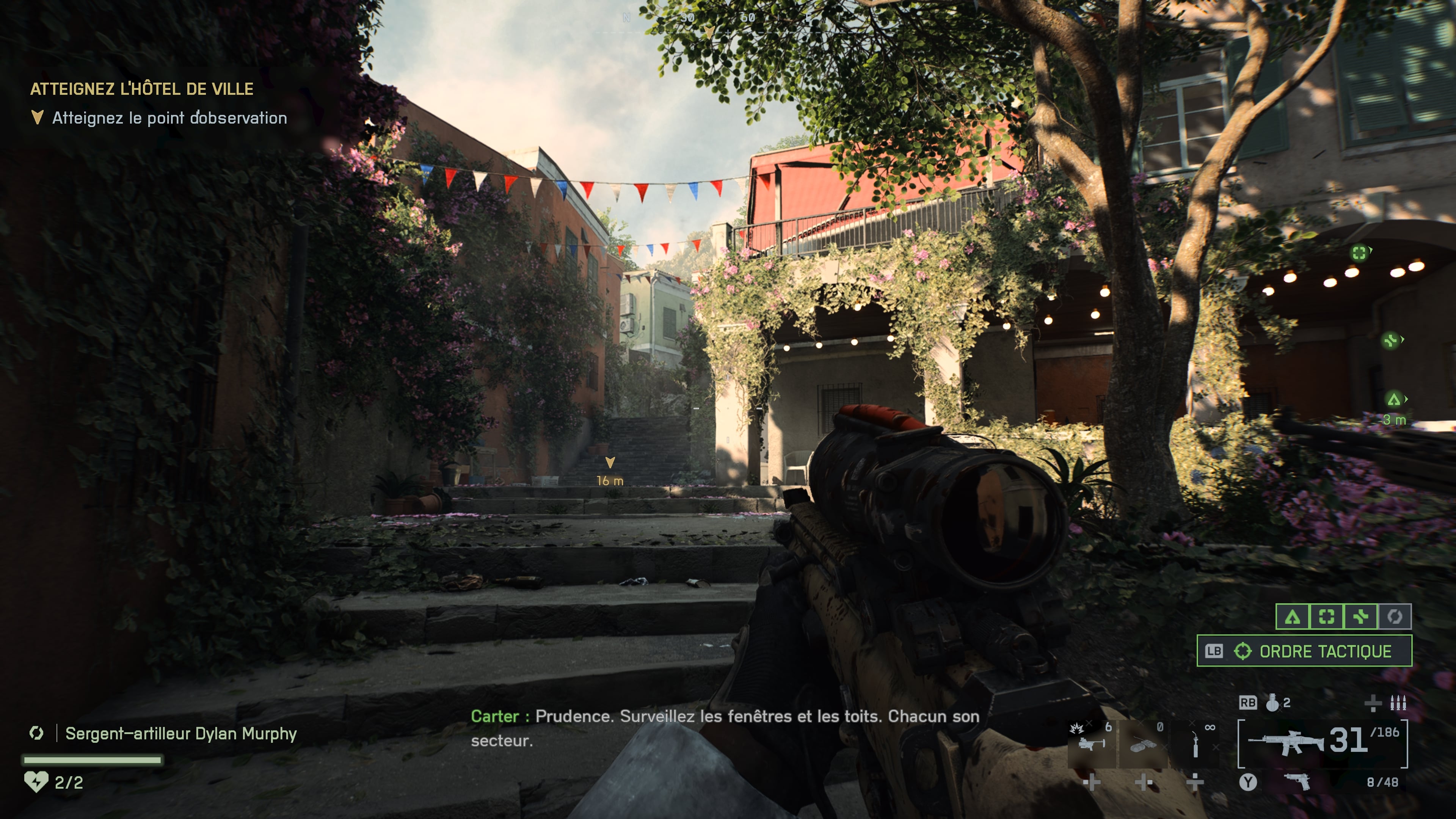 Du côté des combats, la campagne nous permet d’utiliser un arsenal assez vaste avec la possibilité de ramasser les armes ennemies ou d’en récupérer dans différentes caches. Une bonne occasion de découvrir et d’appréhender une partie du matériel à utiliser ensuite en multijoueurs, de même que les rôles emblématiques de la licence : Assaut, Ingénieur, Support et Éclaireur. Chaque membre de l’escouade Dague 1-3 possède l’un de ces rôles et les particularités qui vont avec.