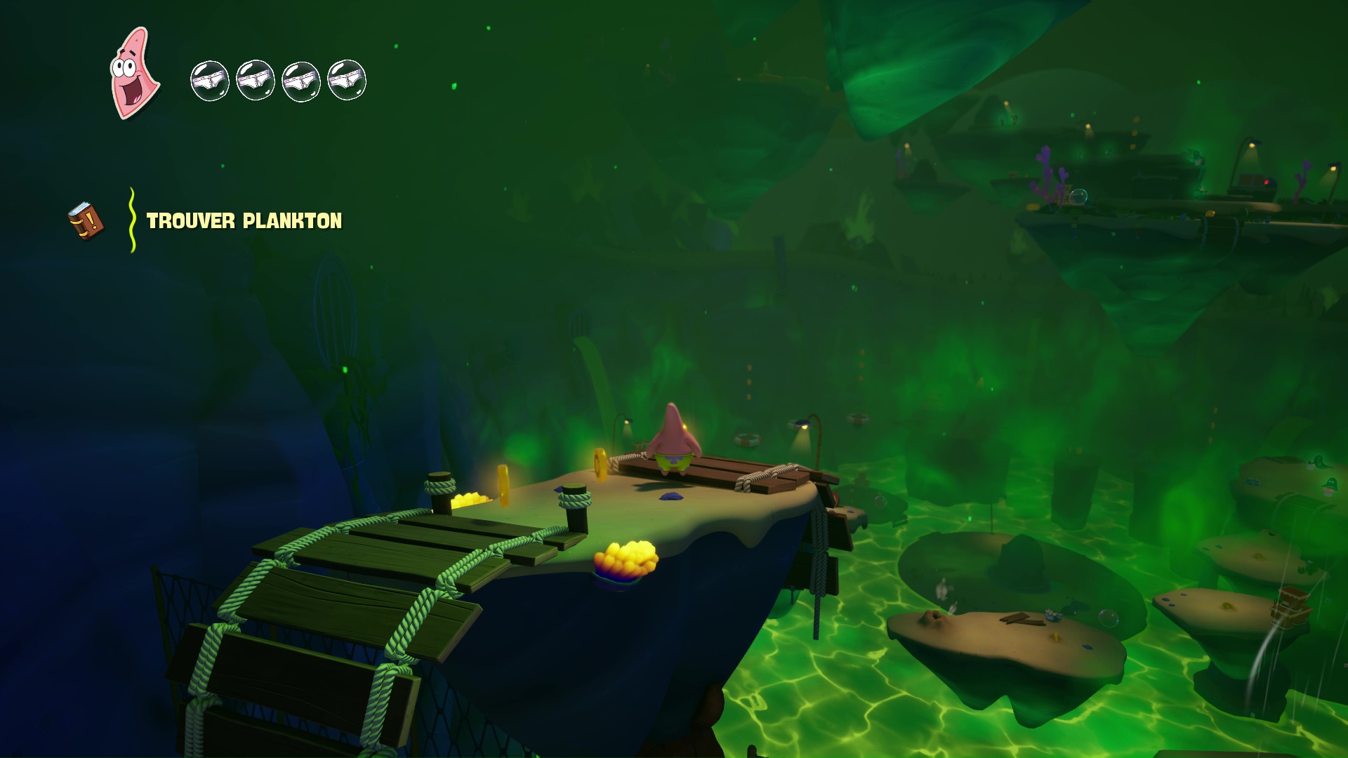 Regroupant un contenu supplémentaire non négligeable (comptez les défis de Plankton, la quête secondaire du casier de Davy Jones ou encore des courses et autres cauchemars de Carlo façon mélange entre Les Schtroumpfs: L’épopée des rêves et Astro Bot), ces nouveaux niveaux, qui vous occuperont pendant une poignée d’heures supplémentaires, auraient eu toute leur place dans le contenu de base, plutôt que d’être proposés dans une formule 15 € plus chère ou à l’unité moyennant 19,99 €.