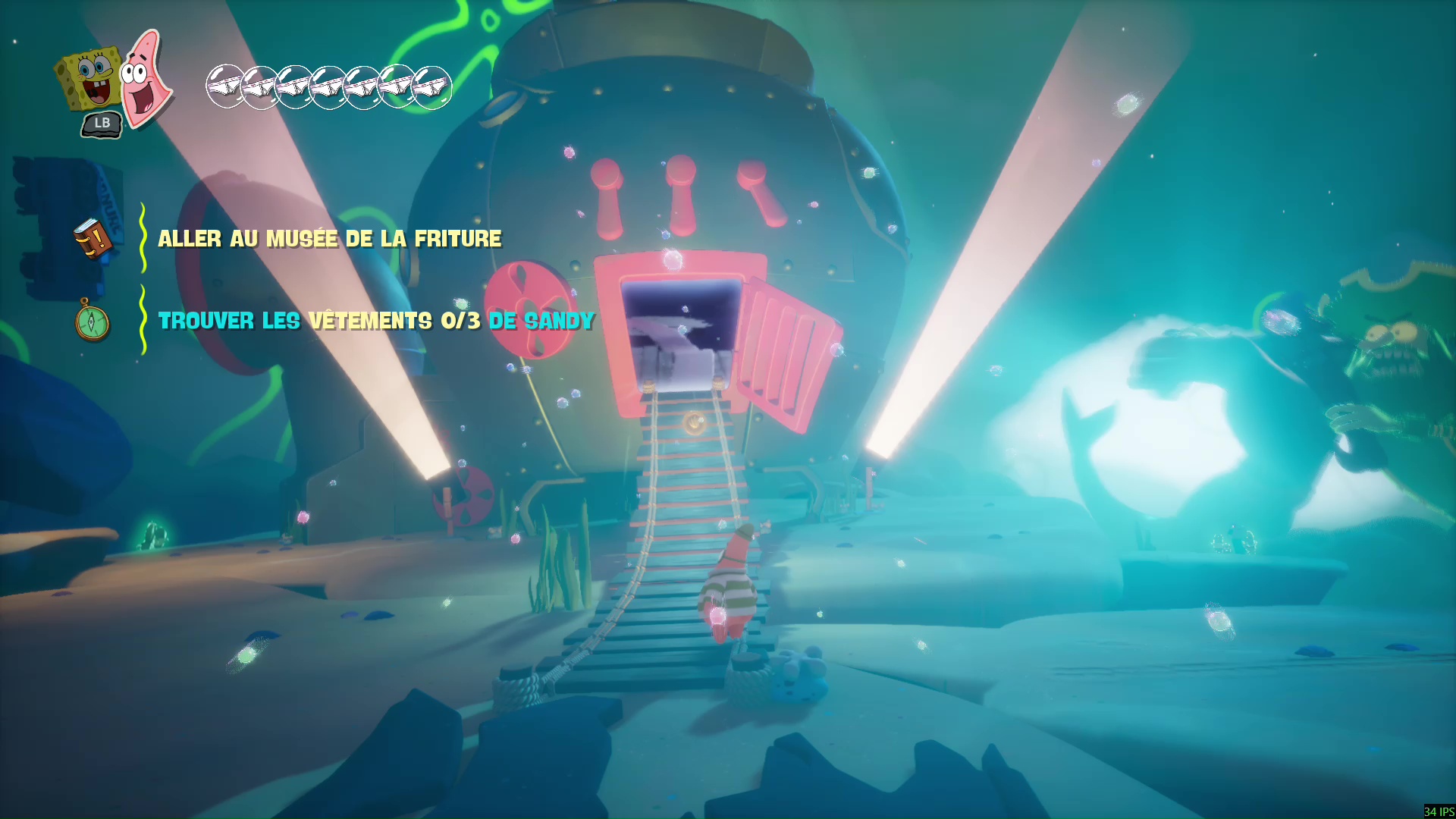 Nos amis feront ainsi la rencontre de personnages emblématiques de la licence, comme Mme Puff, Sandy l’Écureuil ou encore Pearl, la fille de M. Krabs, mais aussi Plankton, l’ennemi juré du crabe rouge ou Karen, sa compagne électronique. Mais rassurez-vous, que vous connaissiez ou pas la licence, vous prendrez plaisir à suivre leurs aventures, d’autant plus que le casting actuel français double toutes les voix bien connues des personnages qui permettent de réellement se croire dans une aventure télévisée de l’éponge de mer. Une aventure toujours aussi drôle et absurde avec un humour qui fait mouche, à condition de ne pas trop se frotter à une réalisation bancale, avec des dialogues achevés de manière abrupte, des écrans de chargement intempestifs (mais rapides, heureusement), ou un ATH bien présent et impossible à effacer.