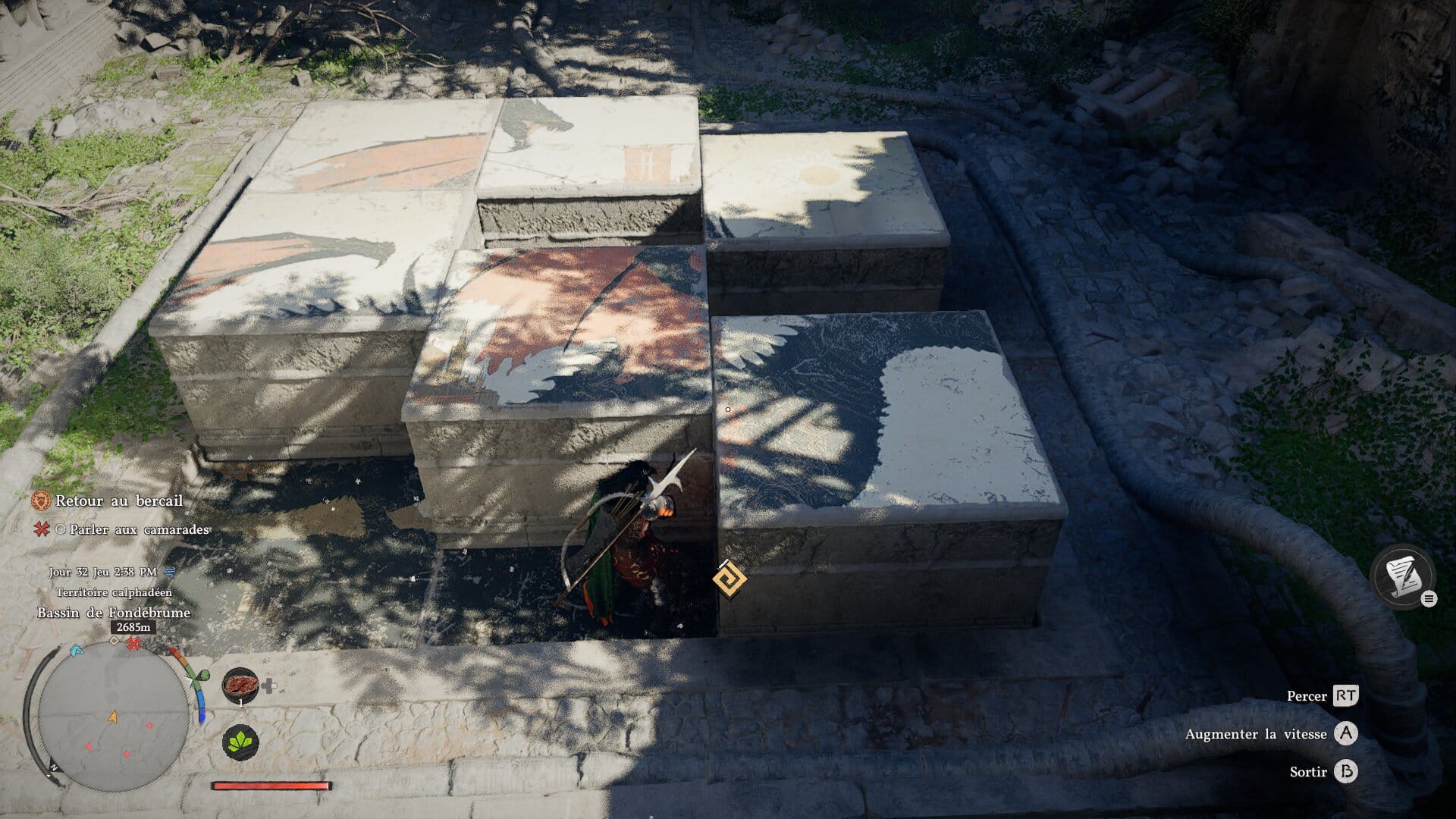 Pour nous faciliter la vie, le studio nous demande de reconstruire le camp des Crinières Grises, ce qui sera un moyen d’obtenir moult ressources. On se retrouve ici devant une partie gestion simple, mais encore une fois terriblement mal présentée qui n’invite pas à s’y intéresser. Grossière erreur tant le camp devient rapidement primordial dans votre aventure, justement pour vous éviter trop de voyages entre les villes.