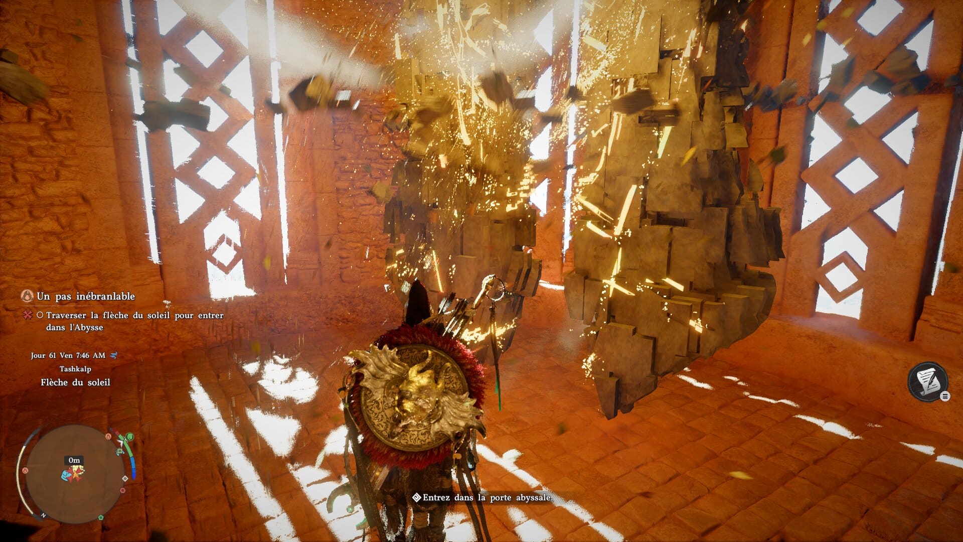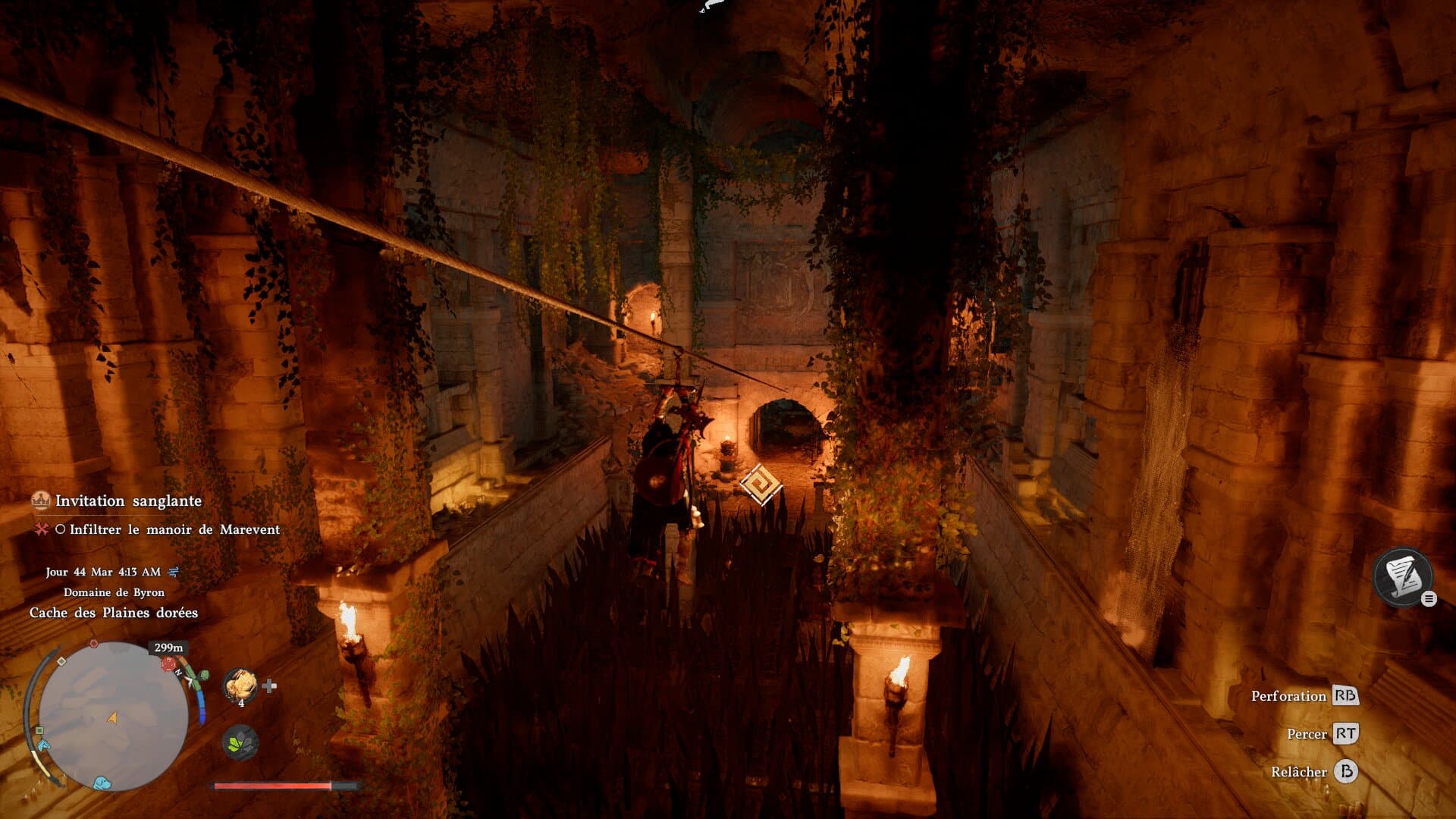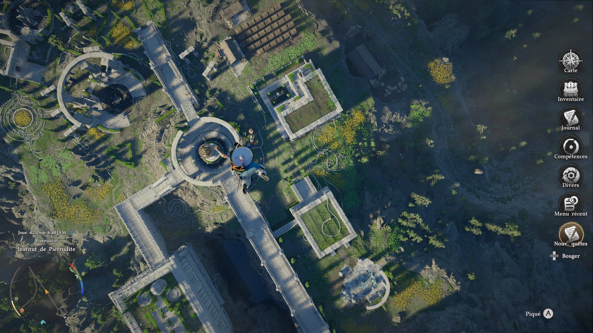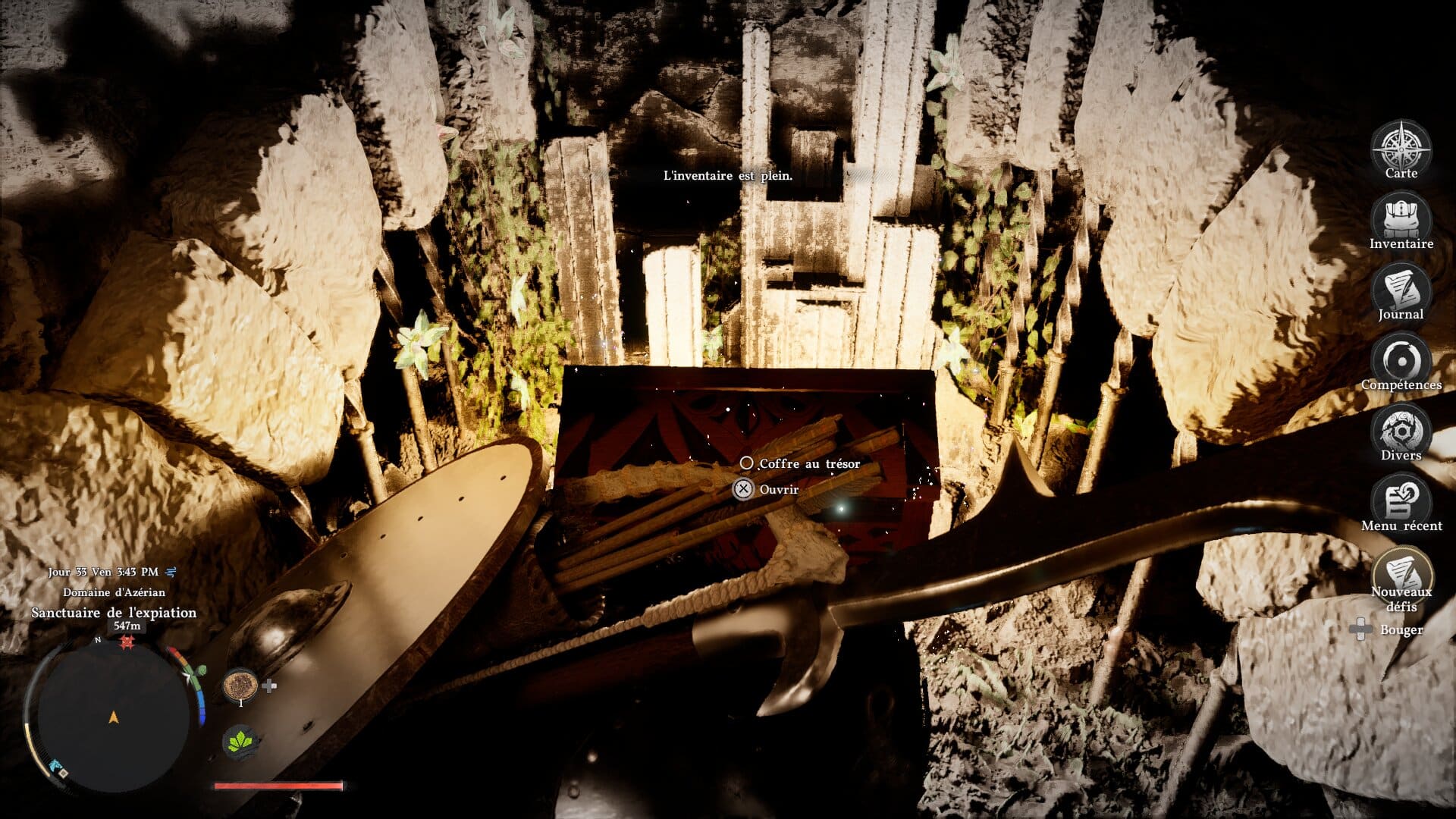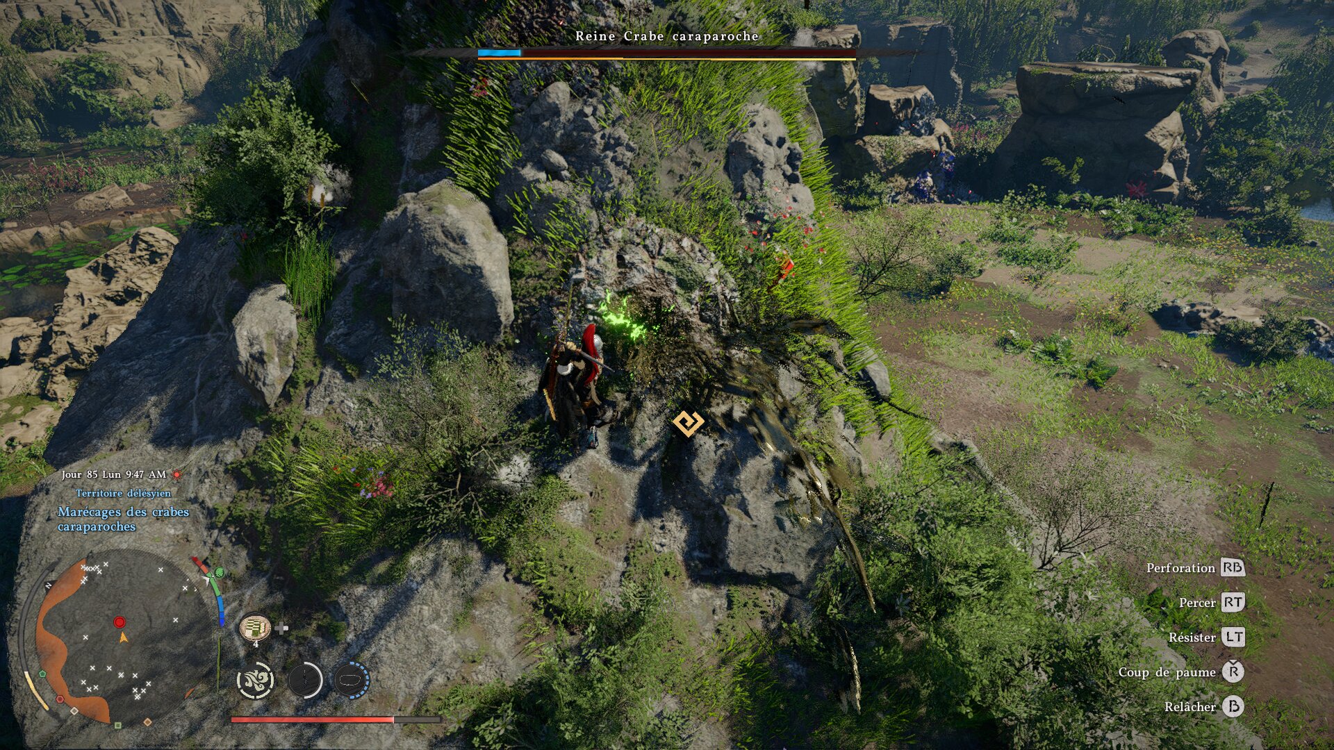 Des exemples valent mille mots : la touche pour s’accroupir est la même que pour utiliser votre bras/grappin magique façon Link. De même pour la touche de garde et celle de la visée. Brûler quelque chose avec le reflet du soleil sur votre lame demande deux actions, dont appuyer deux fois sur le même bouton. Le double saut n’a qu’une petite fenêtre d’action avant qu’il ne soit remplacé par l’action de planer. Ramasser un objet au sol a de quoi faire souffler du nez, à moins de sortir votre lanterne pour viser l’objet en question et le prendre plus facilement. On ne compte plus les fois où Kliff ramassait tout ce qu’il y avait autour d’un objet précieux – de la mouche à la bougie qui ne sert à rien – sauf l’objet en question. Des petits détails ? Pas vraiment. Crimson Desert se rêvait en Zelda ; il se joue parfois comme un Rockstar, avec toute la lourdeur que cela implique.