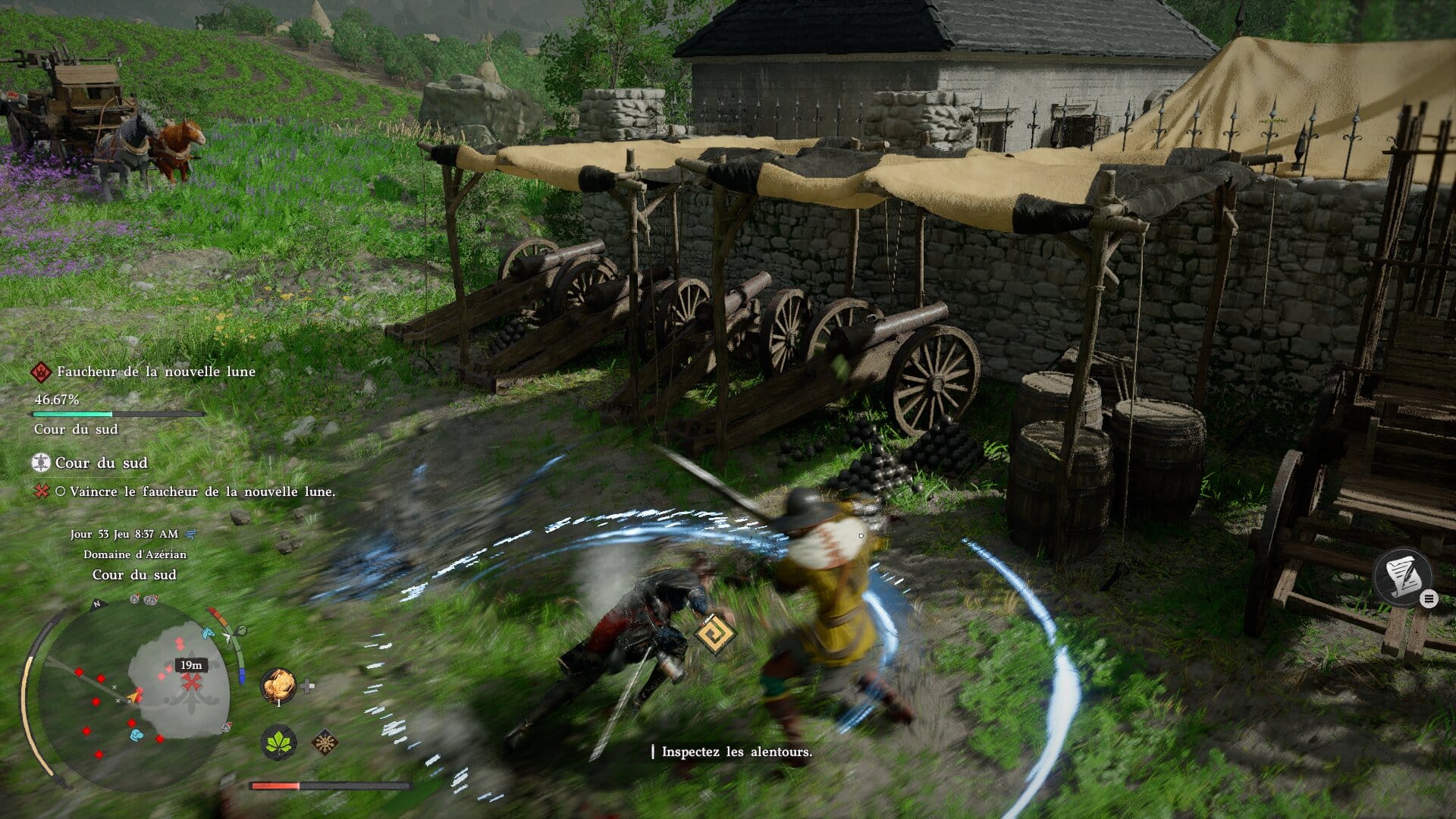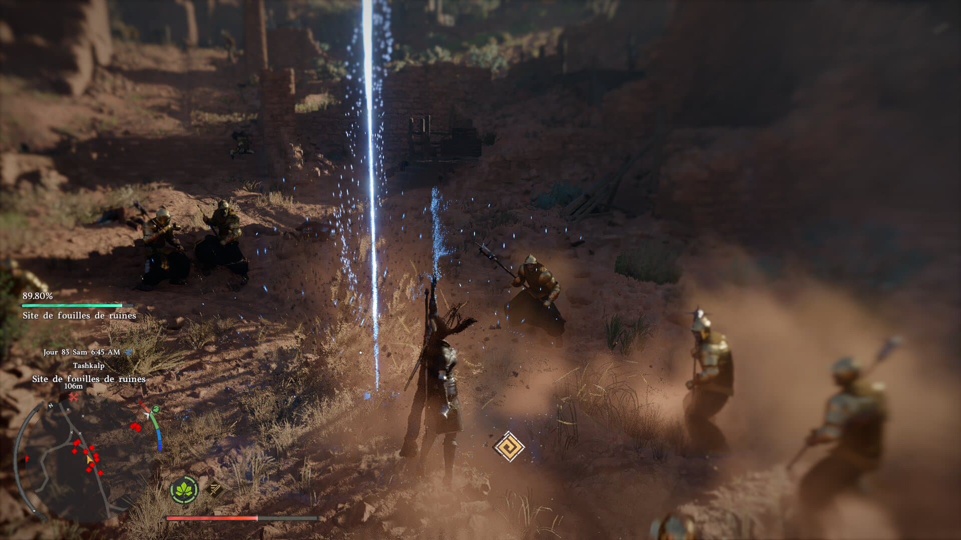C’est peut-être parfois trop dans certaines situations, surtout à cause d’une IA très agressive qui laisse peu le temps de souffler. Pearl Abyss a cependant eu la bonne idée d’intégrer une fonctionnalité intéressante en plein milieu de notre test qui nous permet d’invoquer les deux autres personnages jouables pour qu’ils viennent nous filer un coup de main. De quoi rendre les (trop) nombreuses prises de fort bien plus digestes, d’autant plus lorsque l’on pense à envoyer certains mercenaires faire le boulot en même temps que nous.