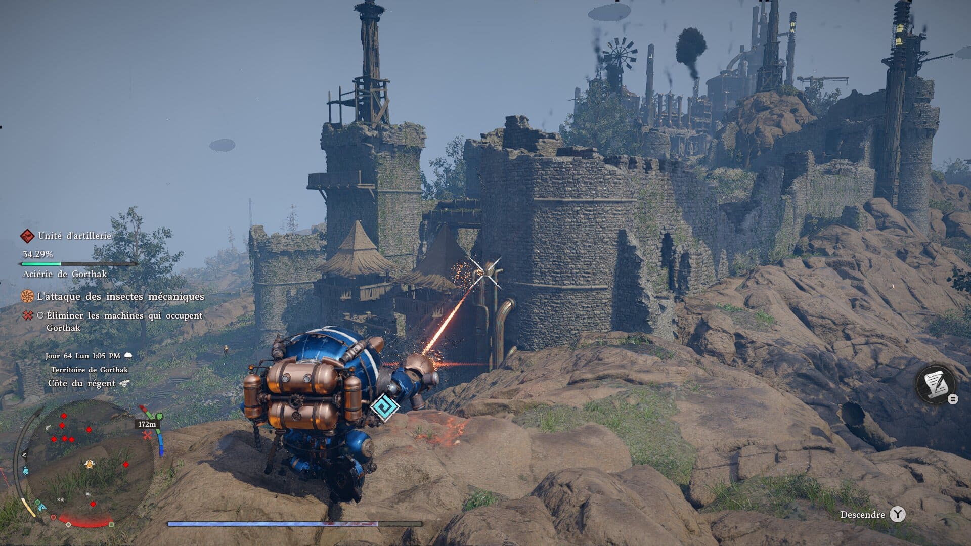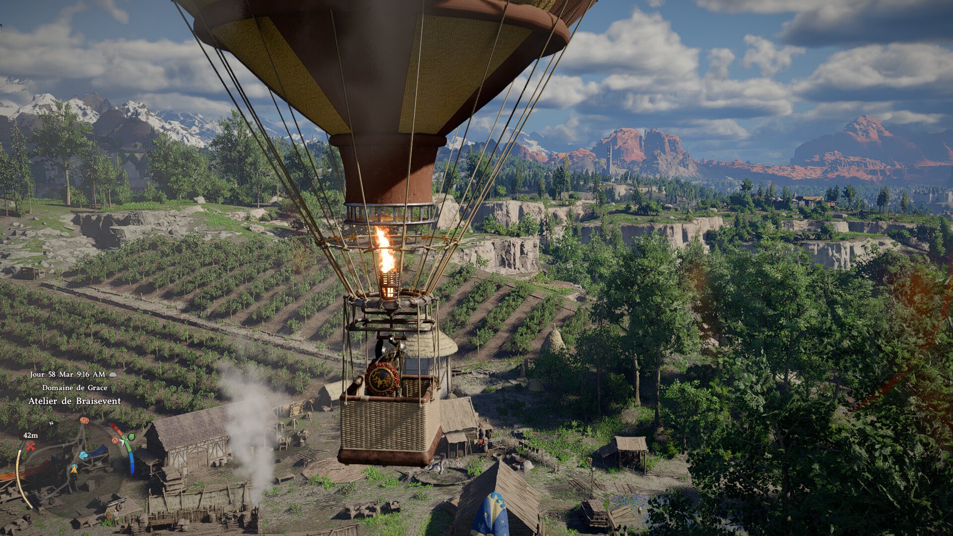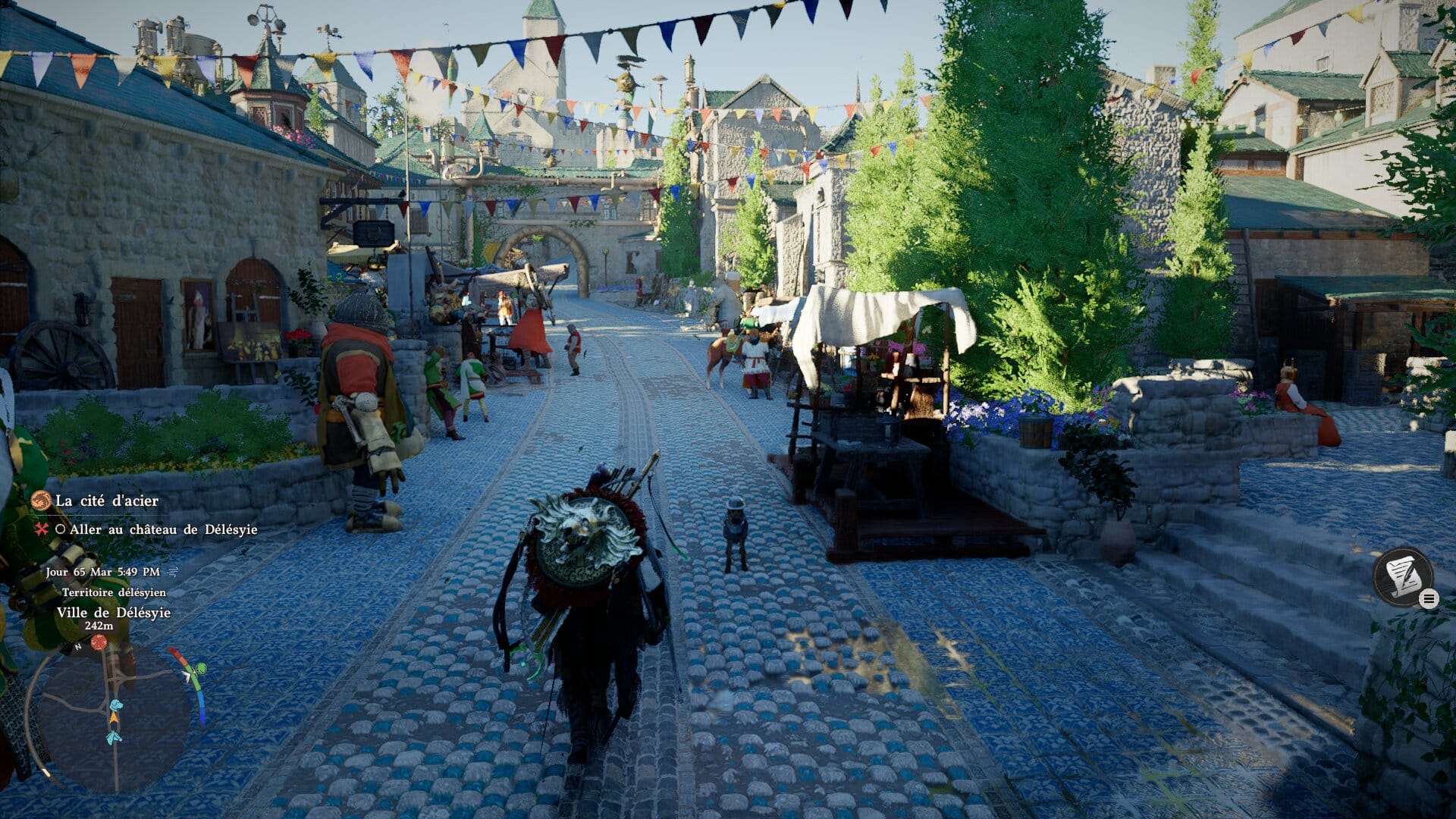 Mais comme le dirait un certain Dalinar, « le voyage avant la destination » n’est-ce pas ? Et sur ce plan, Crimson Desert ne déçoit pas. Malgré l’aspect fouilli que l’univers peut avoir au premier abord en mélangeant fantasy classique, steampunk et vie du Moyen-Âge, le tout est d’une étonnante cohérence avec un monde séparé par des biomes qui font sens et qui se mêlent bien les uns aux autres. Tomber par hasard sur un cirque vivant rempli de robots et de gobelins est par exemple une expérience unique qui nous restera en tête. Le monde reste vivant avec des villes à la charmante architecture, bourrées à craquer de passants, une flore particulièrement riche et une faune bien présente. Une vraie machine à screenshots.