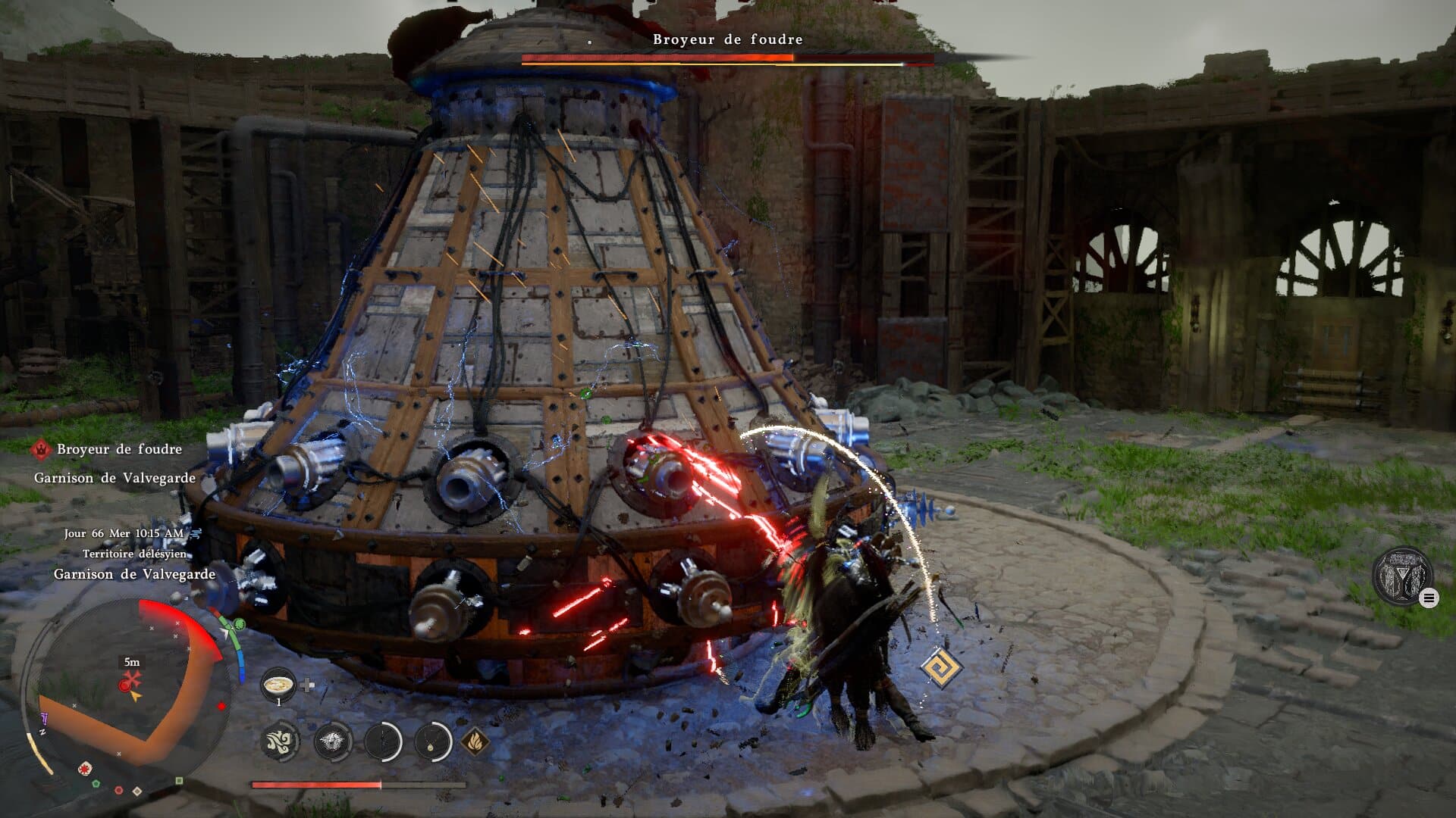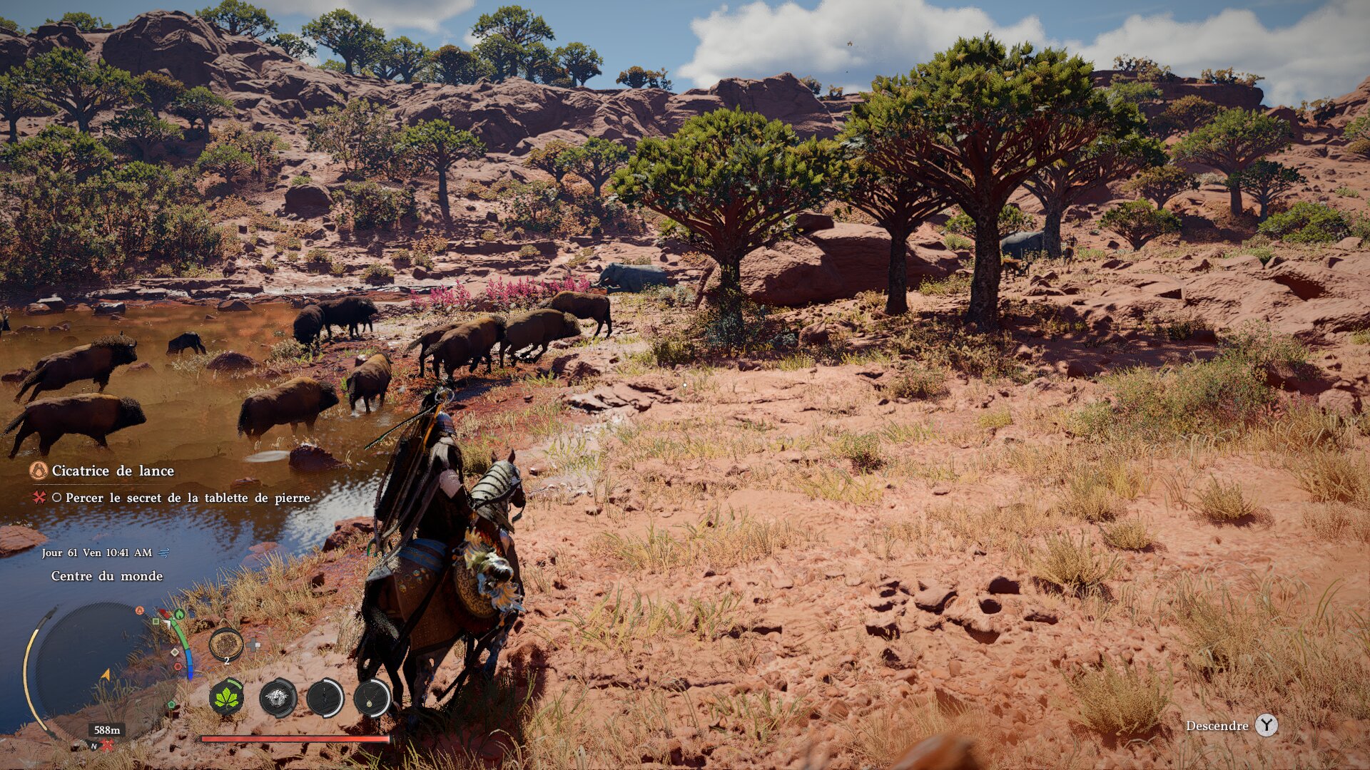 Certes, dans une industrie où les fameuses « lignes jaunes » – sortes d’autoroutes tracées dans chaque jeu pour ne pas perdre le grand public – sont sujettes à débat, le fait que Crimson Desert compte sur notre logique ludique est quelque part assez rafraichissant. Et ça l’est d’autant plus lorsqu’il est question de résoudre les multiples puzzles qu’il nous propose (on y reviendra). Reste malgré tout que la courbe d’apprentissage n’est pas bien gérée, avec des instructions trop confuses et dont la cohérence nous échappe. On en vient presque à se demander si cet aspect cryptique n’est pas forcé pour amener à la construction d’une véritable communauté autour du jeu, capable de s’entraider en partageant les meilleurs conseils. L’envie serait louable, la manière moins, tant le tout parait plutôt hasardeux que volontairement choisi.