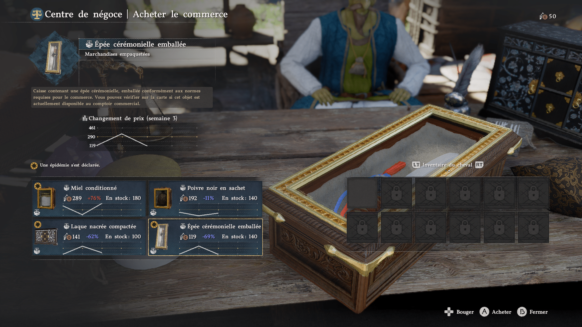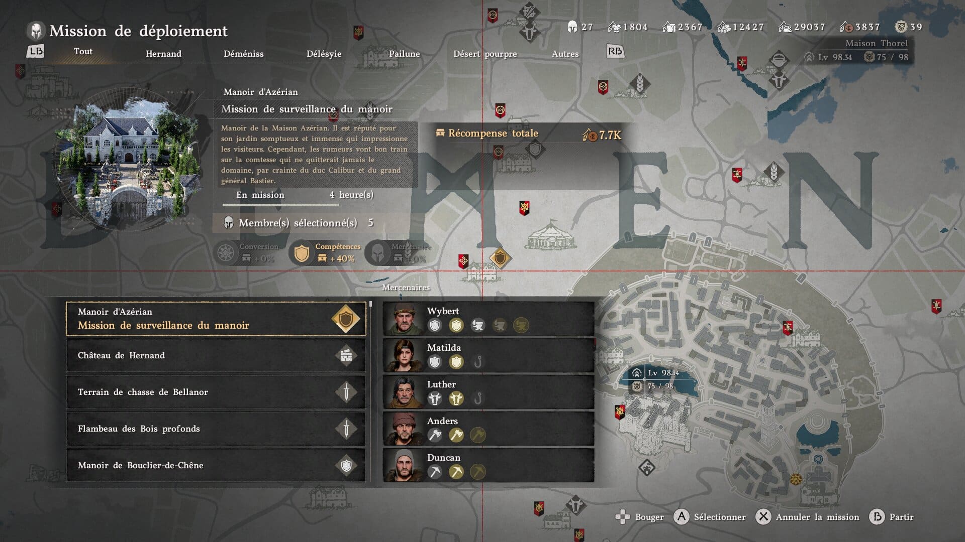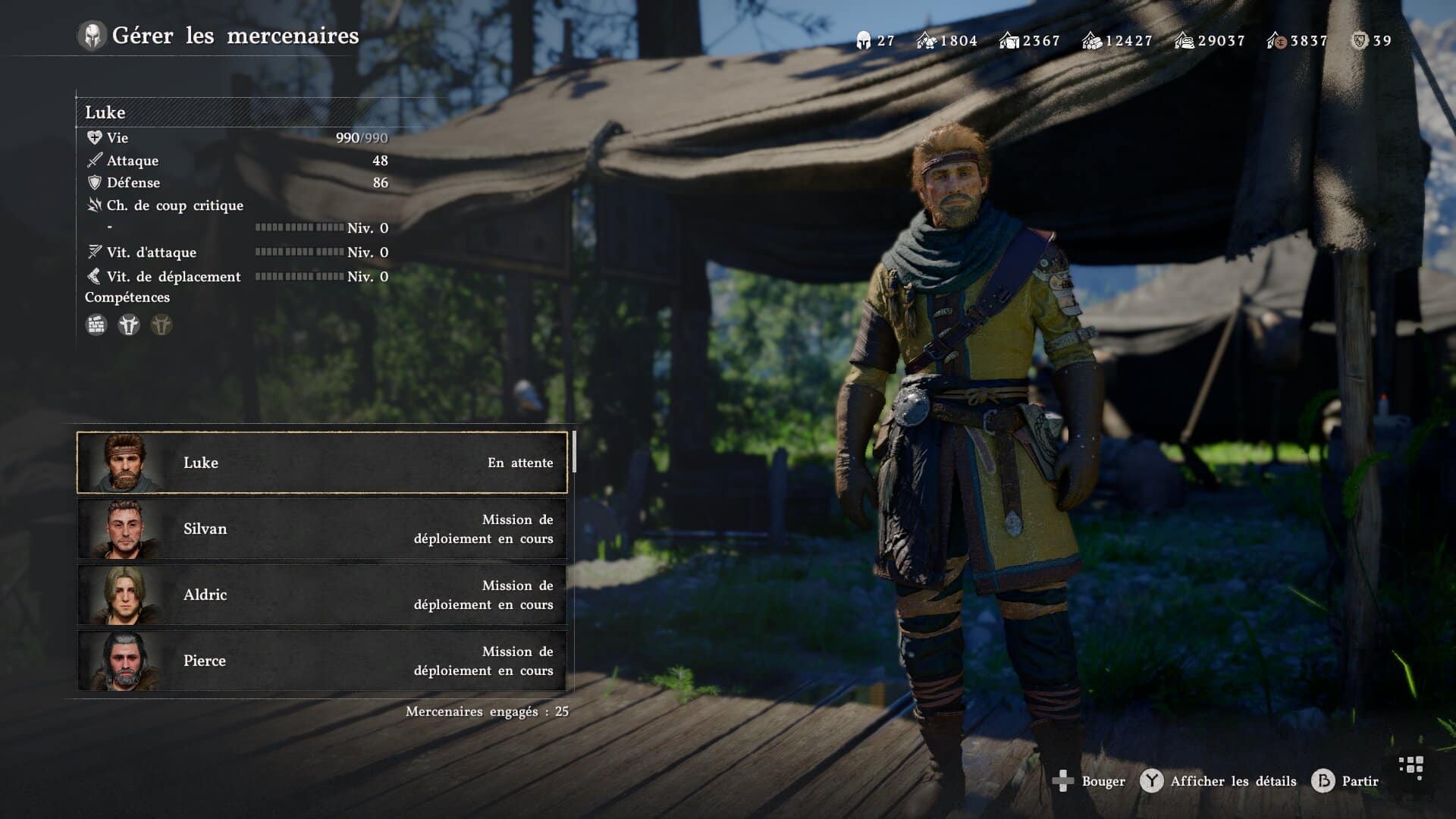 Vous finirez par y retrouver tous les marchands dont vous aurez besoin, tout en envoyant vos mercenaires en mission afin qu’ils collectent pour vous les ressources dont vous avez besoin. Le camp dispose même d’une partie « trading » avec des objets de valeur à échanger avec la guilde des marchands. Rarement utile, mais c’est là (ce qui est presque la devise du jeu à ce stade).