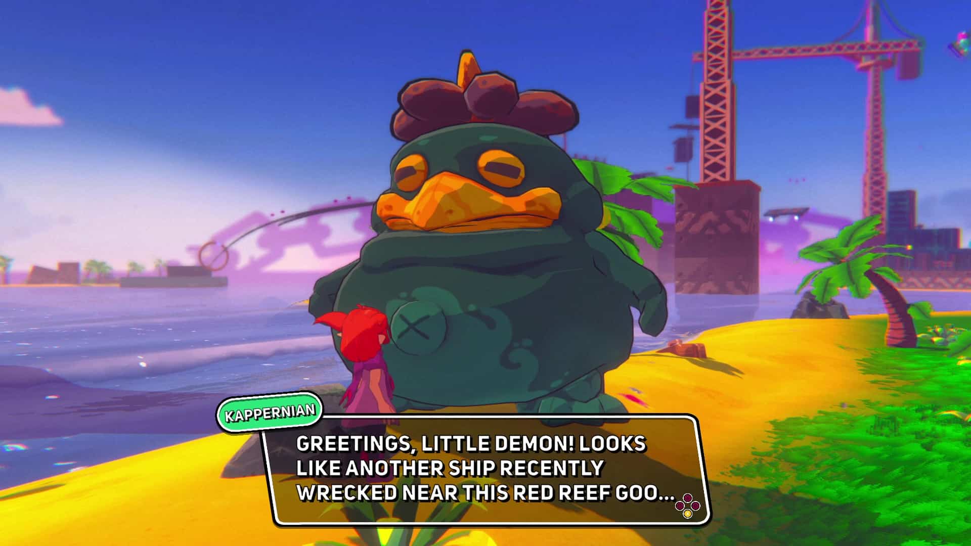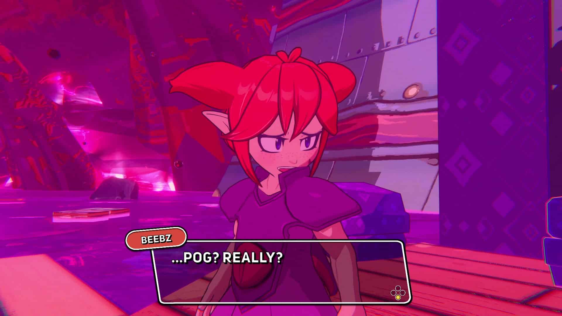 Oui, vous avez bien lu, « guerre civile ». Demon Tides adopte un style coloré et cartoonesque typique de ce genre de jeu de plateforme 3D et pourtant le contexte dépeint est plus sérieux qu’on pourrait le croire. Le scénario a ainsi une place plutôt importante et explore les parts d’ombre du passé de Beebz.
