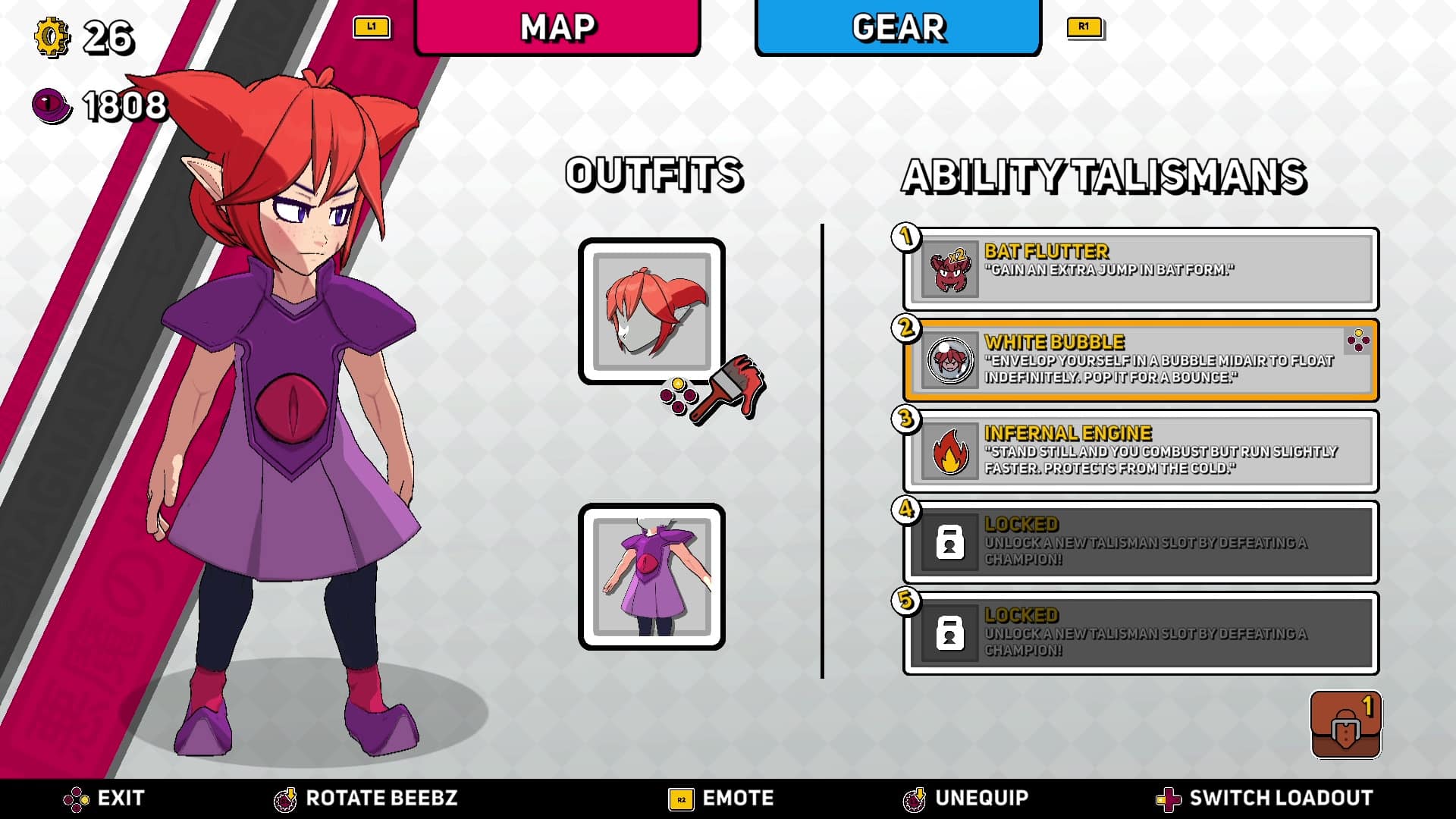 Tout d’abord nous avons les talismans, objets à équiper qui facilitent ou ajoutent des mouvements. Saut supplémentaire ou roller permanent, on n’a jamais récupéré de talismans sans avoir instantanément envie de les essayer et pourtant il y en a beaucoup.