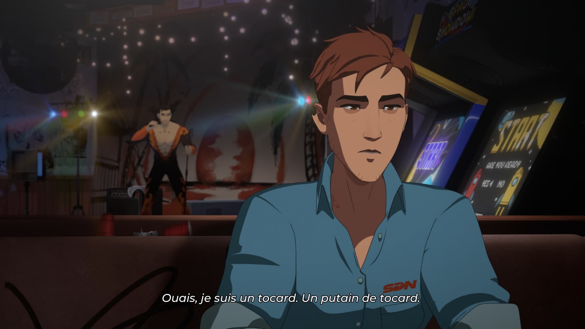 Alors, oui, malgré tout, on regrette qu’il n’y ait pas véritablement de segments exclusifs (on en compte deux ou trois maximum) liés à certaines décisions, mais on a tendance à vite pardonner Dispatch tant il maitrise ce qu’il nous raconte. Ne serait-ce que via sa bande-son et son ambiance très 90’s, sa réalisation très solide, avec un cel-shading qui évoque celui de Hi-Fi Rush et qui repousse encore un peu plus les limites de l’animation interactive. Oui, Dispatch aurait aussi bien fonctionné en n’étant « qu’une série » plutôt qu’un jeu, mais peu de jeux narratifs du genre peuvent s’en vanter.