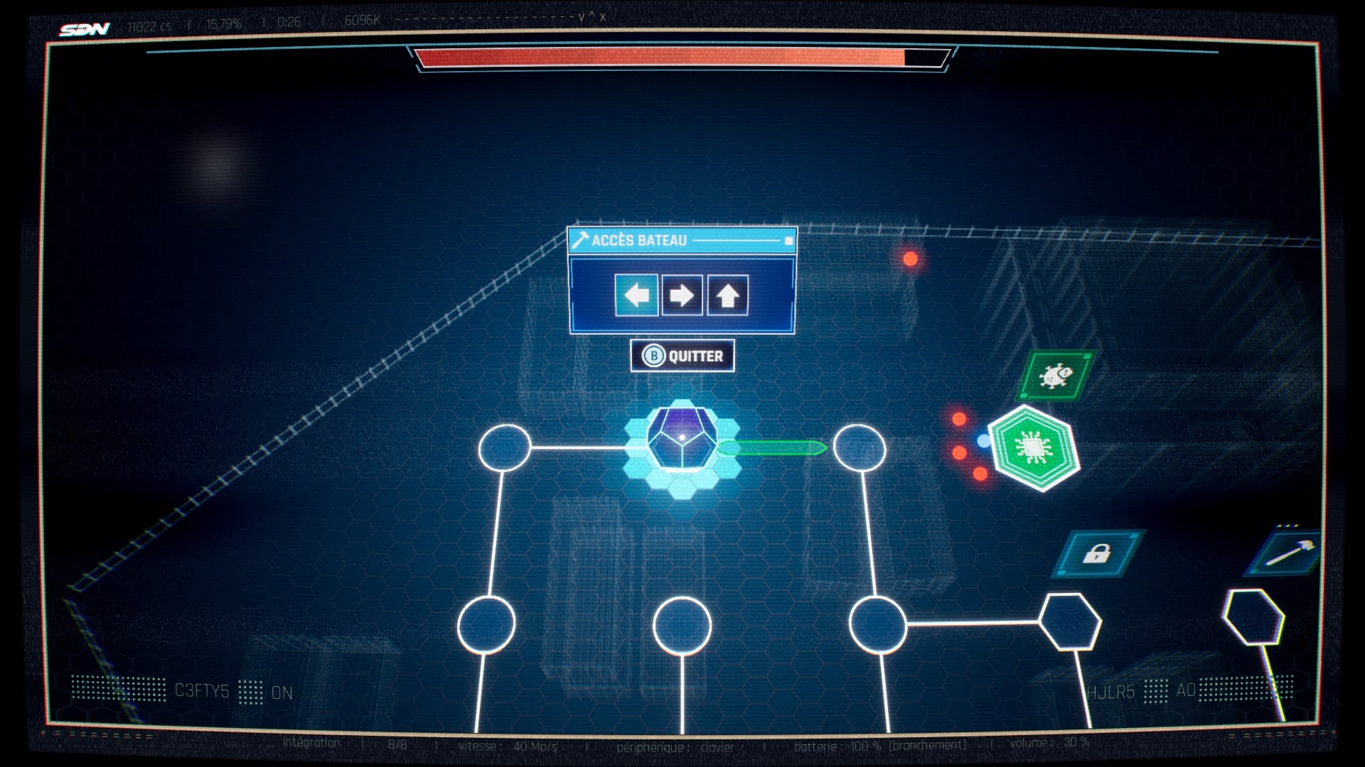 À cette partie gestion vient s’ajouter un mini-jeu de hacking, là encore avec une apparence des plus simplistes. Celui-ci a lieu lorsque Robert peut interagir directement avec certains systèmes électriques sur les lieux d’une mission, avec un puzzle à résoudre qui se limite souvent à entrer des directions dans le bon ordre pour avancer. Vers la fin de l’aventure, cela se complexifie un peu plus avec des virus qui viennent vous pourchasser façon Pac-Man, et des casse-têtes un peu plus élaborés. Ce n’est surement pas la meilleure partie de Dispatch, mais ces puzzles étant relativement courts, pas de quoi être particulièrement gênés par leur présence.