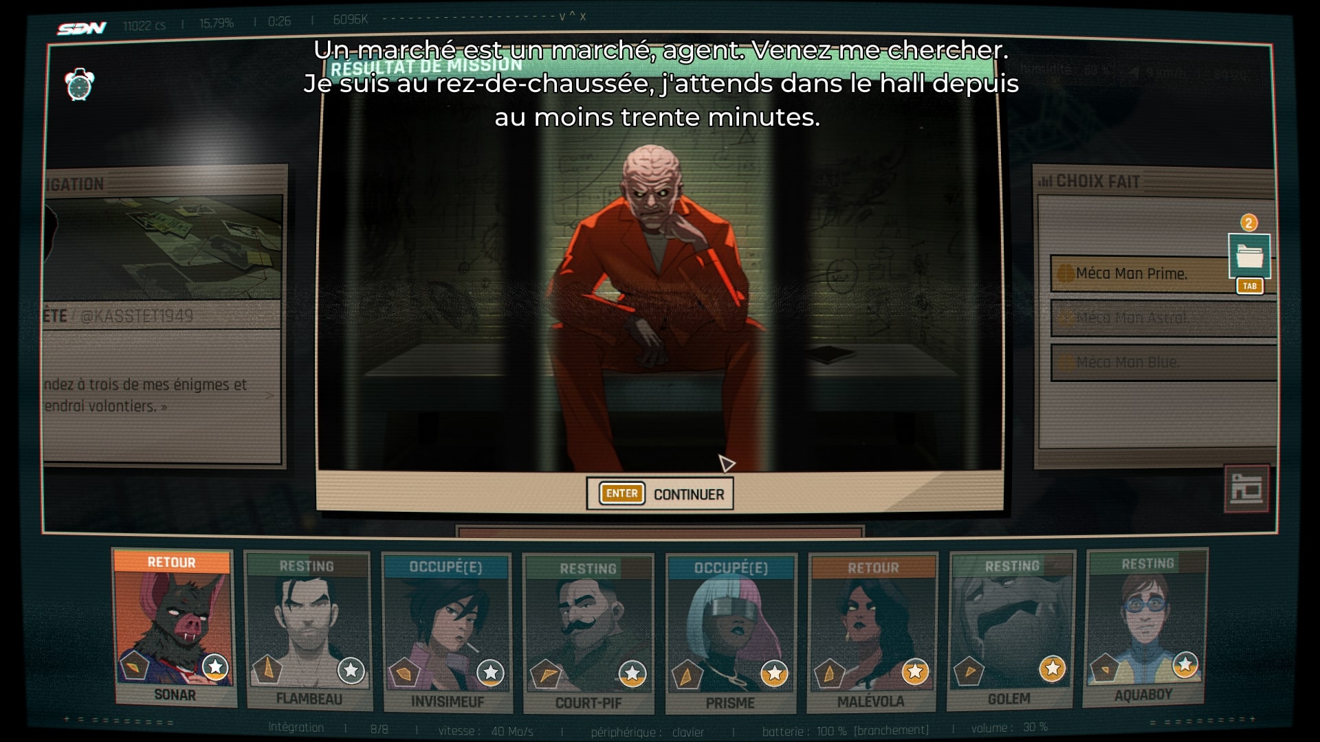 Jeffrey Wright est un acteur occupé, qui ne peut probablement pas enregistrer 18 variations d’un scénario, au même titre que tous les membres de Critical Role, qui ont 14 autres projets sur le bras. Aaron Paul ne doit pas être non plus l’acteur le moins cher du lot, rendant ainsi chaque ligne de dialogue assez précieuse. Même si AdHoc Studio est composé de vétéran du genre, Dispatch reste son premier jeu, avec un budget loin d’être illimité. On lui pardonnera donc de nous laisser l’illusion de nos choix à condition que l’on ne soit pas trop curieux en retentant plusieurs sauvegardes, au risque de passer derrière le rideau et briser la magie.