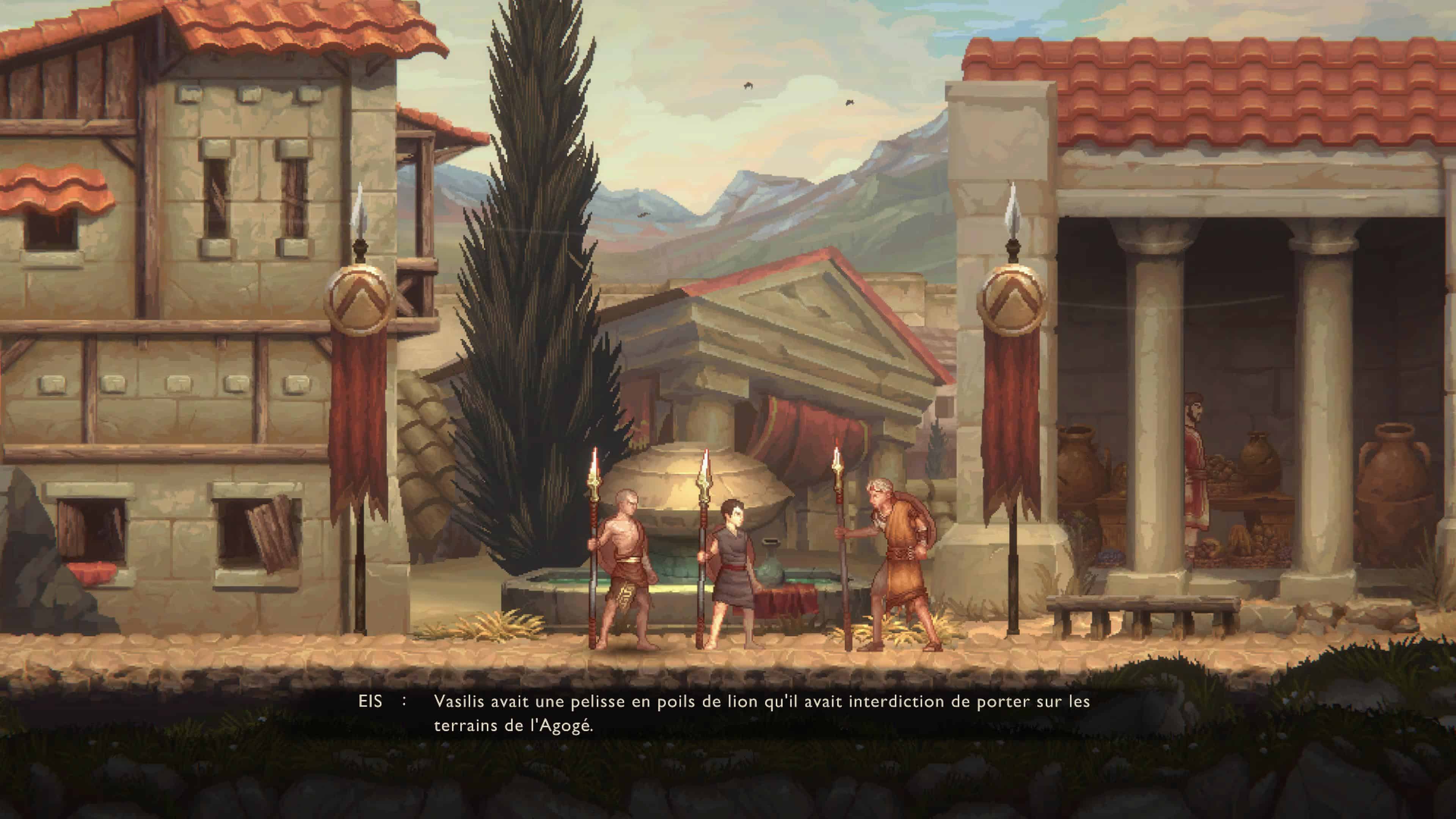 La seule période de Kratos qui n’a jamais réellement été abordée (ou très peu), c’est son enfance. Justement, God of War: Sons of Sparta entend bien approfondir cela, même si ce n’est pas vraiment ce qui nous intéresse du personnage à la base. C’est donc un Kratos avant qu’il ne devienne le fantôme de Sparte, que notre héros raconte à sa fille Calliopée, son enfance spartiate. Nous suivrons ainsi l’aventure de Deimos et Kratos enfant, conté par notre divin chauve. Nos deux héros, après avoir terrassé un cyclope dans une introduction qui donne le ton, vont devoir se mettre à la recherche de Vasilis, un jeune spartiate disparu, alors que ces derniers ont des devoirs à ne pas négliger.