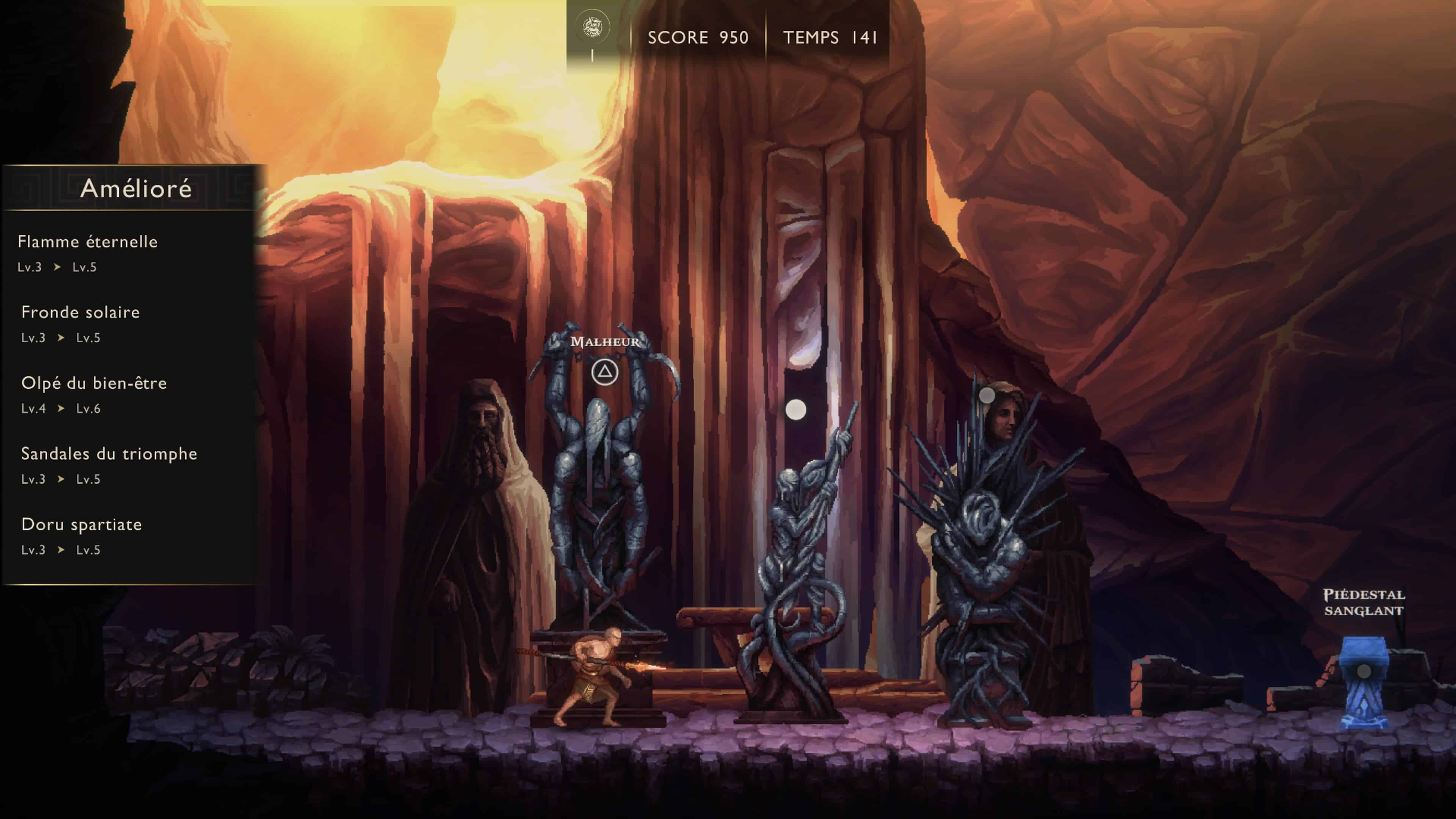 Le dernier morceau à aborder est le côté coopération, hélas uniquement présent sur un autre mode de jeu avec Le Puits des Supplices. Grossièrement, il s’agit d’un mode rogue lite en coopération où à chaque salle vous affrontez des ennemis, et où vous devez à la fin choisir parmi deux récompenses. Celles-ci ne sont autres que l’équipement que vous aviez sur le mode histoire, sauf que vous les récupérez petit à petit. Vous pouvez parfois débarquer dans une salle où il est possible d’améliorer via des orbes un équipement spécifique, ou effectuer un défi annexe moyennant des orbes. Si le défi est réussi, vous regagnez de la santé. Le mode est plaisant au début surtout si vous jouez avec un ami en coop, mais lui aussi vite lassant, et n’arrivant pas réellement à se renouveler. Encore un mode remplissage qui ne passionnera pas les foules. Il reste désormais à voir si le titre pourra enfin se jouer en coopération sur son mode histoire via peut être une mise à jour ? Nous verrons bien mais dans l’absolu, ce mode Le Puits des Supplices ne vous retiendra guère longtemps sur le soft une fois terminé.