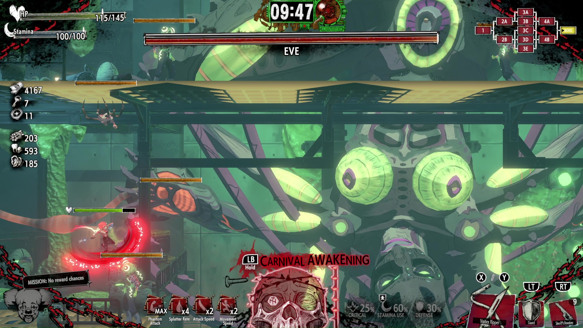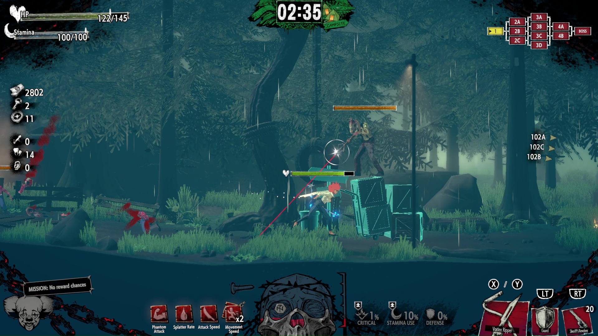 C’est assez laborieux d’en arriver là car le gameplay reste très rigide pour un jeu de 2025 et le peu de combos disponibles au commencement rend tout ça répétitif. Et on ne peut pas compter sur les ennemis pour apporter ce besoin de variété : ils sont tous très similaires et les patterns des boss ne sont pas particulièrement bien pensés. Un mal pour un bien, on n’aura pas trop l’occasion de voir ces patterns. Les boss vont soit nous exploser en deux secondes, soit subir l’inverse lorsque l’on les atteint avec plusieurs fantômes et notre attaque ultime, qui va presque à coup sûr les étourdir.
