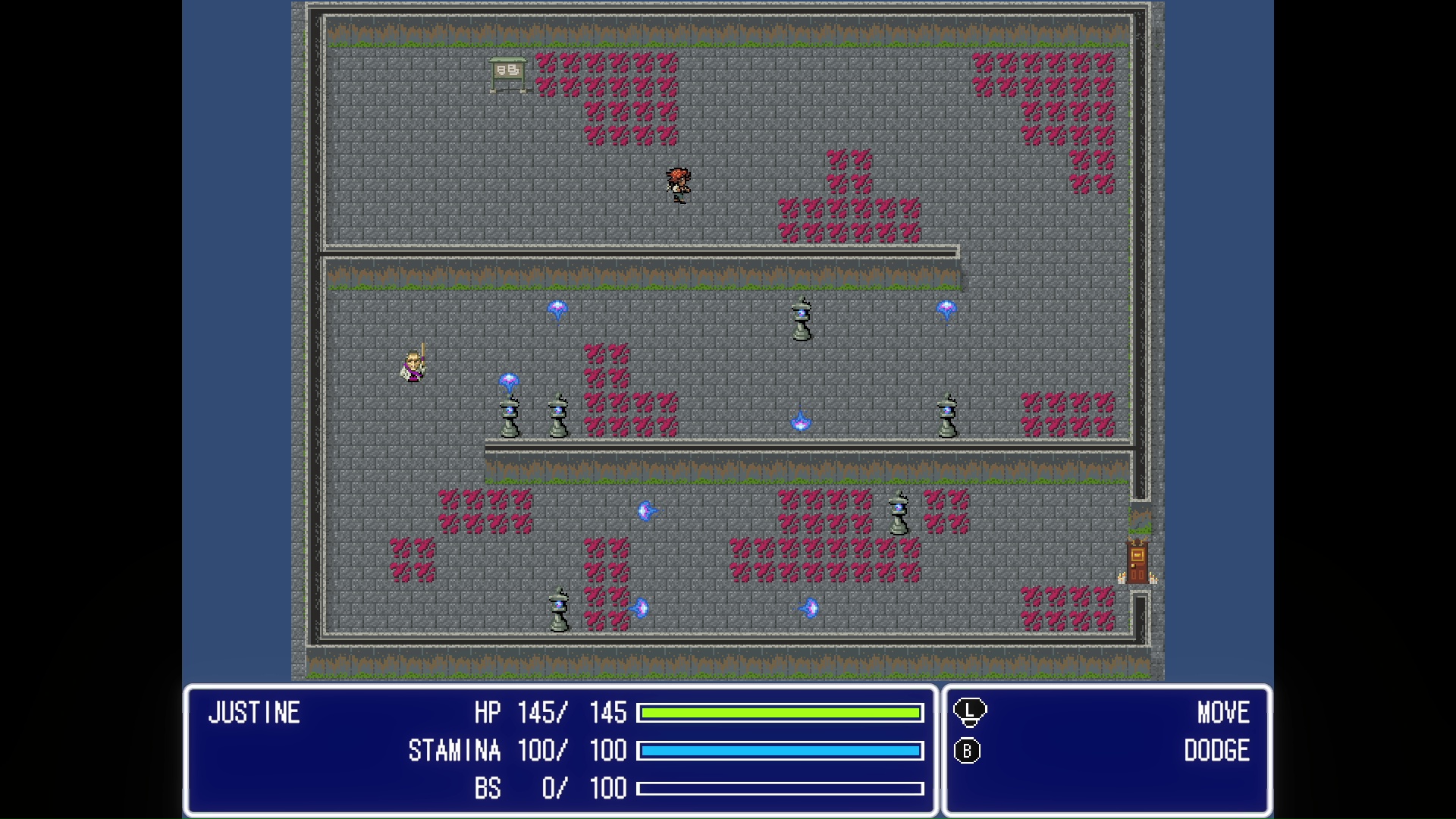 IIl y a plein d’idées comme ça, un peu absurdes. Certaines sont plus impactantes. Par exemple, de manière aléatoire, Justine peut commencer un niveau en étant minuscule ou alors géante. Ce n’est jamais expliqué, ça n’a aucun sens, mais… c’est amusant donc on accepte l’idée.