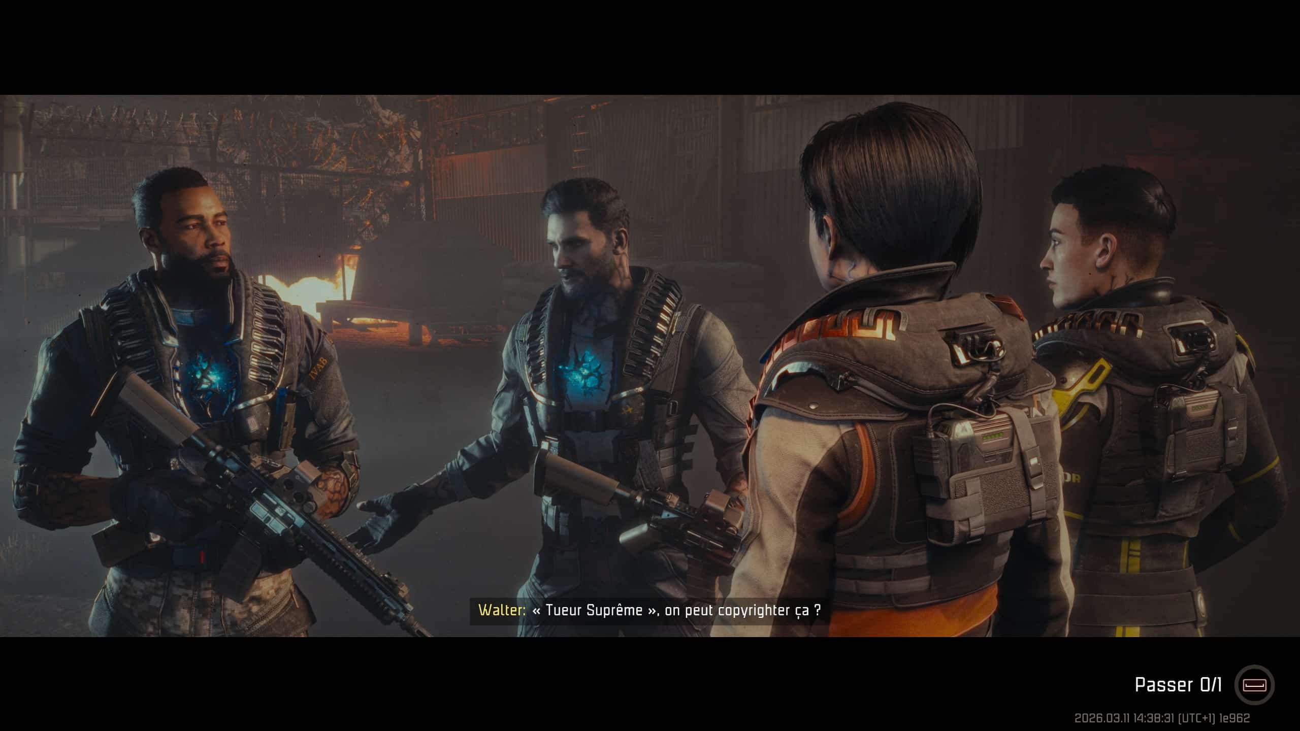 Pour ne rien arranger, les dialogues sont clichés à souhait, et surtout très peu intéressants. En somme, le vide narratif se voit bien vite, et on ne pourra qu’être assez déçu par l’influence qu’aurait pu apporter John Carpenter dans la conception. En effet, l’influence est à notre sens plutôt rincée, montrant parfois les limites du monsieur, qui peut faire d’excellentes choses comme des choses très moyennes. En tout cas c’est une certitude, John Carpenter’s Toxic Commando ne marquera pas par sa narration, aux abonnés absentes. Et quelque part, quand le bonhomme affirme être un mauvais scénariste, cela n’a jamais été aussi vrai. Pour le coup, on préfère plutôt le voir dans la peau du réalisateur ou du compositeur.
