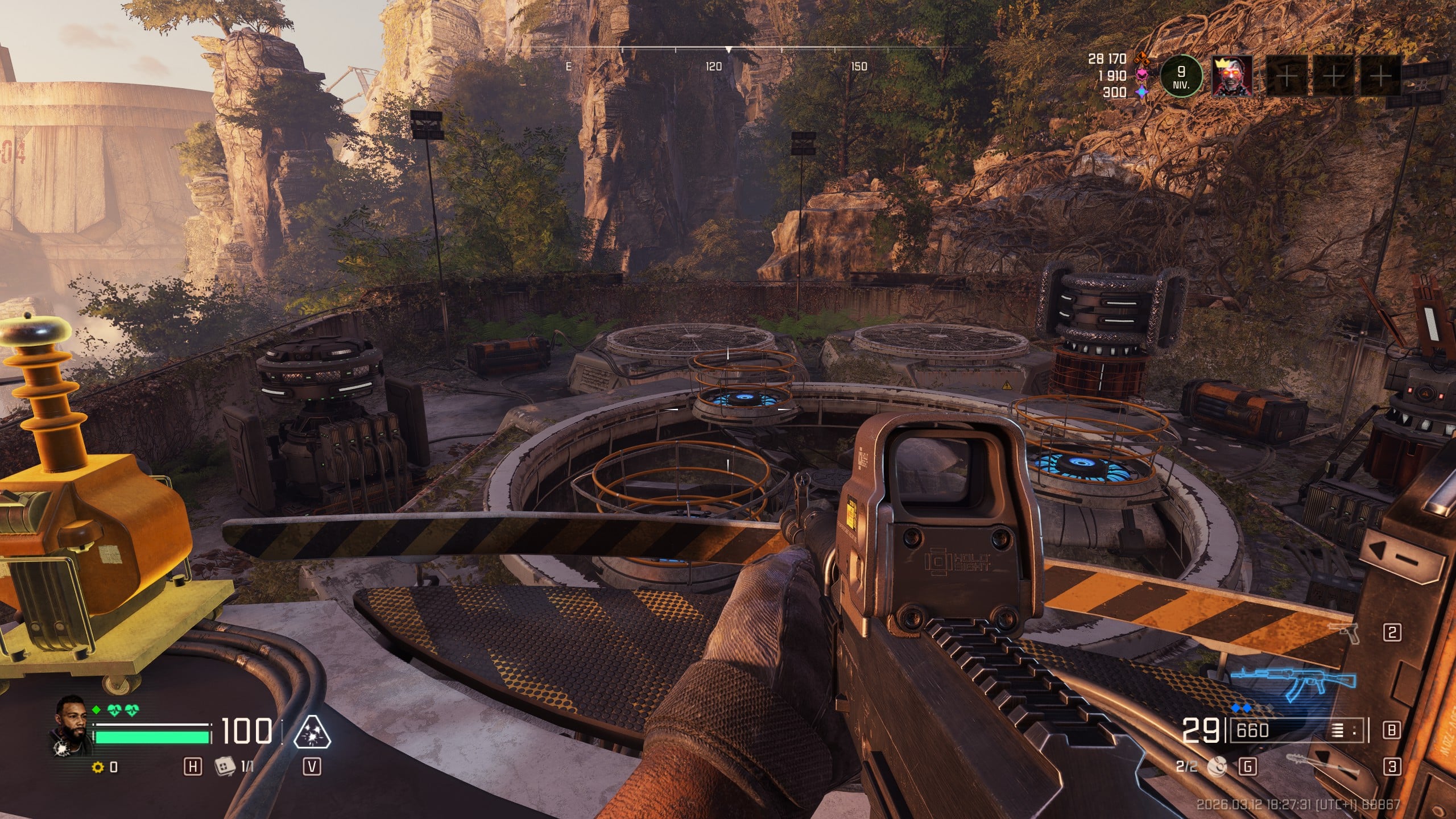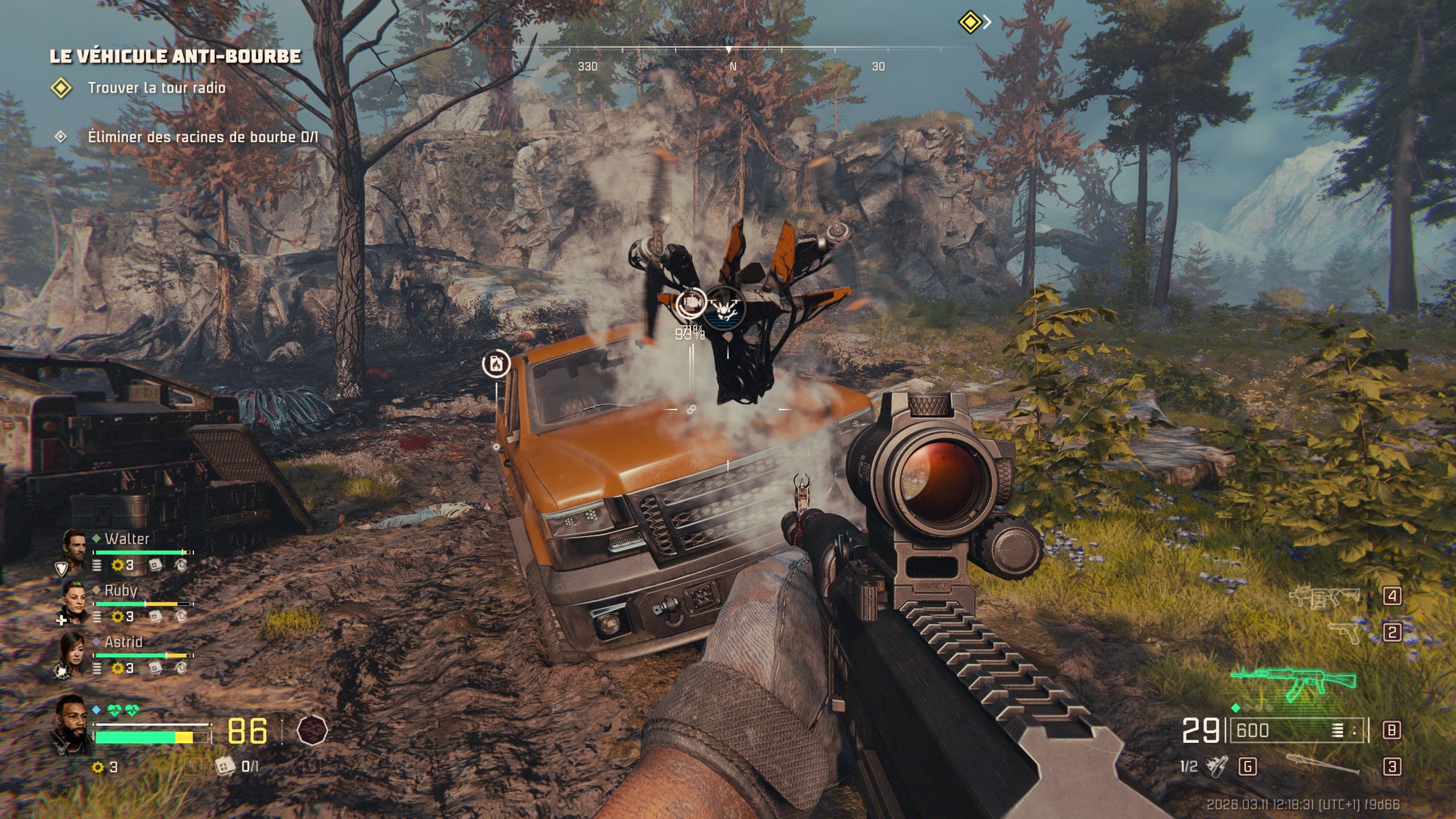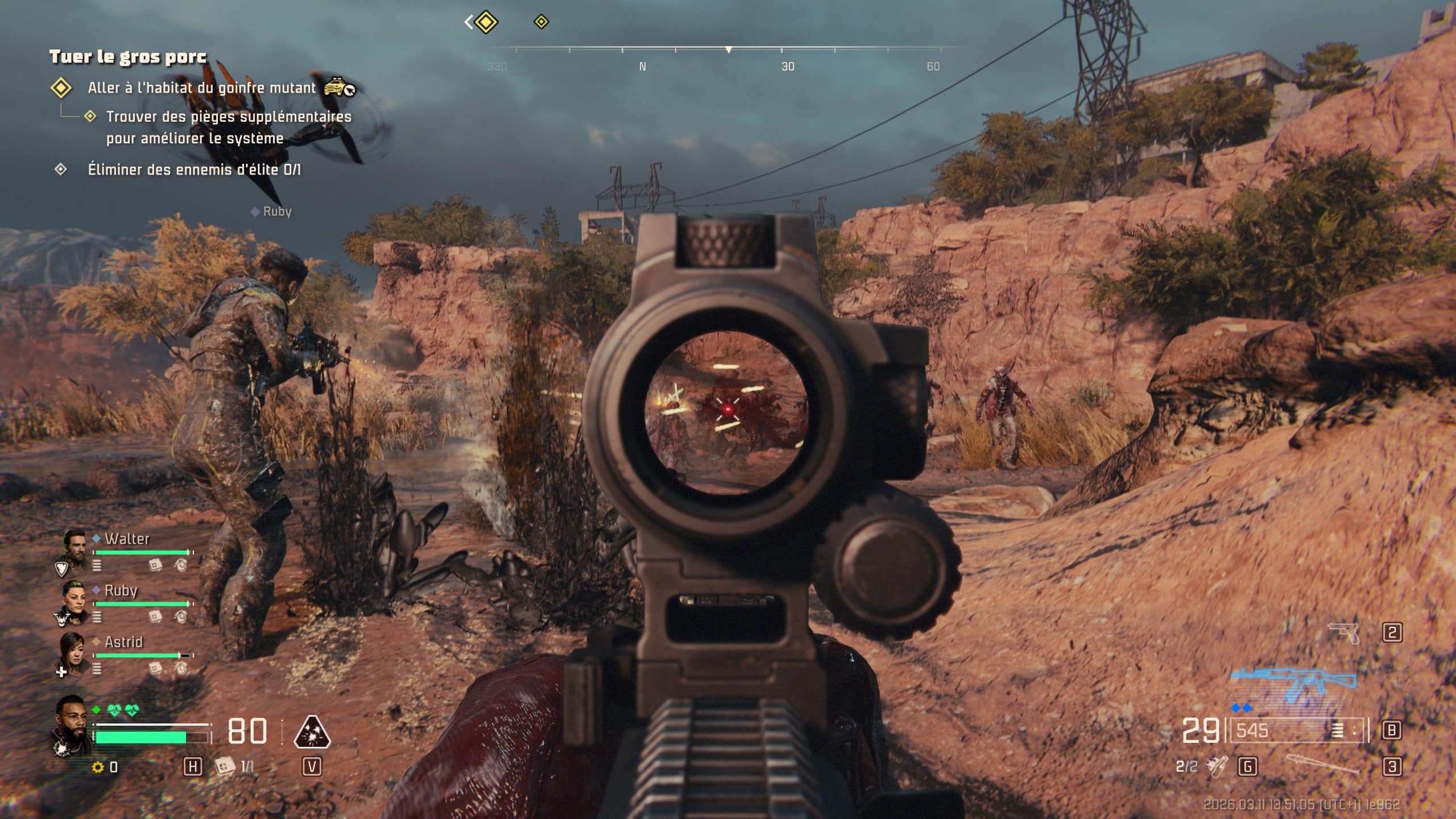 La gestion du véhicule est mine de rien grisante, avec également certains tout-terrains disposant d’un treuil afin de progresser dans les zones boueuses ou contaminées. Ce n’est pas tout, car ce dernier sert aussi à détruire des portails ou portes afin d’y récupérer des récompenses comme des armes plus puissantes, avec un système de rareté par couleurs, ou bien des armes spéciales utiles (railgun, lance-grenades, mitrailleuse lourde, etc.). Indéniablement, l’exploration des points d’intérêts, des éléments à dézinguer au treuil ou encore les coffres contenant projectiles, santé ou recharges de munitions est gratifiante. En effet, cet ensemble permet de mieux vous préparer aux objectifs principaux, voire pour l’objectif final du niveau en cours. Tout cela est bien sympa au début dans l’exécution, mais il faut savoir que l’ennui se profilera trop vite à l’horizon (et on détaillera cela plus loin dans le test).
