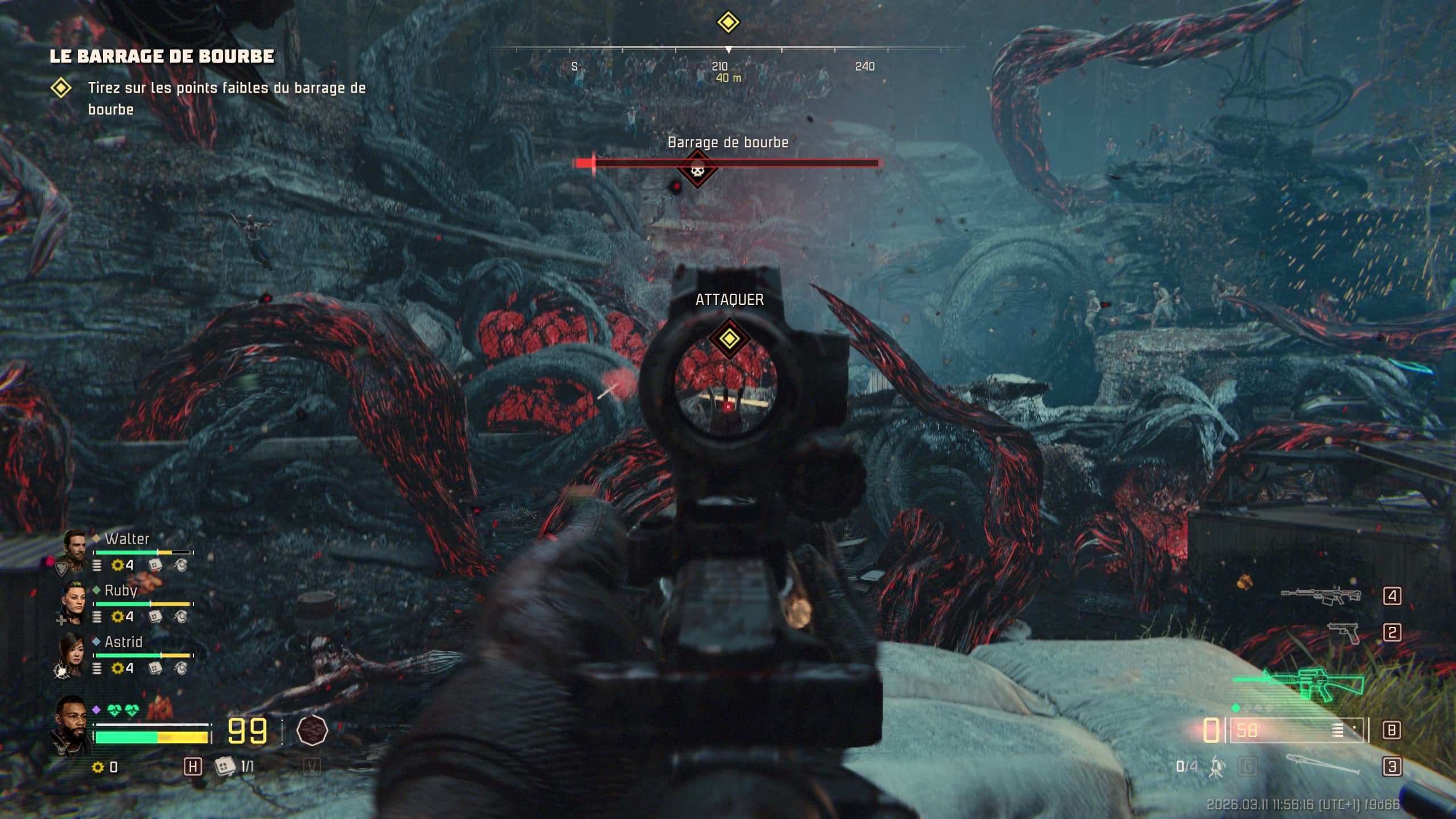 Dire que John Carpenter’s Toxic Commando est un Left 4 Dead like modernisé est plus que justifié, vu son gameplay. Sans trop de surprises, sachez qu’il reprend des mécaniques de la franchise de Valve (voire Back 4 Blood pour les plus jeunes), avec déjà son côté shooter coopératif à base d’infectés à poutrer. Sauf qu’ici, la progression ne se fait pas réellement de manière linéaire, mais beaucoup plus par des cartes semi-ouvertes. En effet à chaque début de niveau, vous avez bien la possibilité de réaliser l’objectif primaire pour arriver ensuite à la zone finale ou, à l’inverse, tout simplement explorer les environs.