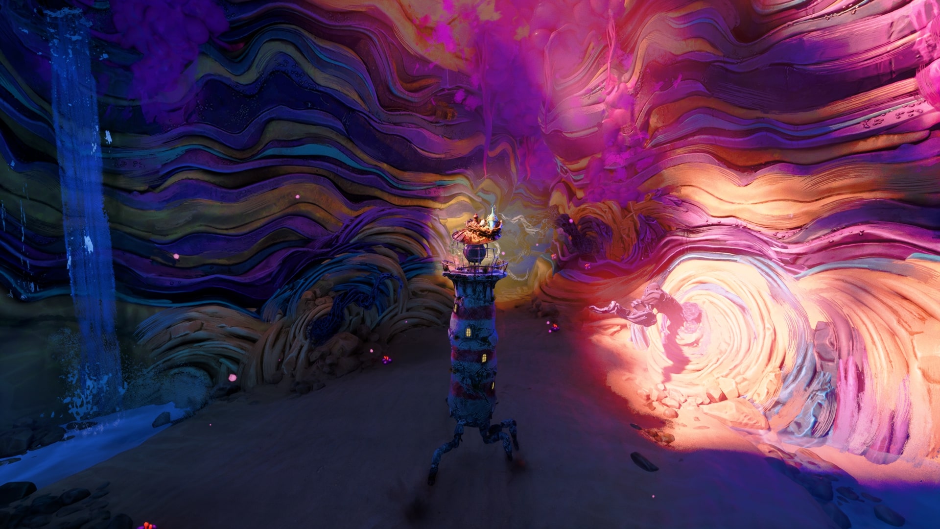 Cela représente d’ailleurs l’une des autres forces de Keeper, sa capacité à vous immerger dans son monde étrange et pourtant si proche du nôtre. Un monde où les humains ne semblent plus être, mais où la nature poursuit son œuvre immuable. On ne comprend pas toujours toutes les références, toutes les allusions, y compris psychédéliques (surtout en fin de périple), mais on parvient à accompagner ce phare dans son aventure pour « sauver le monde ». Bien qu’au début, on peine à retrouver la patte de Double Fine Productions, les créateurs de Psychonauts (puisqu’ils sont derrière ce nouveau jeu moins ambitieux), le côté décalé — voire psychédélique — de certaines séquences nous fait nous sentir comme à la maison.