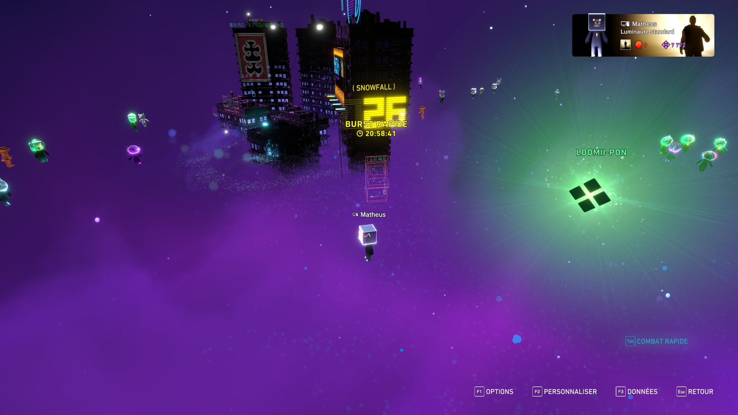 Enfin, nous avons le gros morceau, avec le mode multijoueur. Déjà plus ou moins doucement mis en place depuis Tetris Effect Connected, Lumines Arise accentue la partie sociale. Alors que le mode solo périple vous donne la possibilité de voir les avatars des autres joueurs au cours de votre partie, vous pouvez sur cette partie les voir également. De plus, il sera possible de faire des parties classées où le but est de battre les records d’autres joueurs, ainsi que de faire une partie de burst rapide, consistant à faire le plus de burst possible en une seule fois. Enfin, vous aurez du duel de burst assez rigolo.