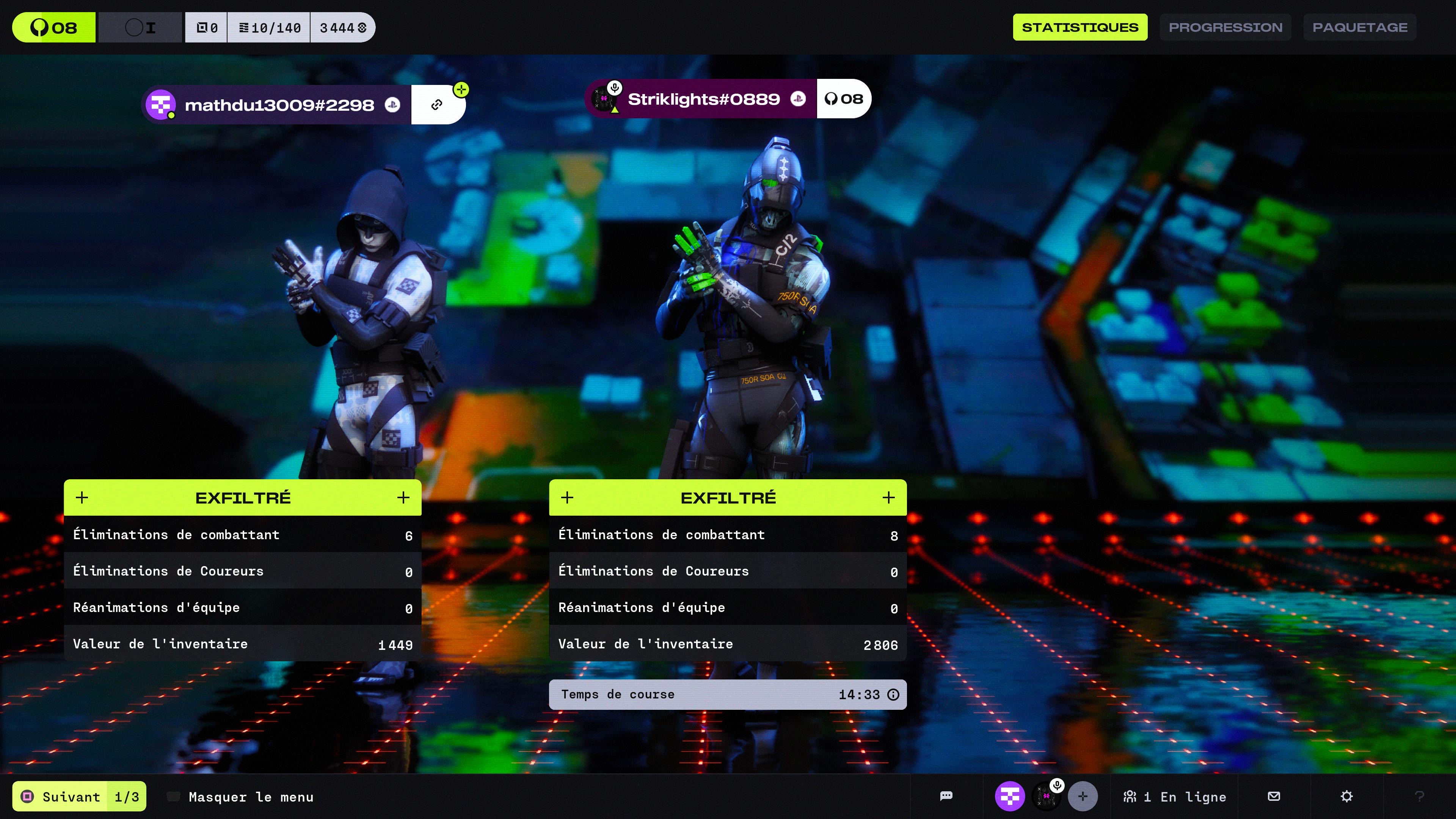 Notez qu’un chat vocal est présent, permettant ainsi de communiquer avec le peu de joueurs et joueuses humains. Cependant, les coureurs ne prennent pas le temps de s’exprimer et préfèrent parler avec les armes. En outre, la communication servira avant tout pour discuter avec vos alliés, plus que pour être sujet à des interactions sociales aléatoires. Ainsi, on se retrouve bien loin d’un Arc Raiders sur ce point, et on se rapproche plus de nos petits Hunt : Showdown et Escape From Tarkov.