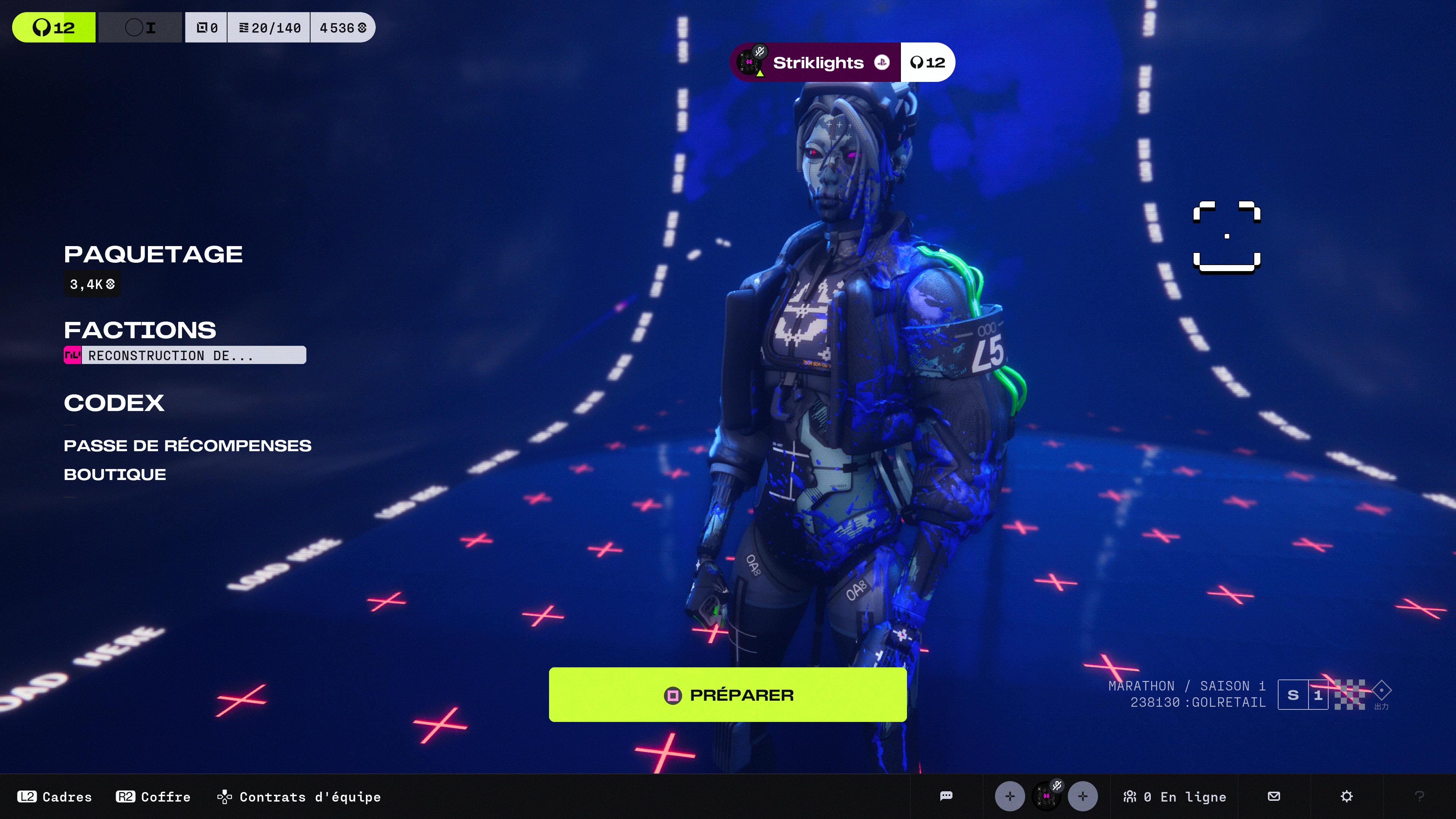 Si votre coffre est vide, ou si vous ne voulez pas risquer votre merveilleux butin, Marathon propose des kits sponsorisés, gratuits ou payants en crédits. Ces derniers permettent de partir avec un équipement équipé d’office, non modifiable au pré-lancement d’une partie. Bien évidemment, les kits payants vous octroient un équipement bien supérieur au kit gratuit. Seul petit défaut : l’ajout automatique d’un kit à notre mort, obligeant ainsi le joueur ou la joueuse à le retirer, ou non, depuis l’inventaire.